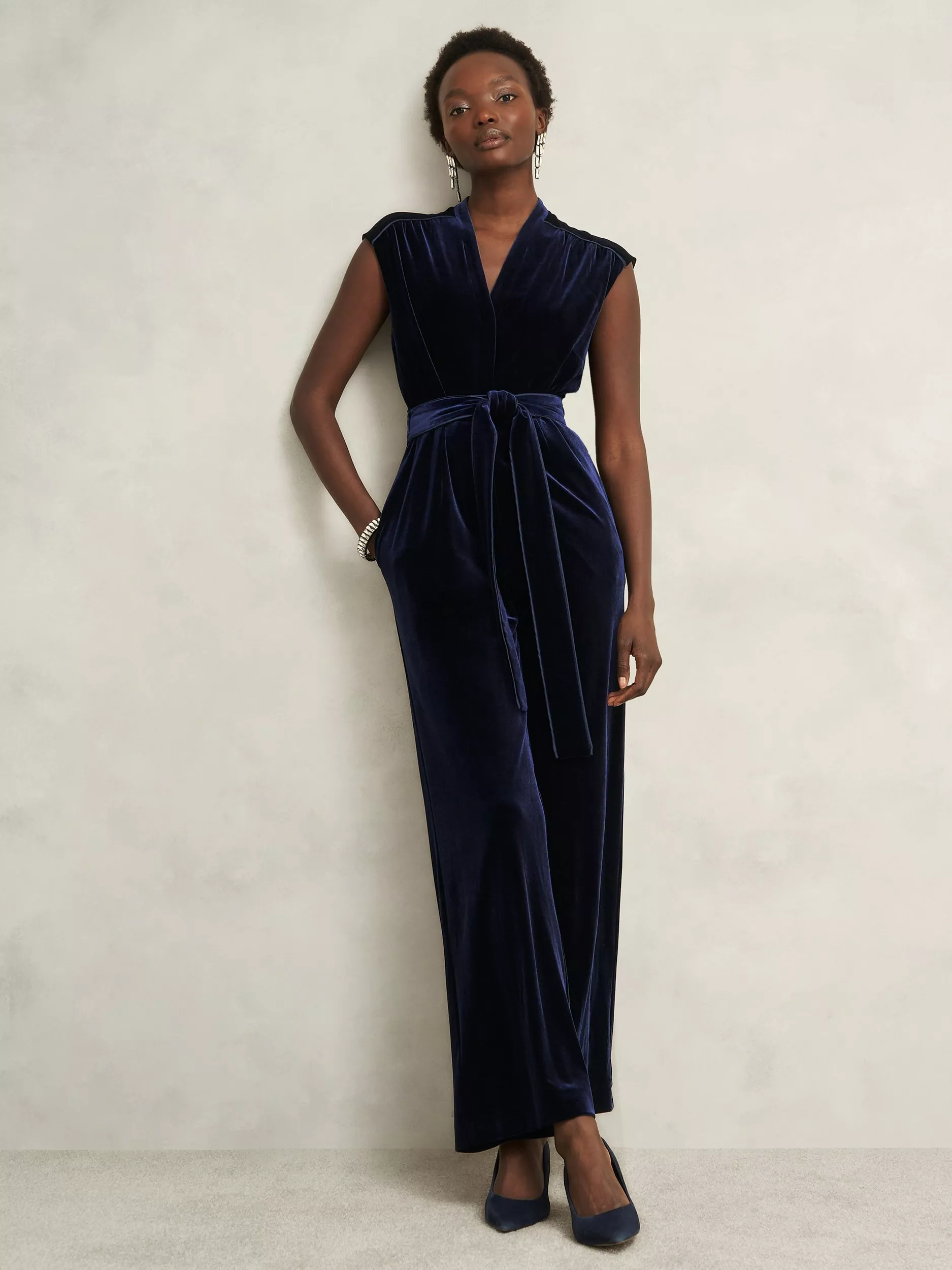Framed with a flattering V-neck, this sleeveless jumpsuit by Hobbs is cut from plush velvet. Free from print for truly timeless appeal, throw on some heels for a fun look.