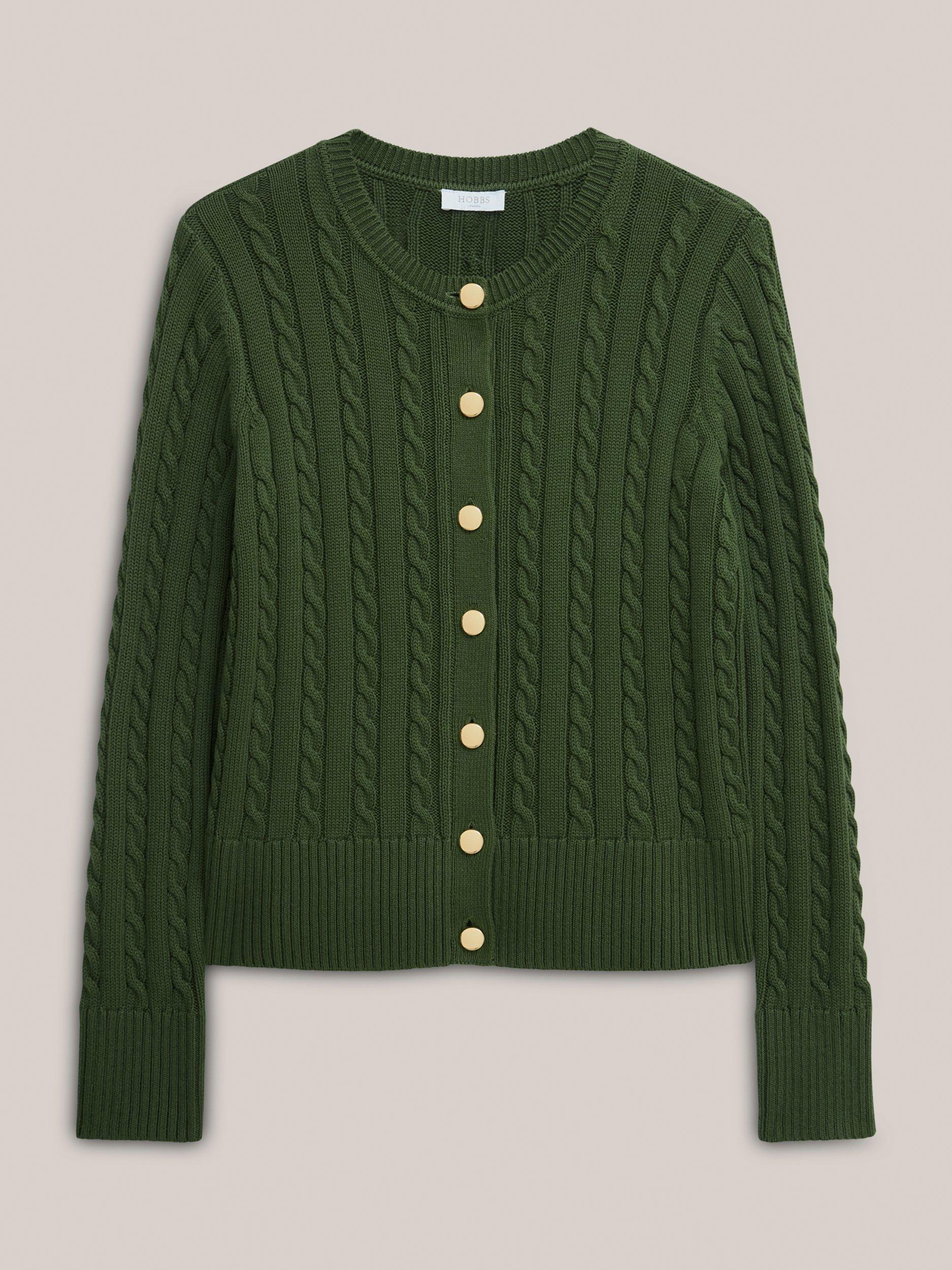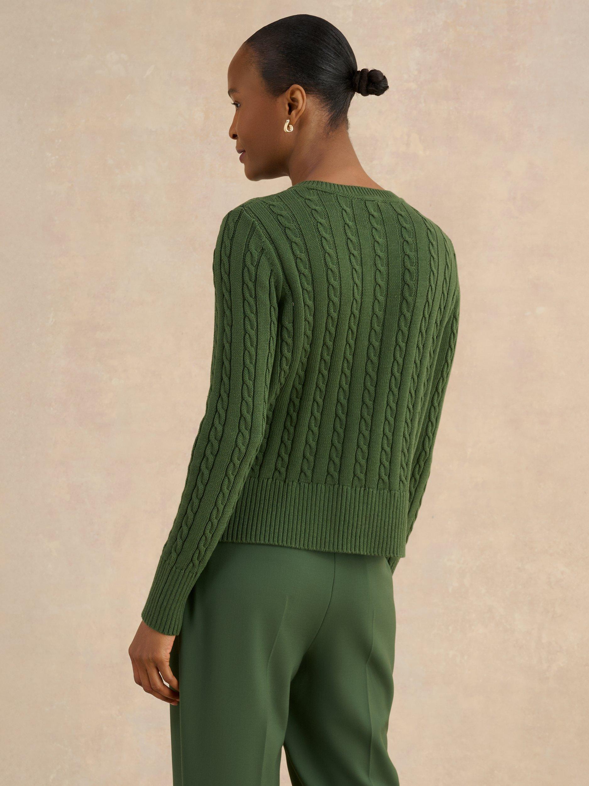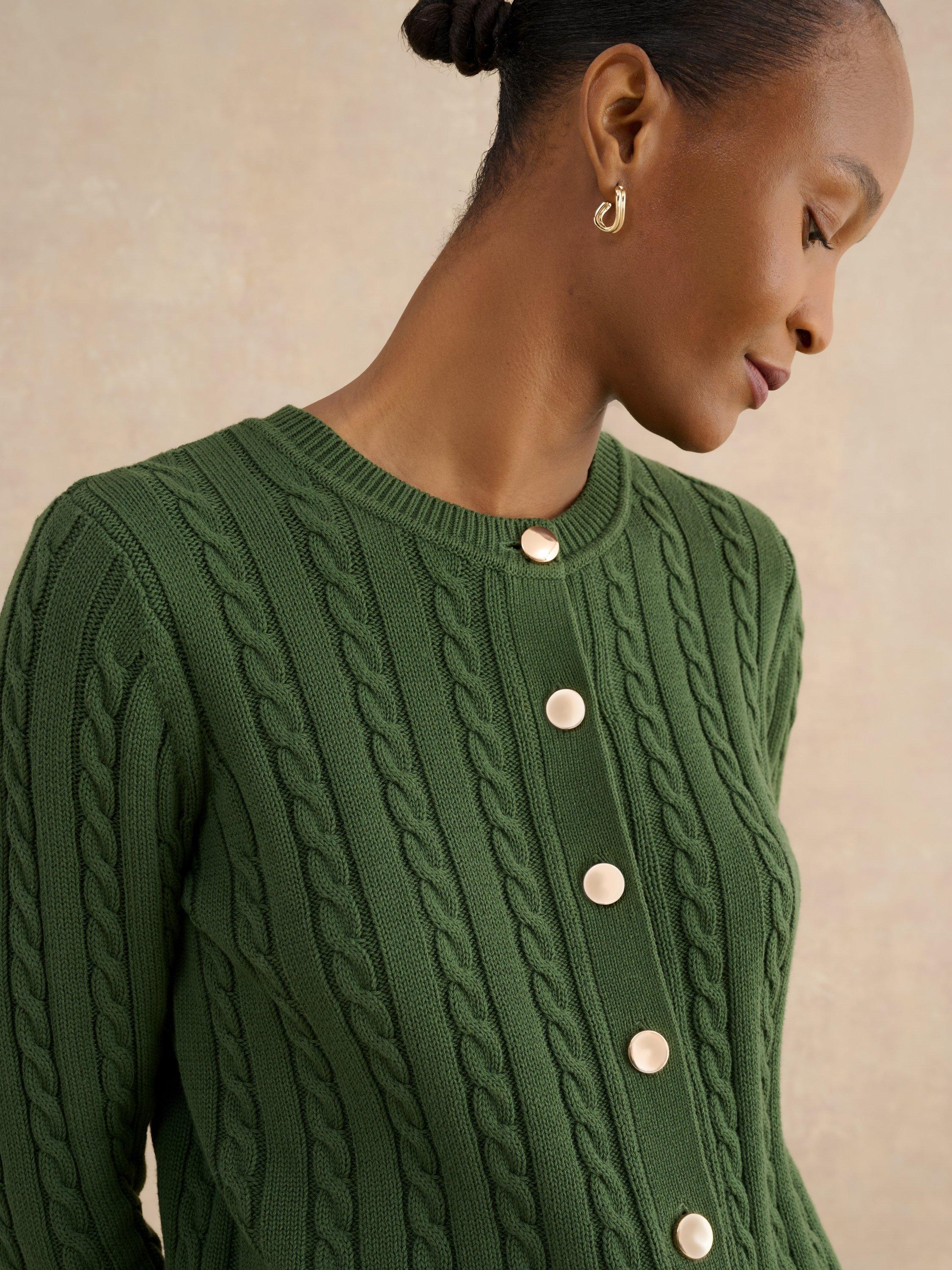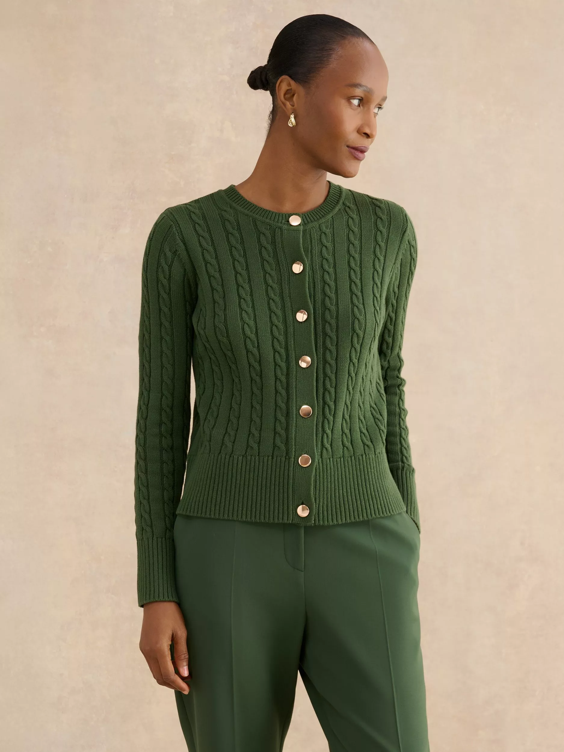 Cast in a transeasonal shade, the Penrose cardigan imbues a textural finish to any look with cable knit and ribbed trims.