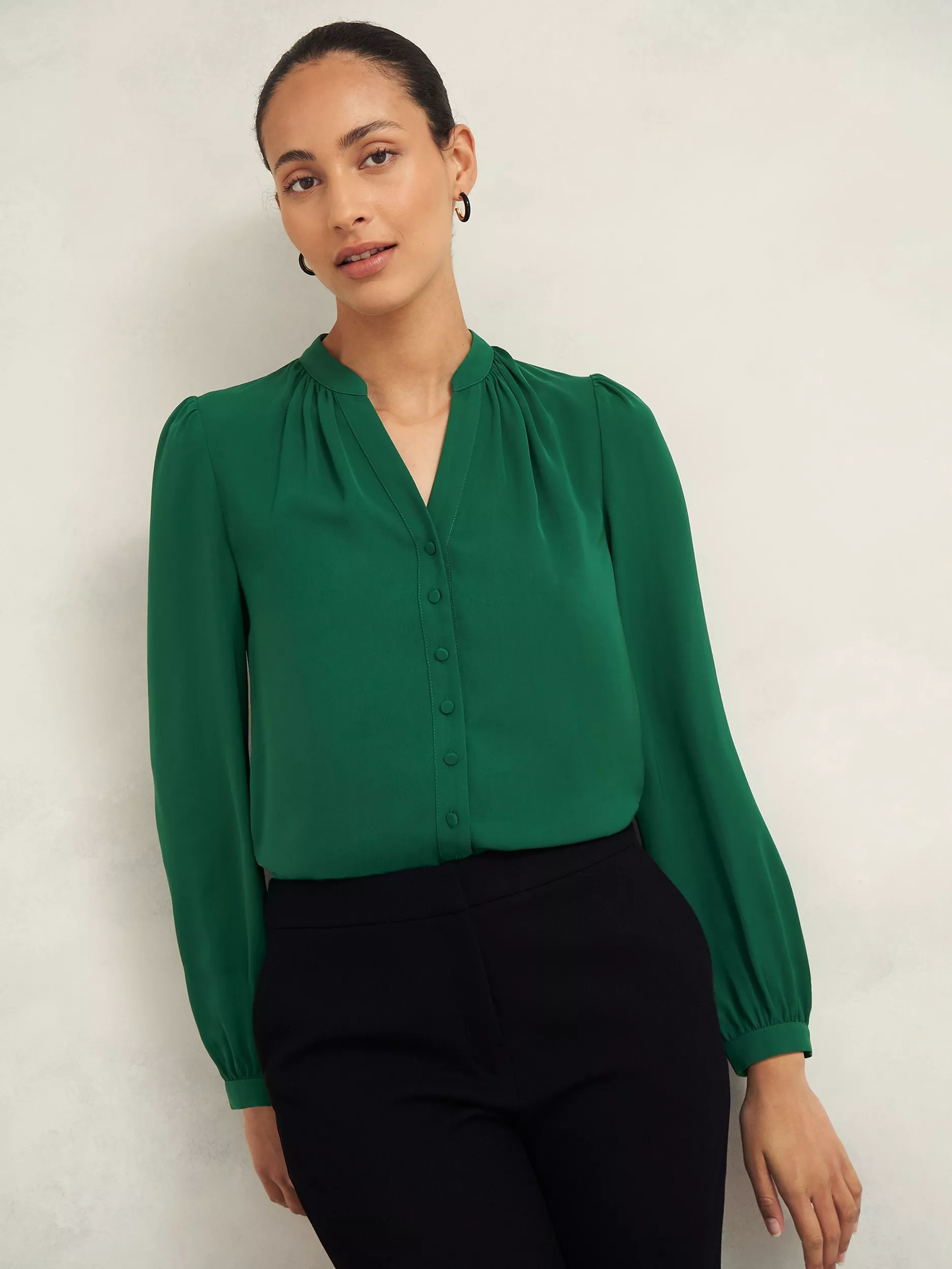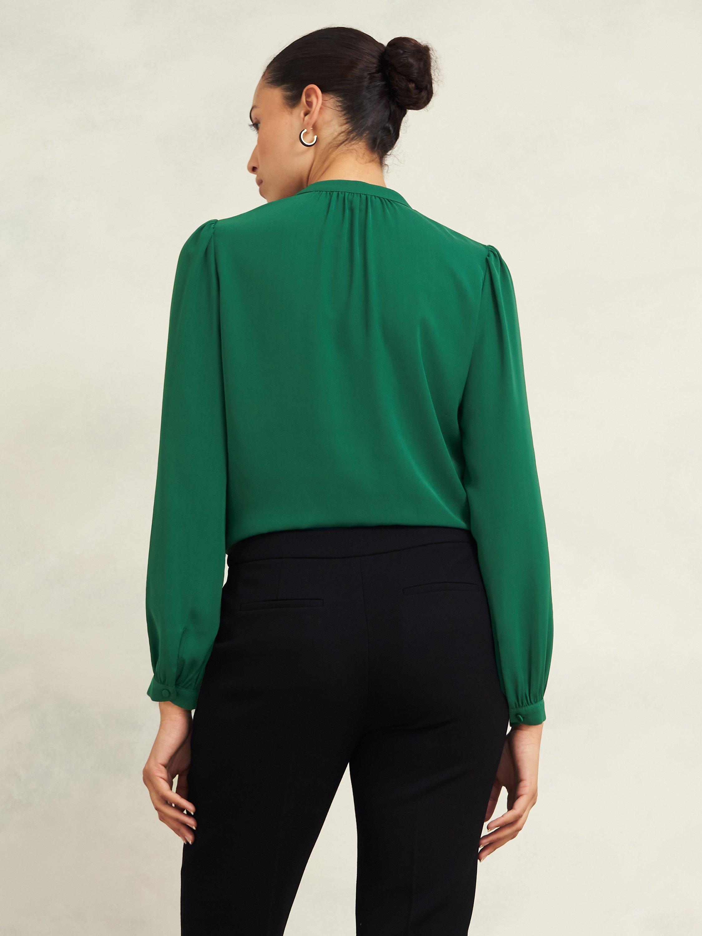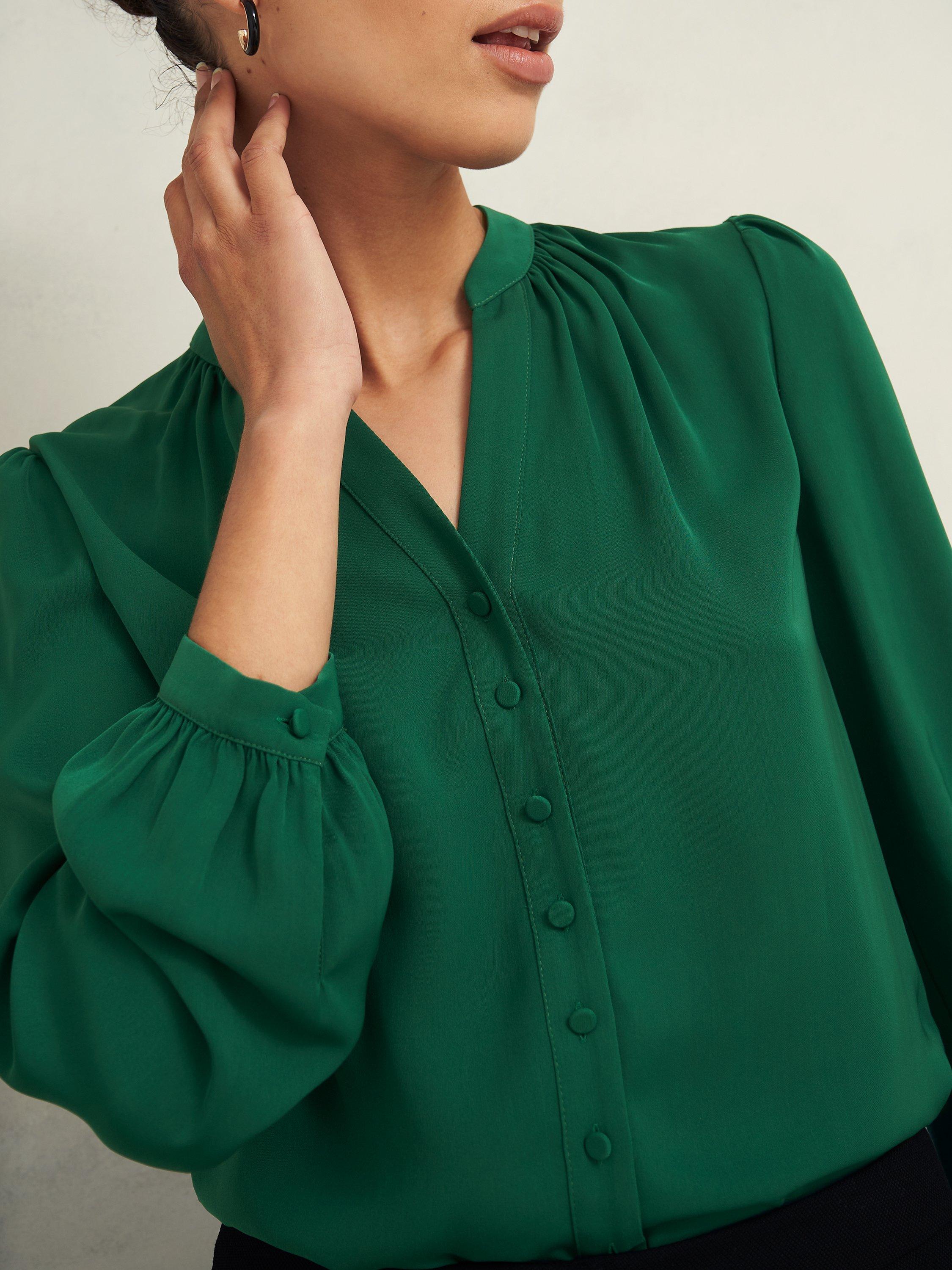 Timeless. Understated. Effortlessly wearable. Suitable from workday to weekend, look to the mandarin collar, subtle puff shoulders, and defined placket for new levels of chic.