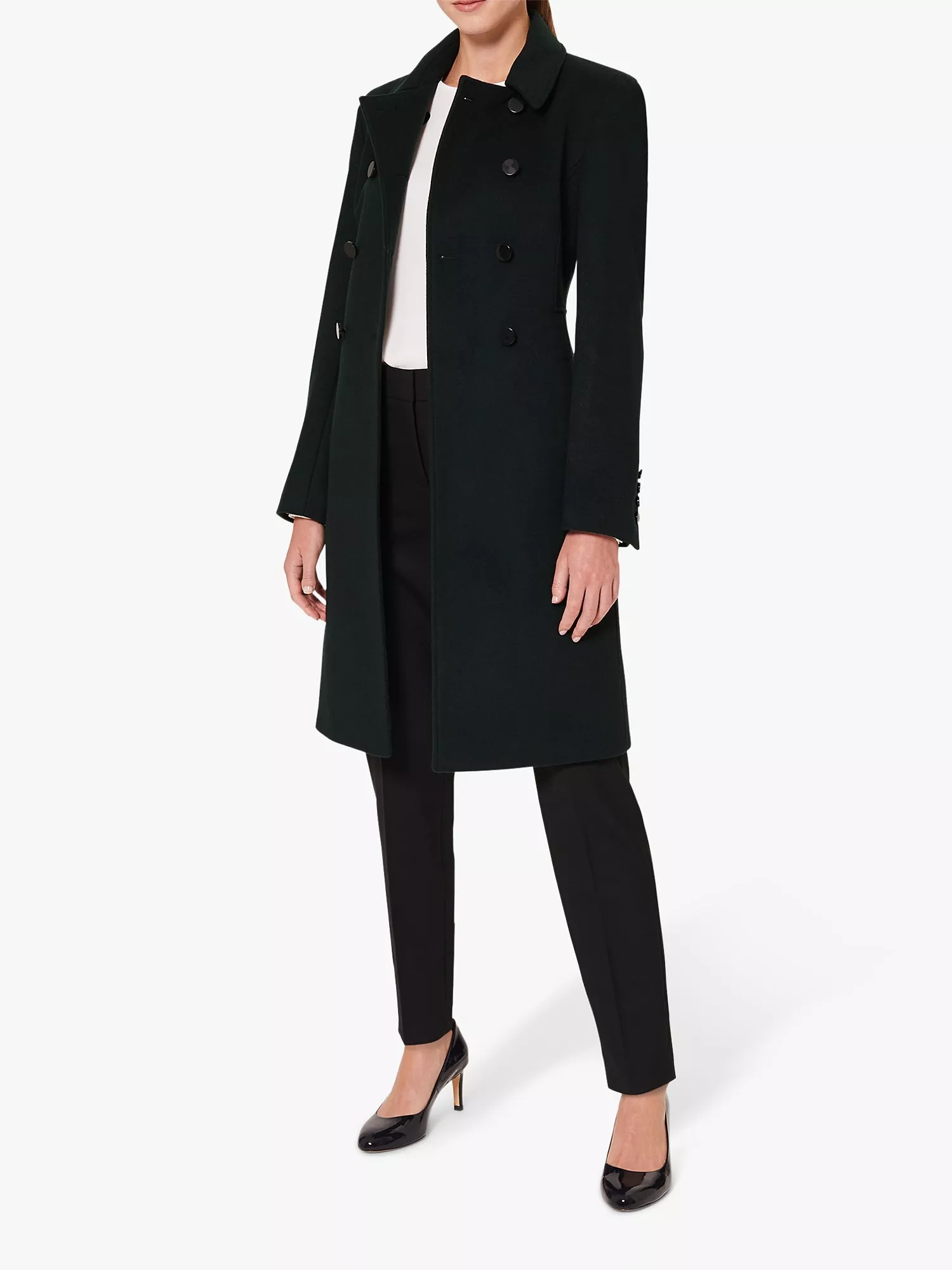 Crafted from premium Italian fabric with a touch of cashmere and cut to a double-breasted silhouette with an A-line skirt, the metal rim buttons add the finishing touch. Perfectly proportioned for those who are 5'3" and under, the Hobbs petite garments are skilfully designed to fit and flatter a smaller frame.