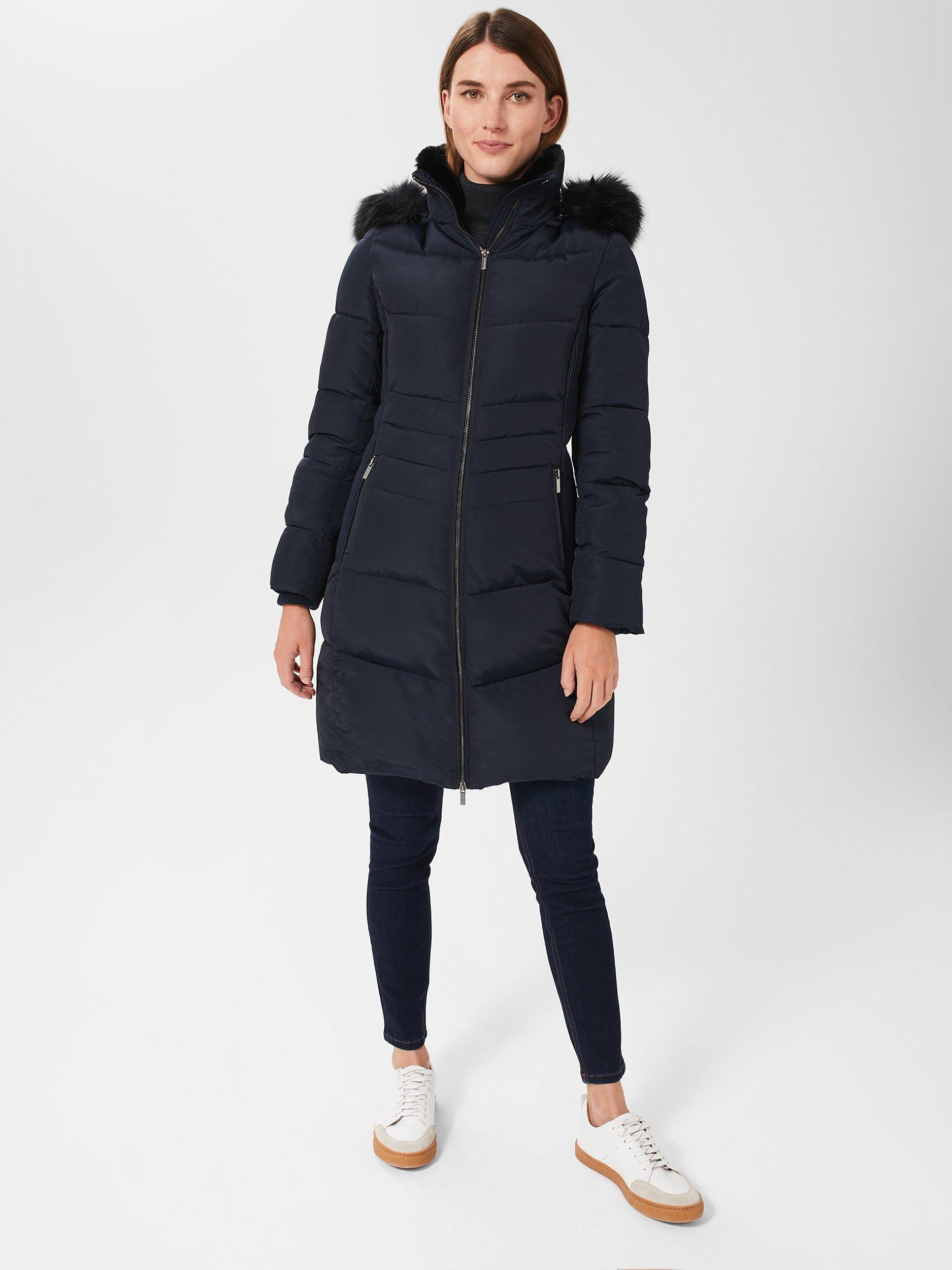 A wardrobe staple for winter weather, this puffer coat from Hobbs streamlines the profile with its longline cut.