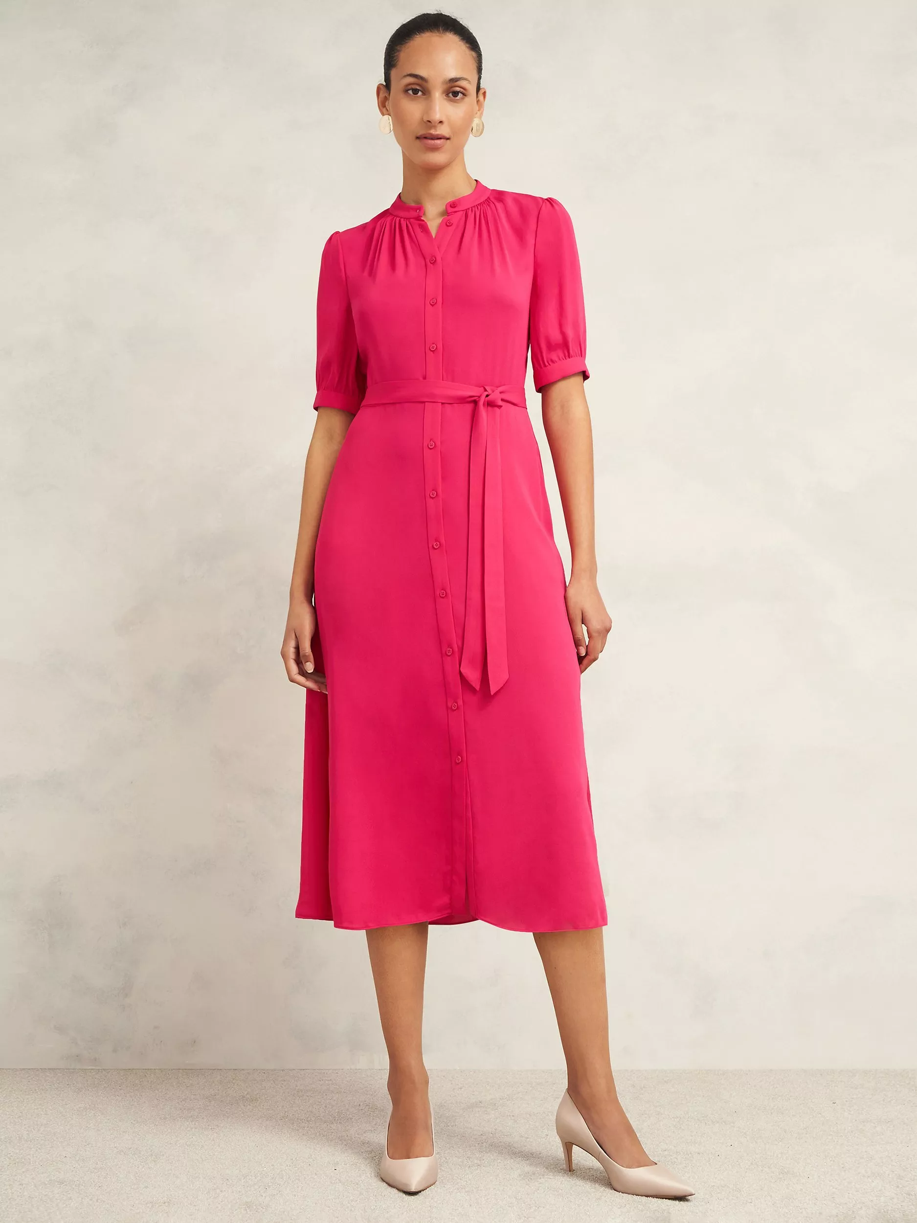 Enter: effortless event dressing. Cast in eye-catching colour, the Renee dress captures femininity with a belted silhouette and elegant, gathered details.
