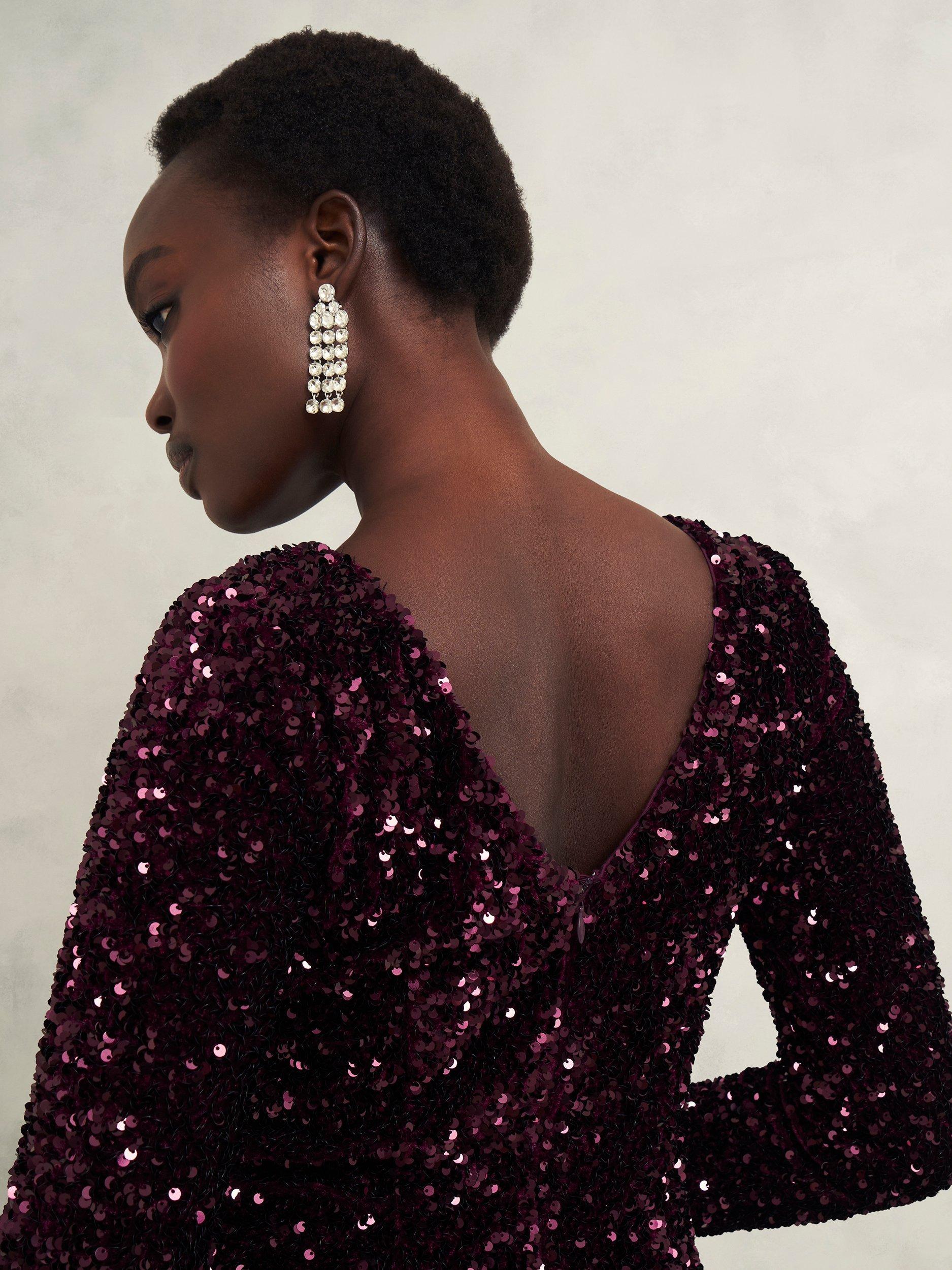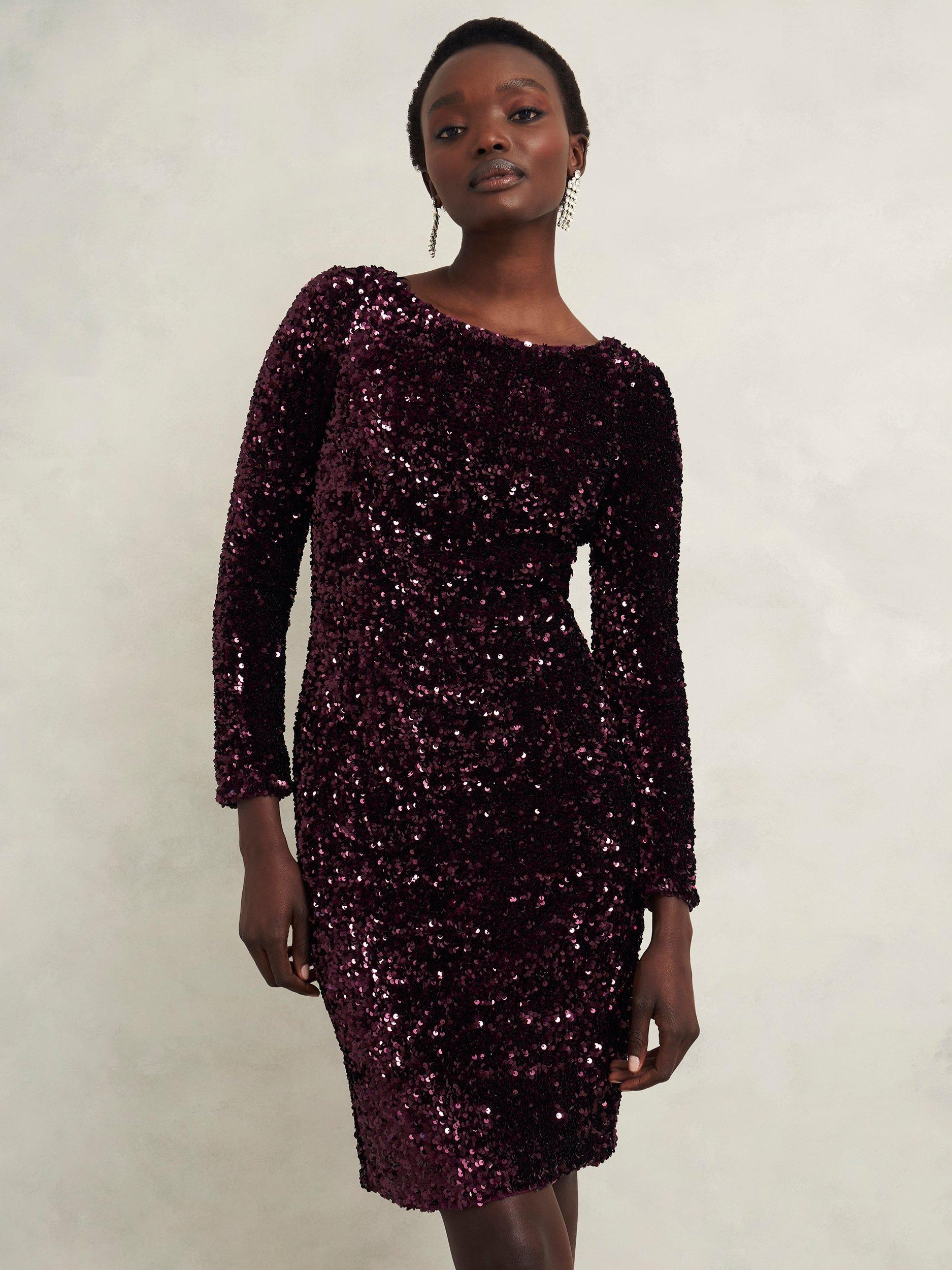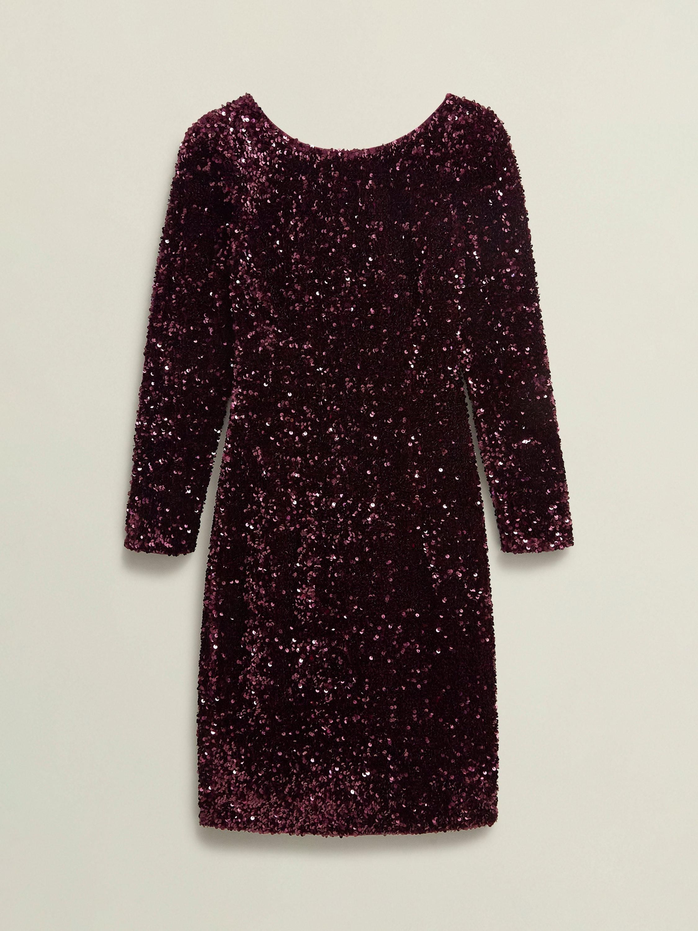 Cue party season in light-catching sequins with the Sawyer dress. Expertly cut to fit and flatter, look to the neckline and dipped back for alluring elegance.