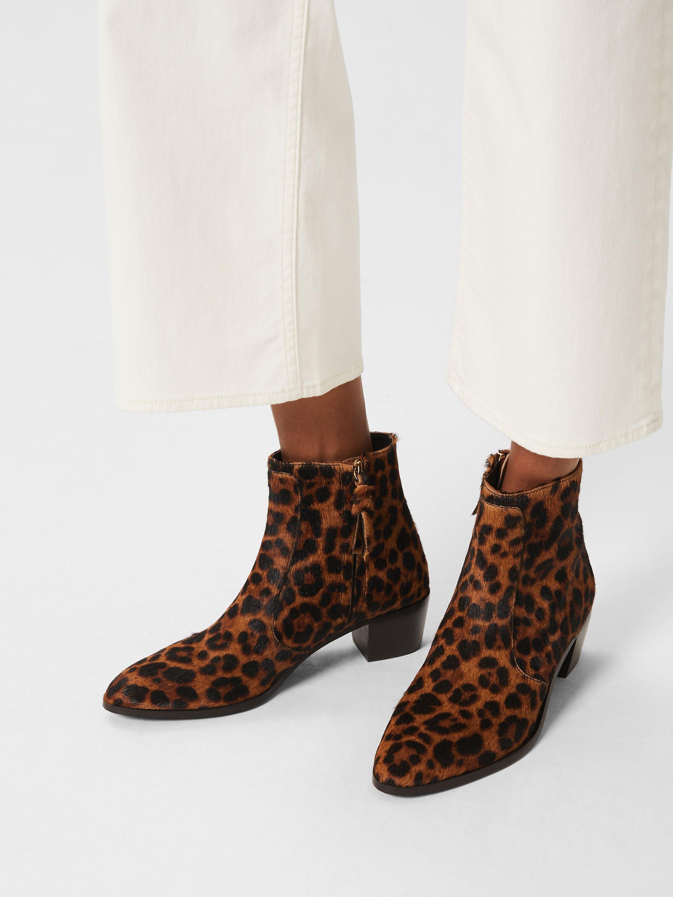 Designed with an easy side zip, this pair of ankle boots from Hobbs is crafted from leather and feature a standout leopard print.