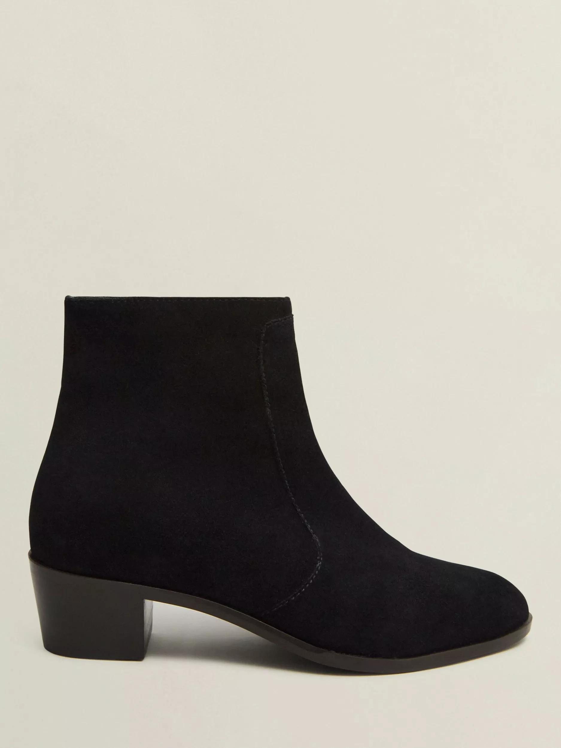 Made from suede with a low block heel, they're completed with stitch detailing and a side zip for easy access.