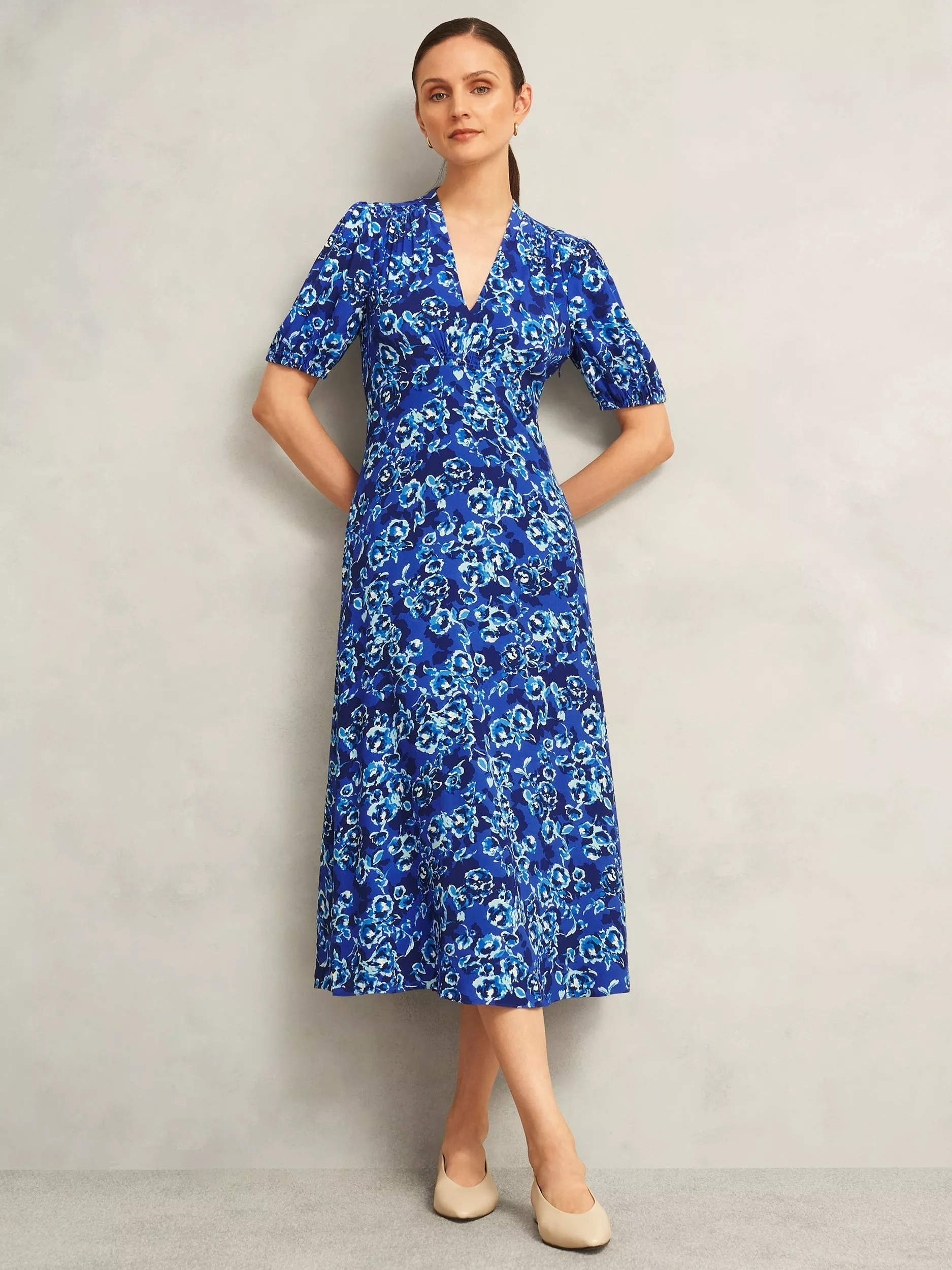 Striking a balance between bold and feminine, the Sidonie style modernises the timeless tea dress with a blurred floral print.