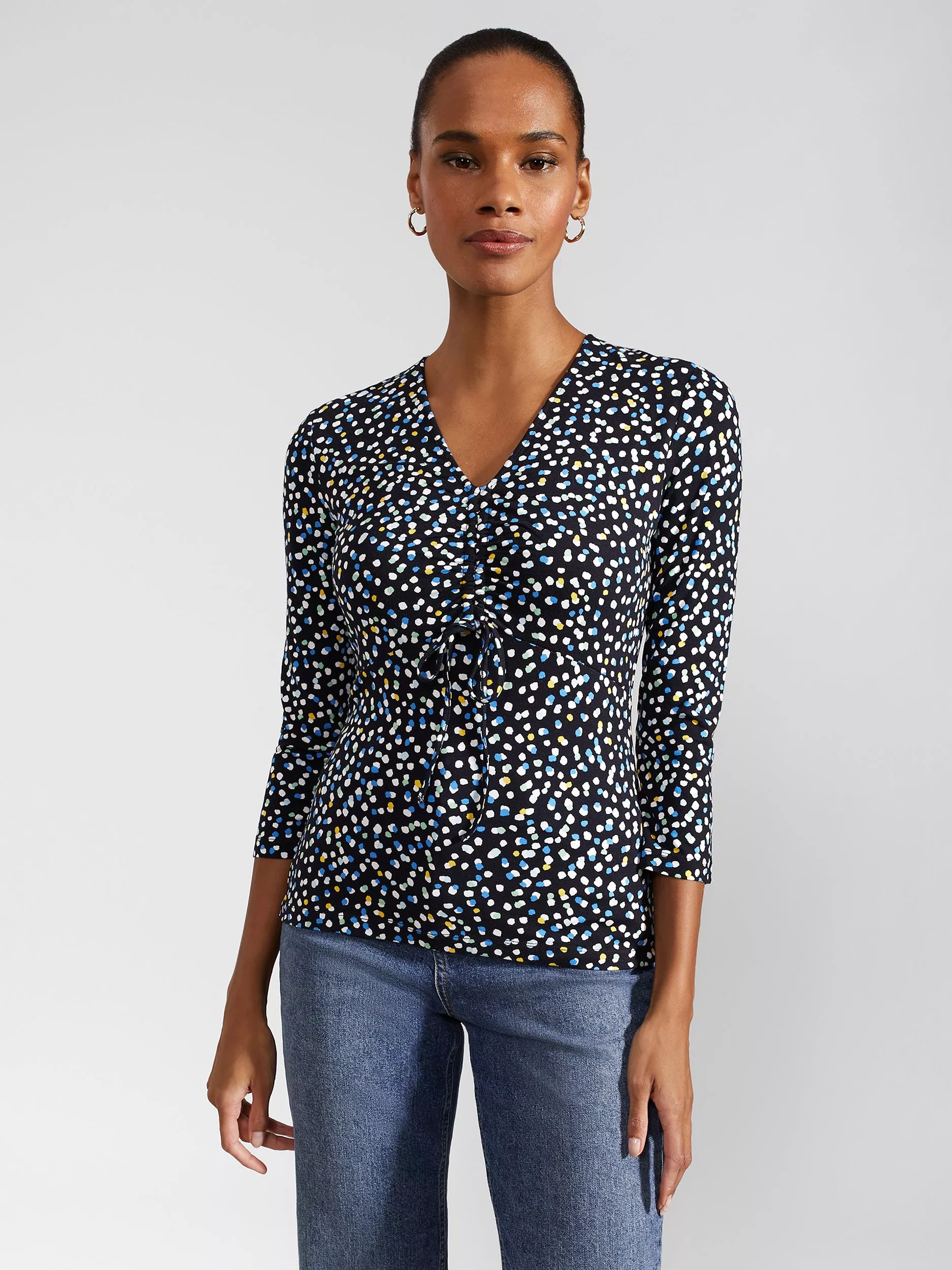 With a flattering v-neckline and three-quarter length sleeves, it is made with light yet robust blended fabric for longevity of wear and will slot seamlessly into your everyday staples.