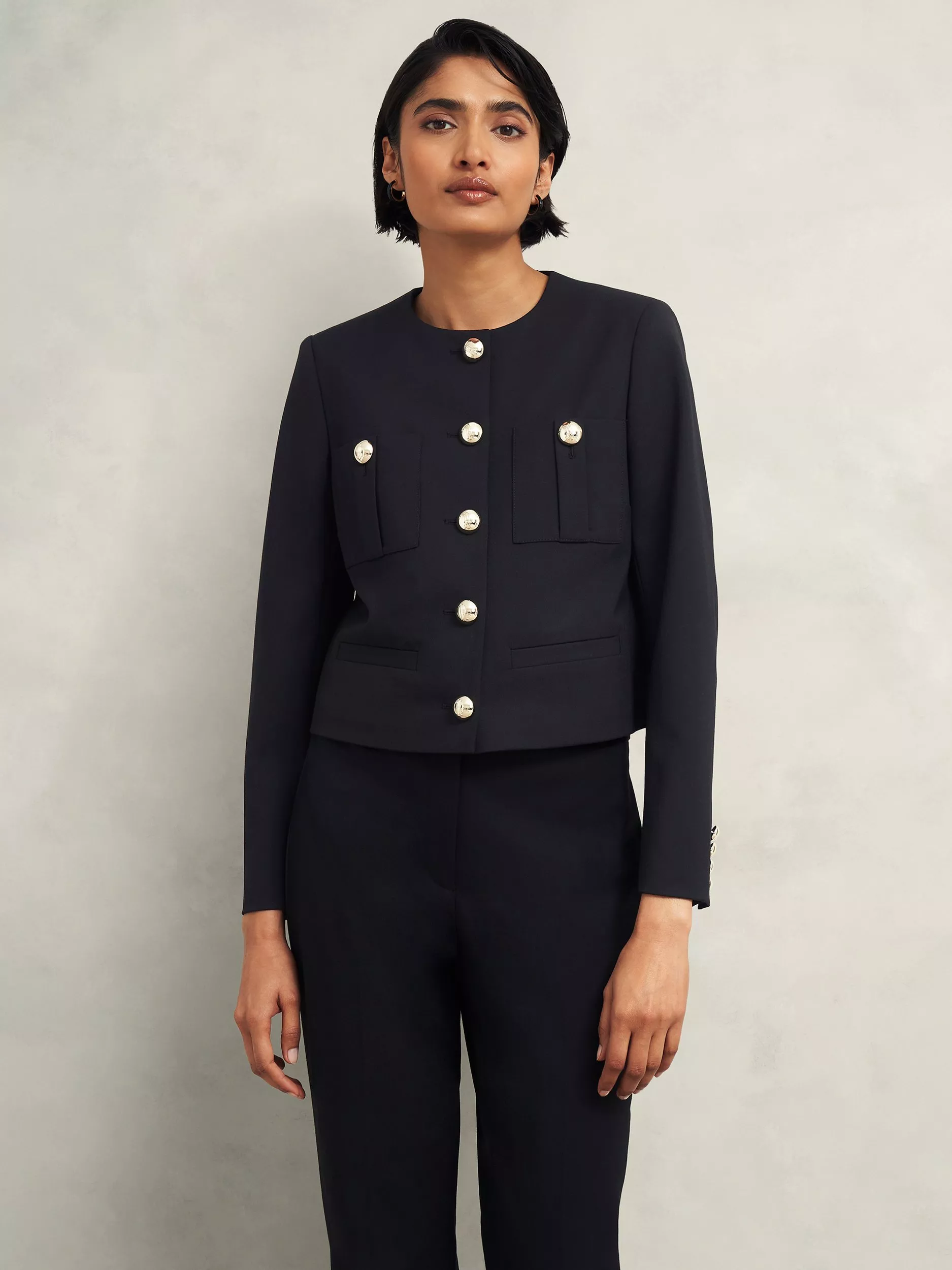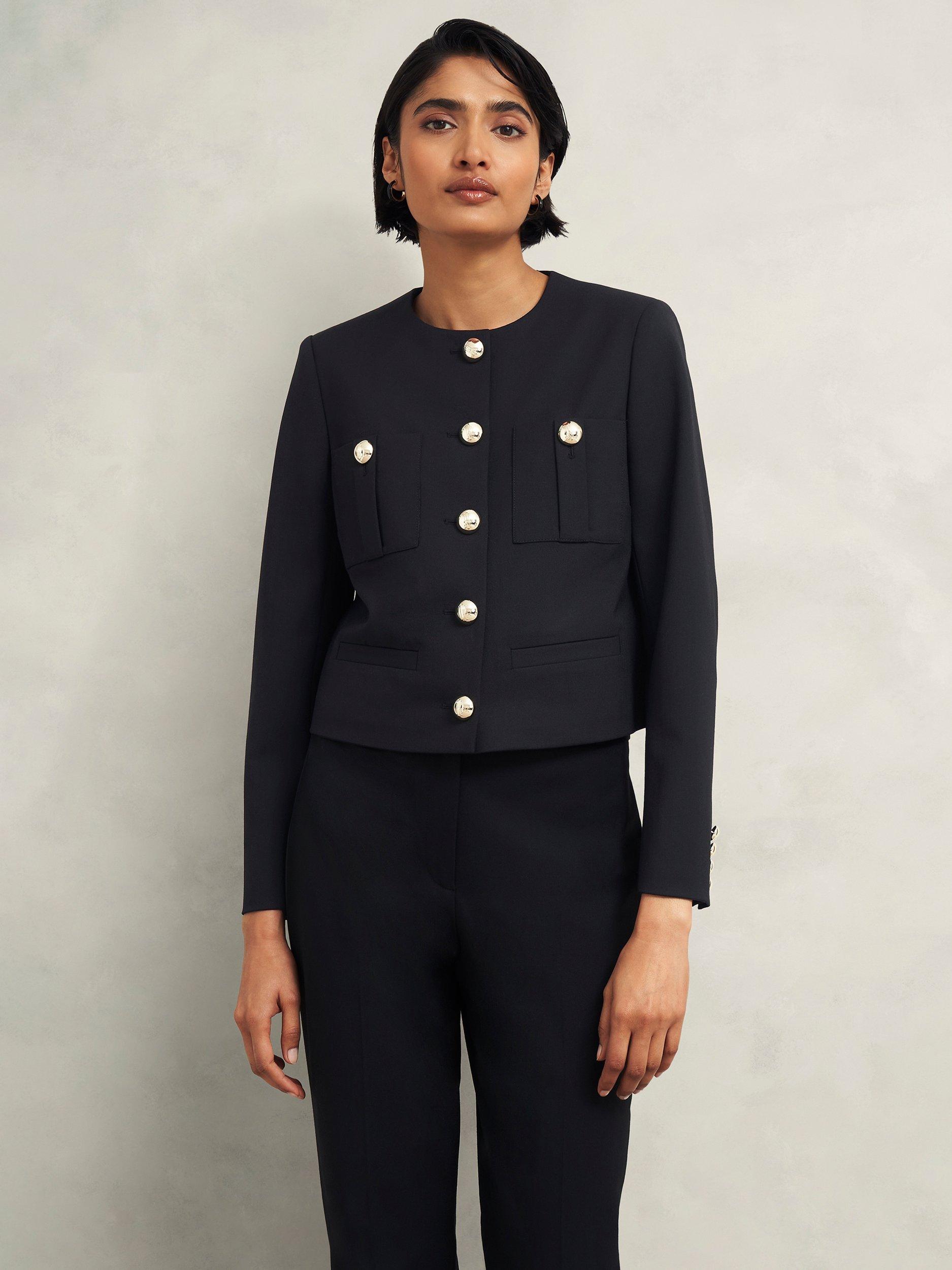 A hint of utility. A touch of chic. The Sinclair jacket is effortlessly smart with a boxy fit and gold embossed buttons.