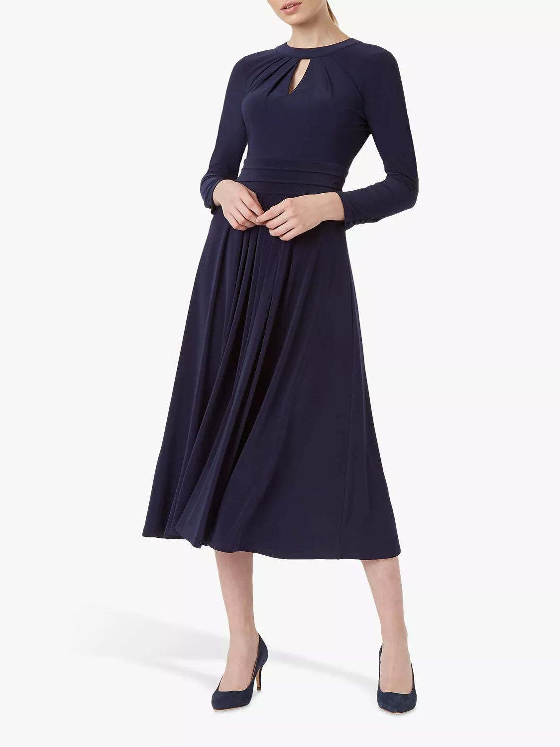 Crafted from silky-soft jersey for a beautiful drape, the neckline is detailed with ruching and a keyhole cut out, while a tux-inspired trim highlights your waist. Pair with sleek heels and a clutch to be event ready.