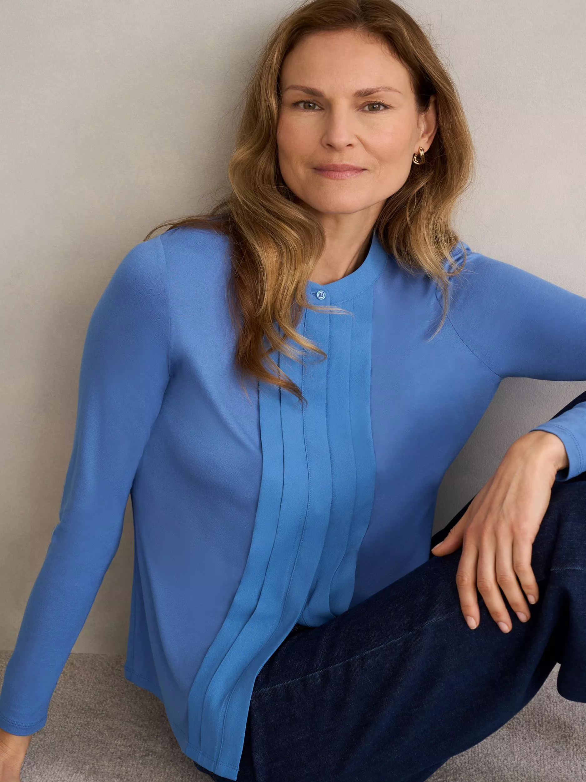 Where neat pleats meet modern hues, the Tiana top lends itself as a versatile style for relaxed weekday needs.