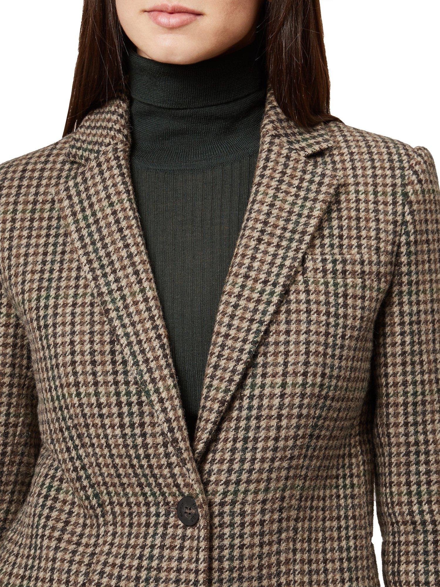 Expertly crafted from pure wool, its checked design was woven for Hobbs in the esteemed Abraham Moon woollen mill in Guiseley, Yorkshire. This premium piece is cut to a straight tailored silhouette with slim lapels, a subtly defined waist and a contrasting Melton undercollar for a nod to men's tailoring.