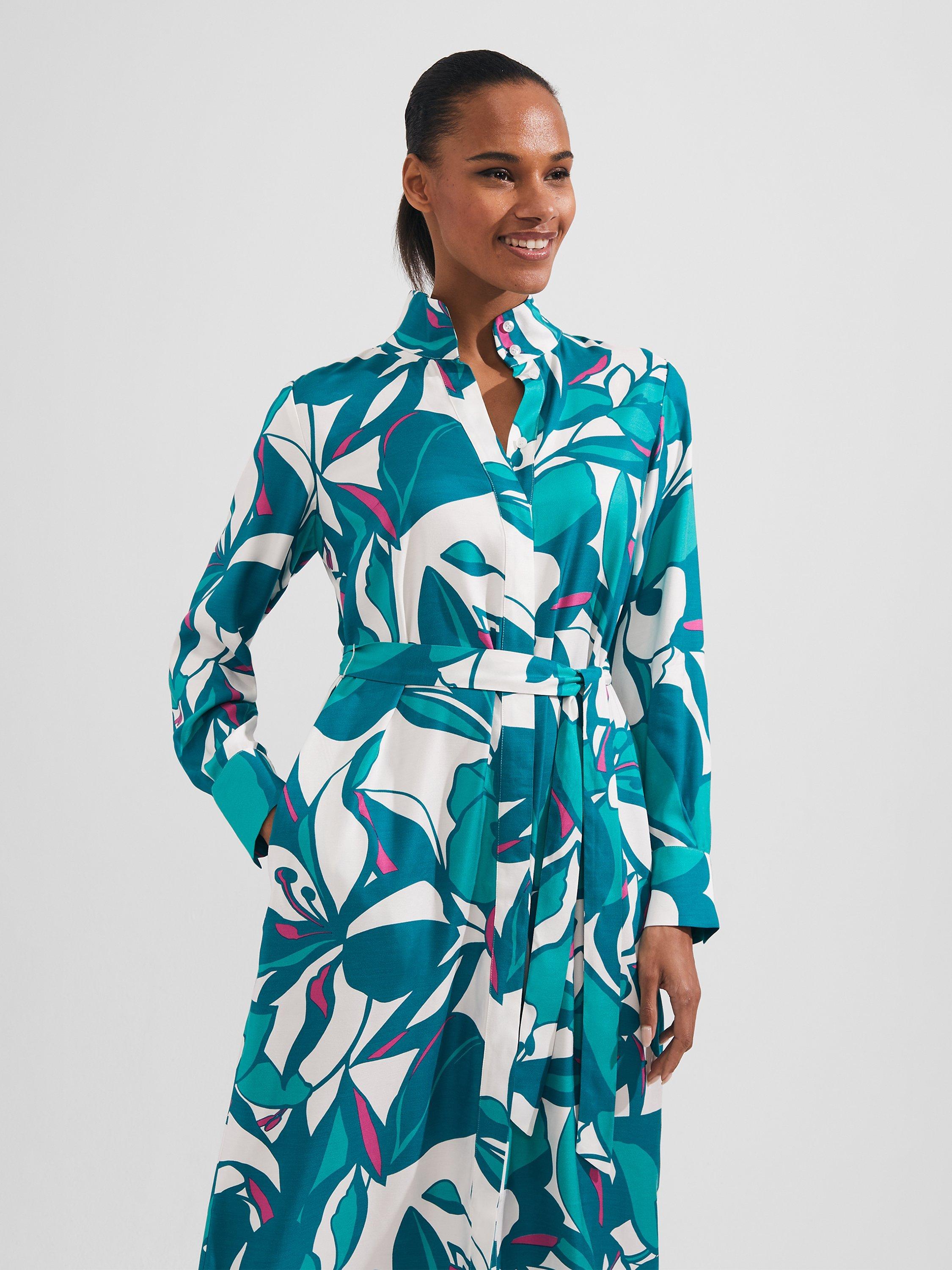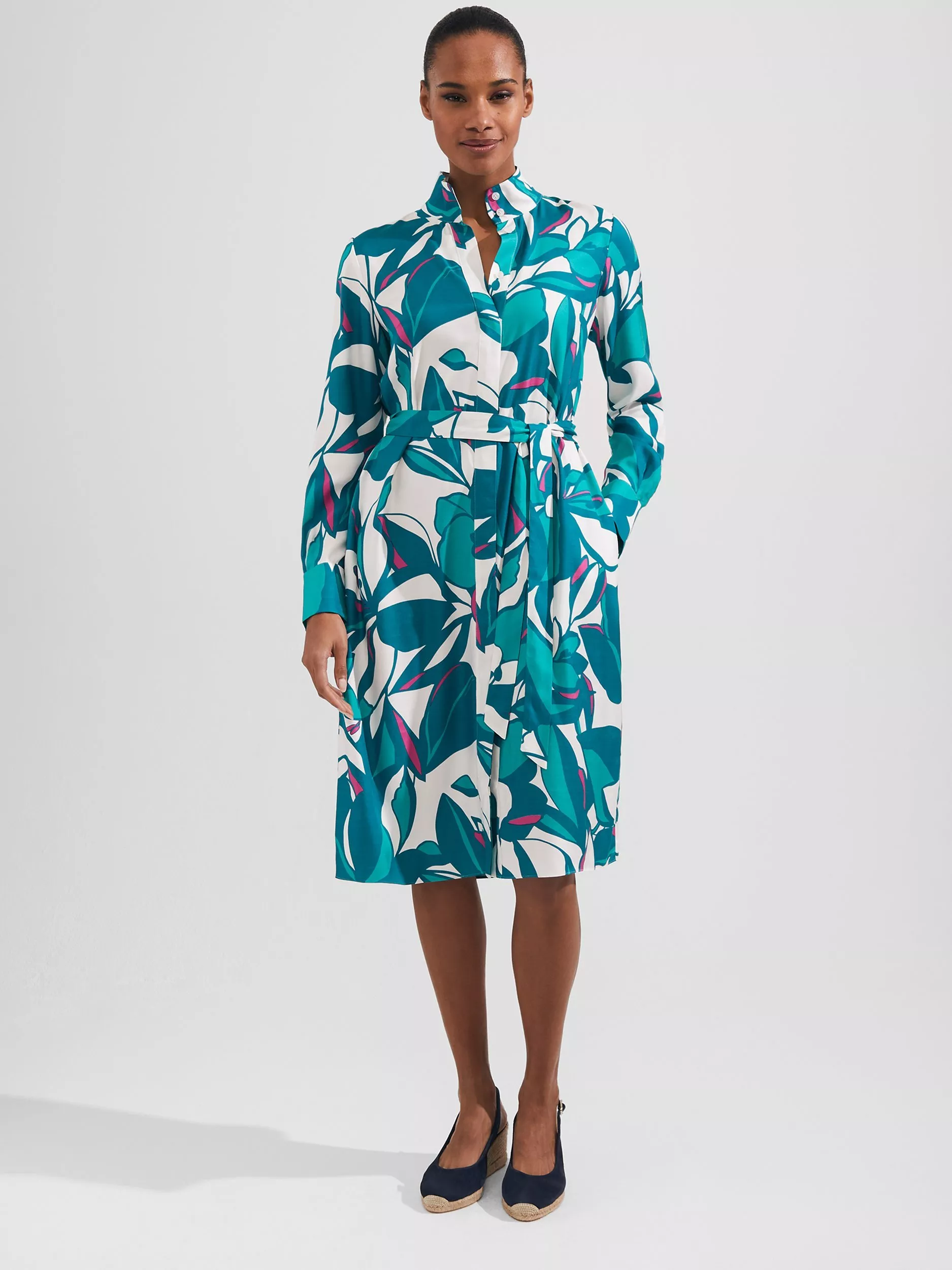 In a smart, shirt style, this knee length dress from Hobbs is made from viscose that's beloved for its weightless feel. Featuring a collar neckline and long sleeves, it is fashioned with abstract florals for added charm.