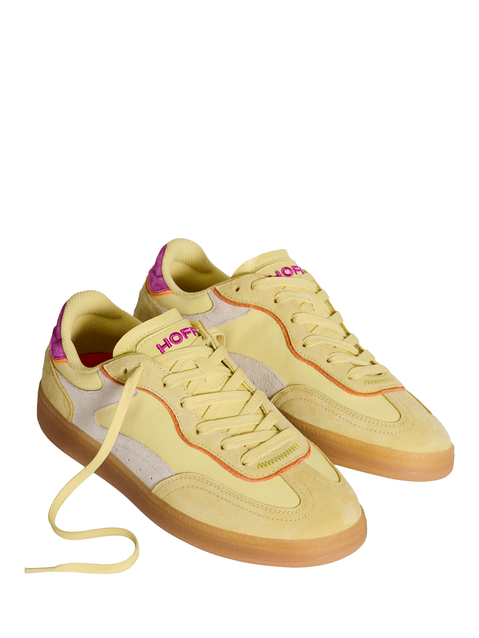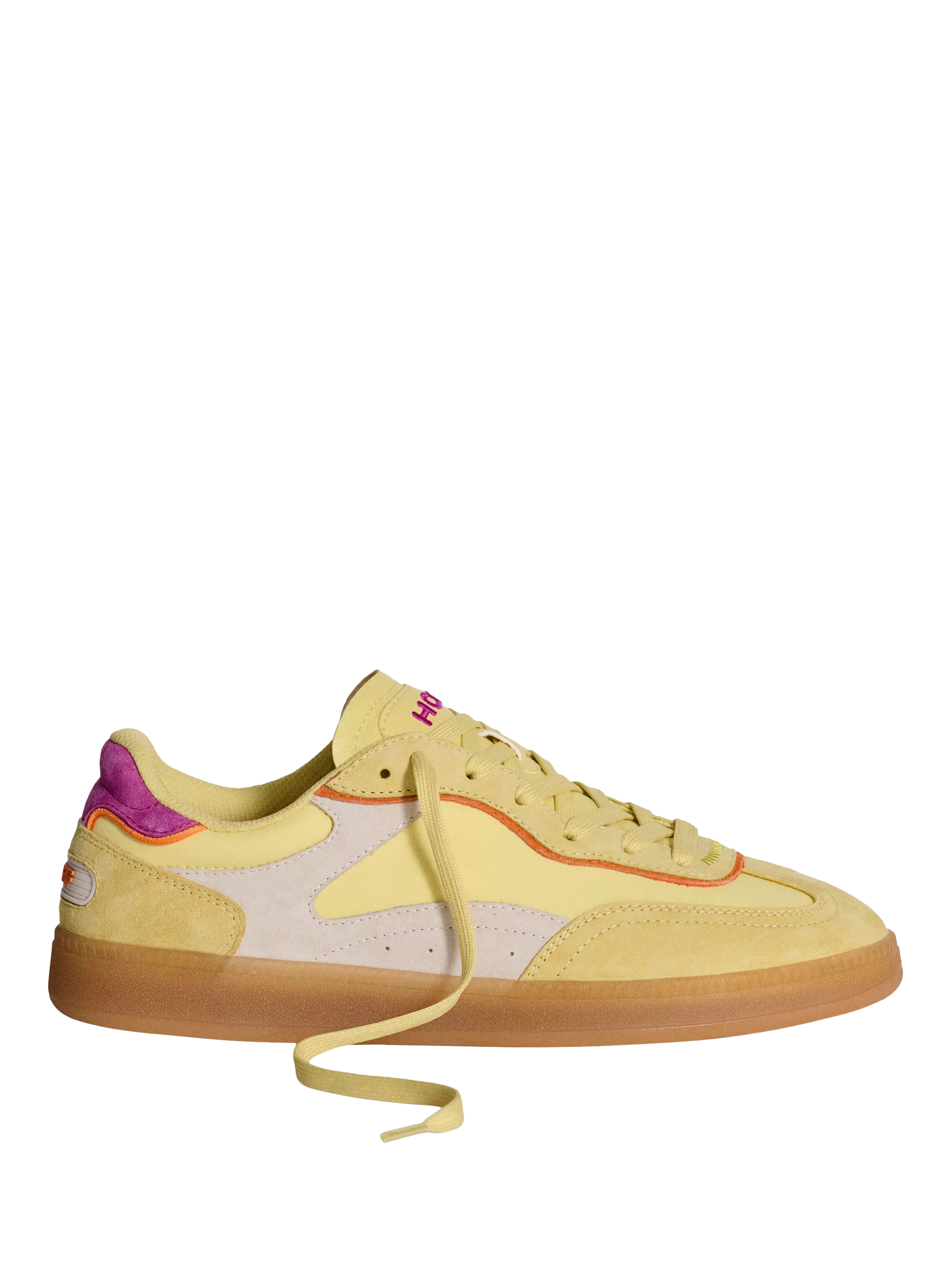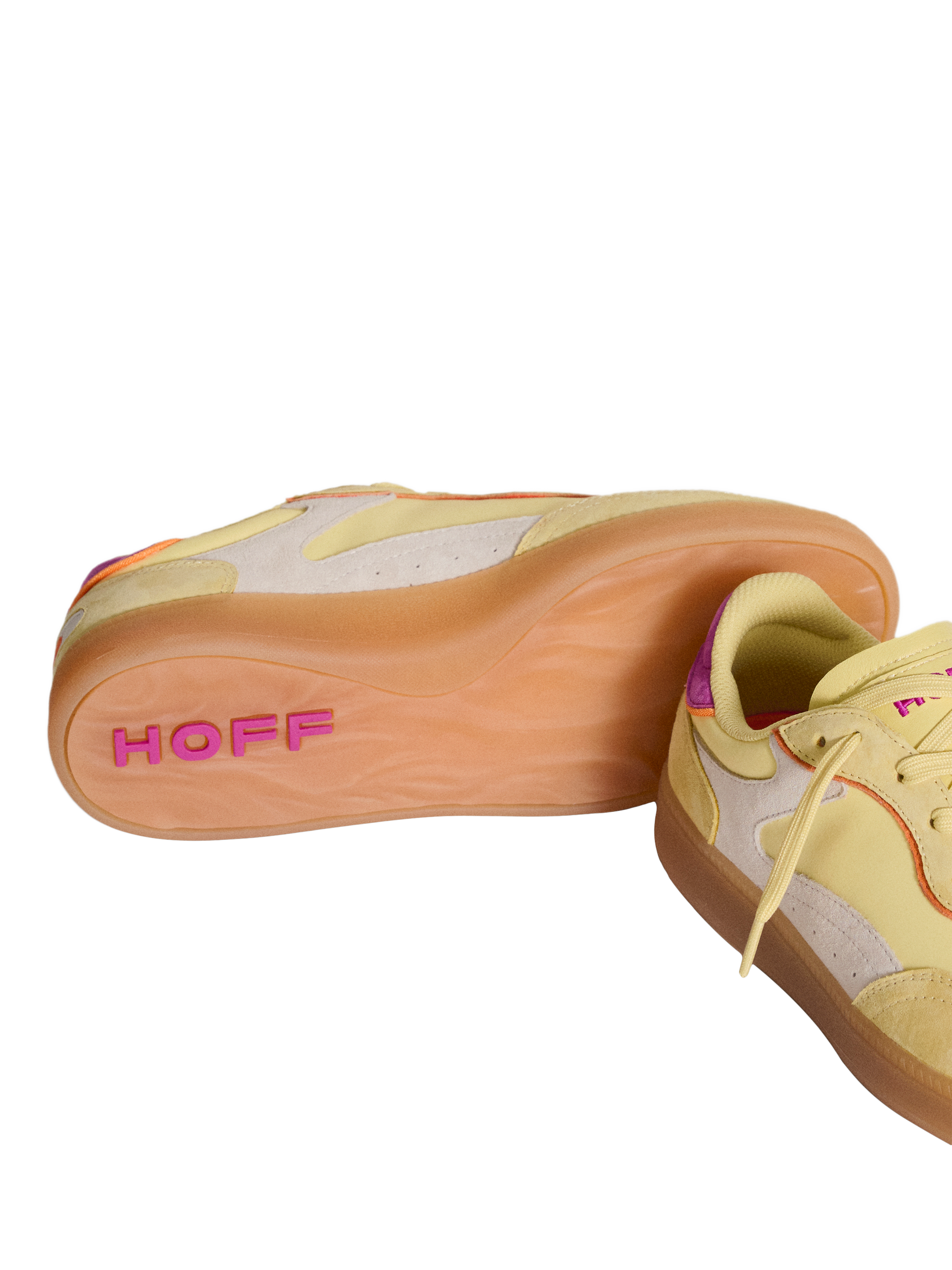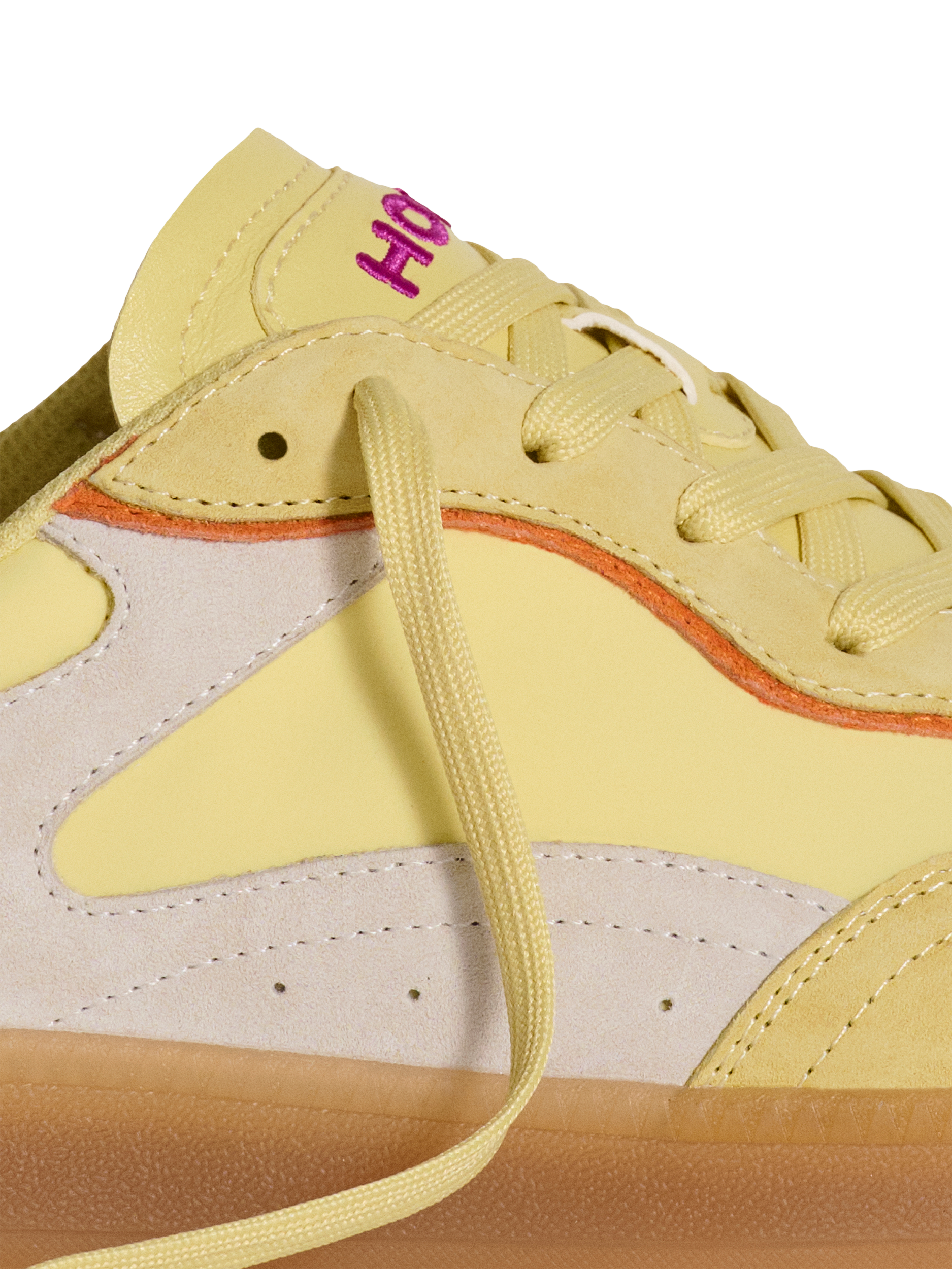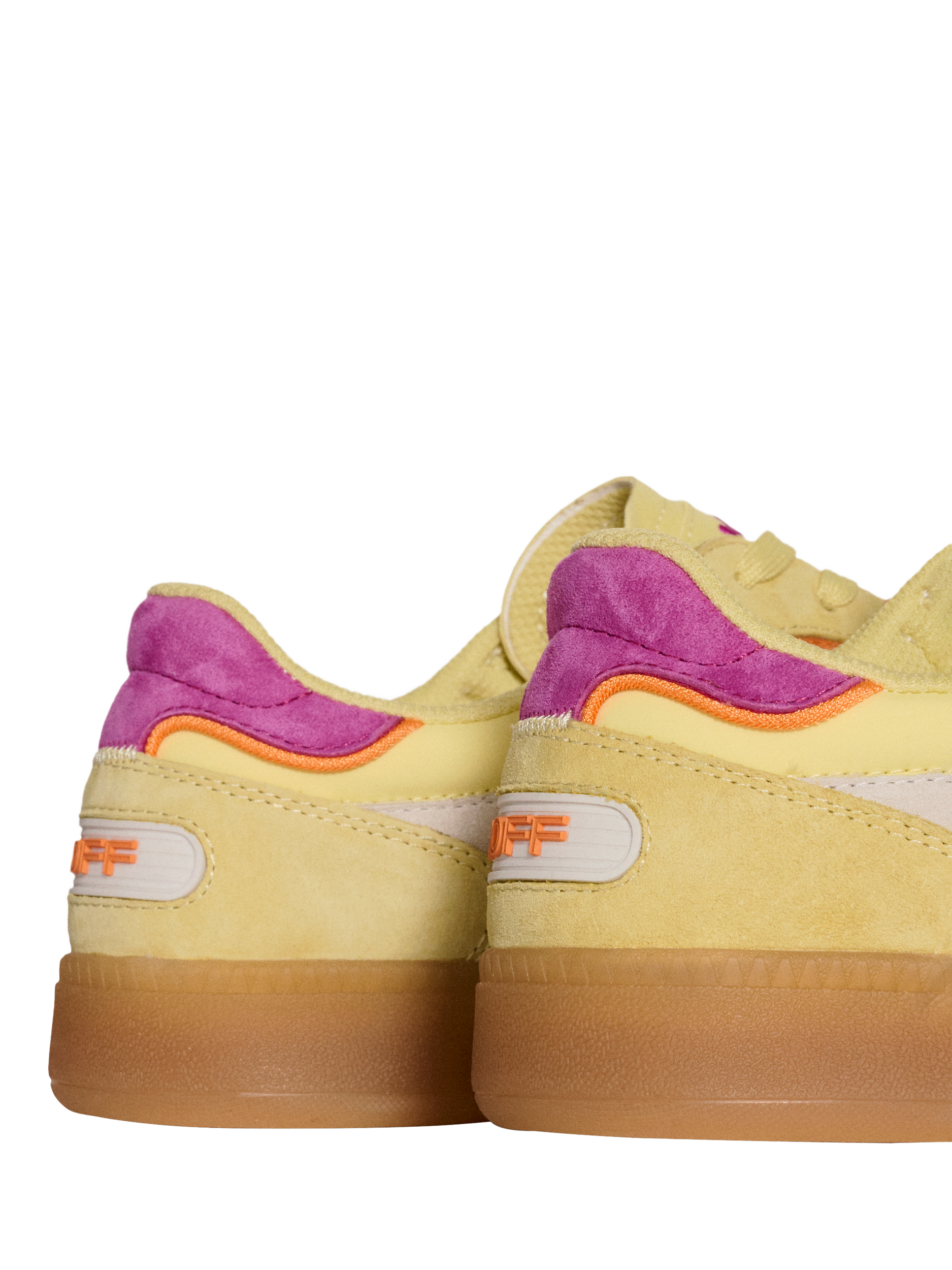 Designed in pastel yellow suede with contrasting cream and fuchsia details, it adds a unique touch of colour. Comfort is guaranteed thanks to the Memory-Foam (R) insole, ideal for exploring your favourite cities. Pair them with high socks and elevate your street style.