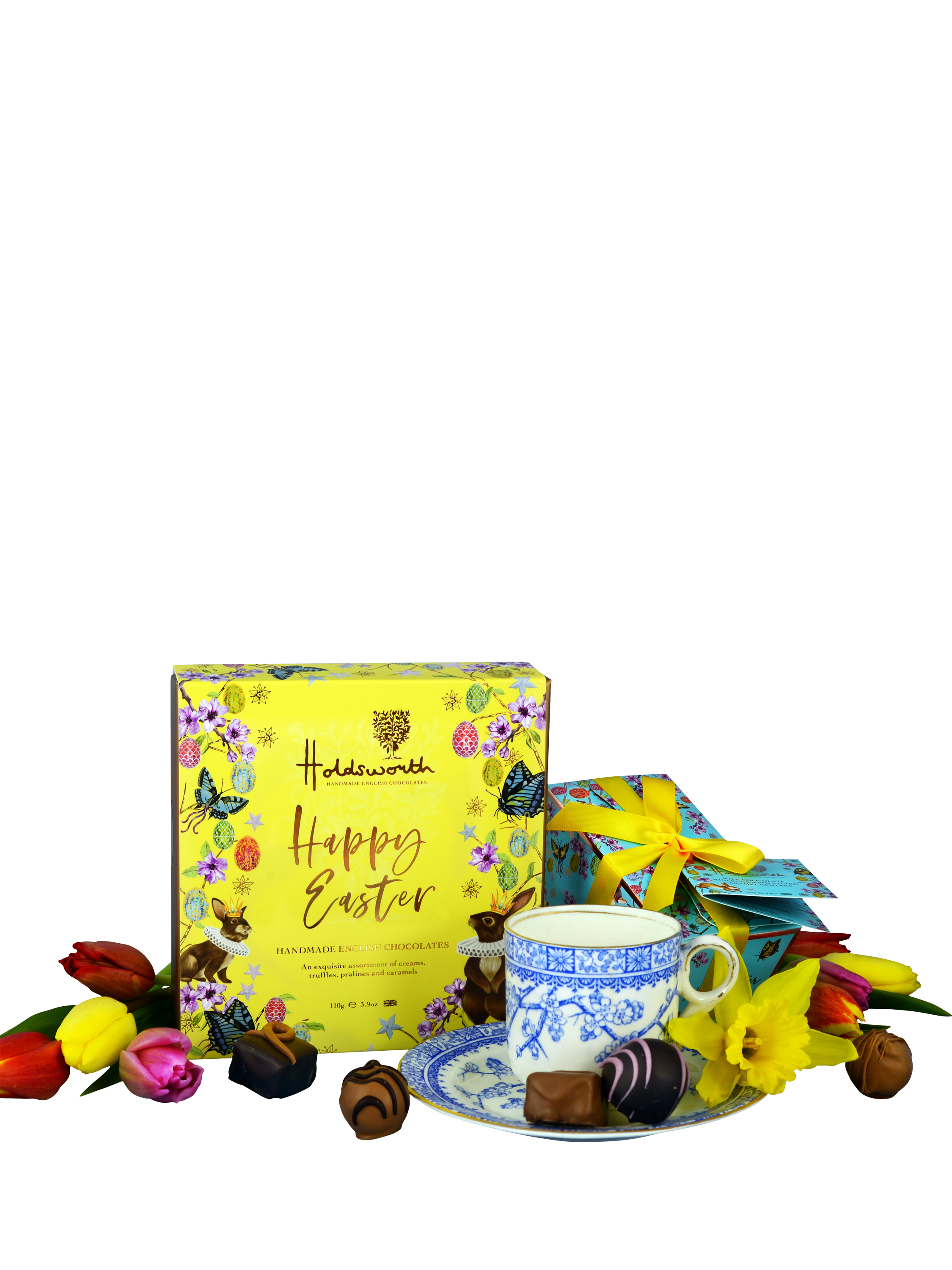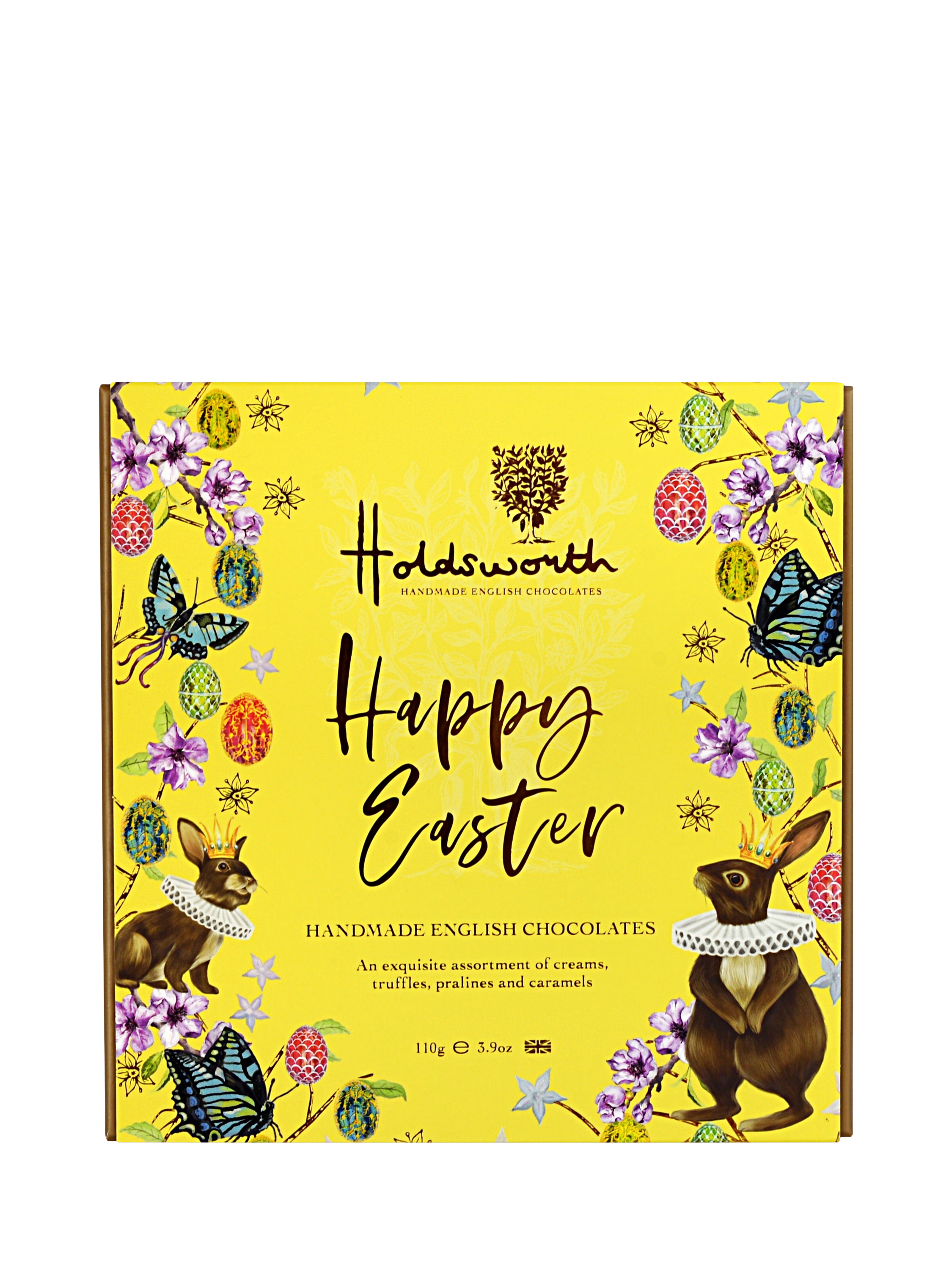 A collection of decadent handmade chocolates, truffles, pralines and caramels. Packed into a whimsical 'Happy Easter' box, creating the perfect gift.