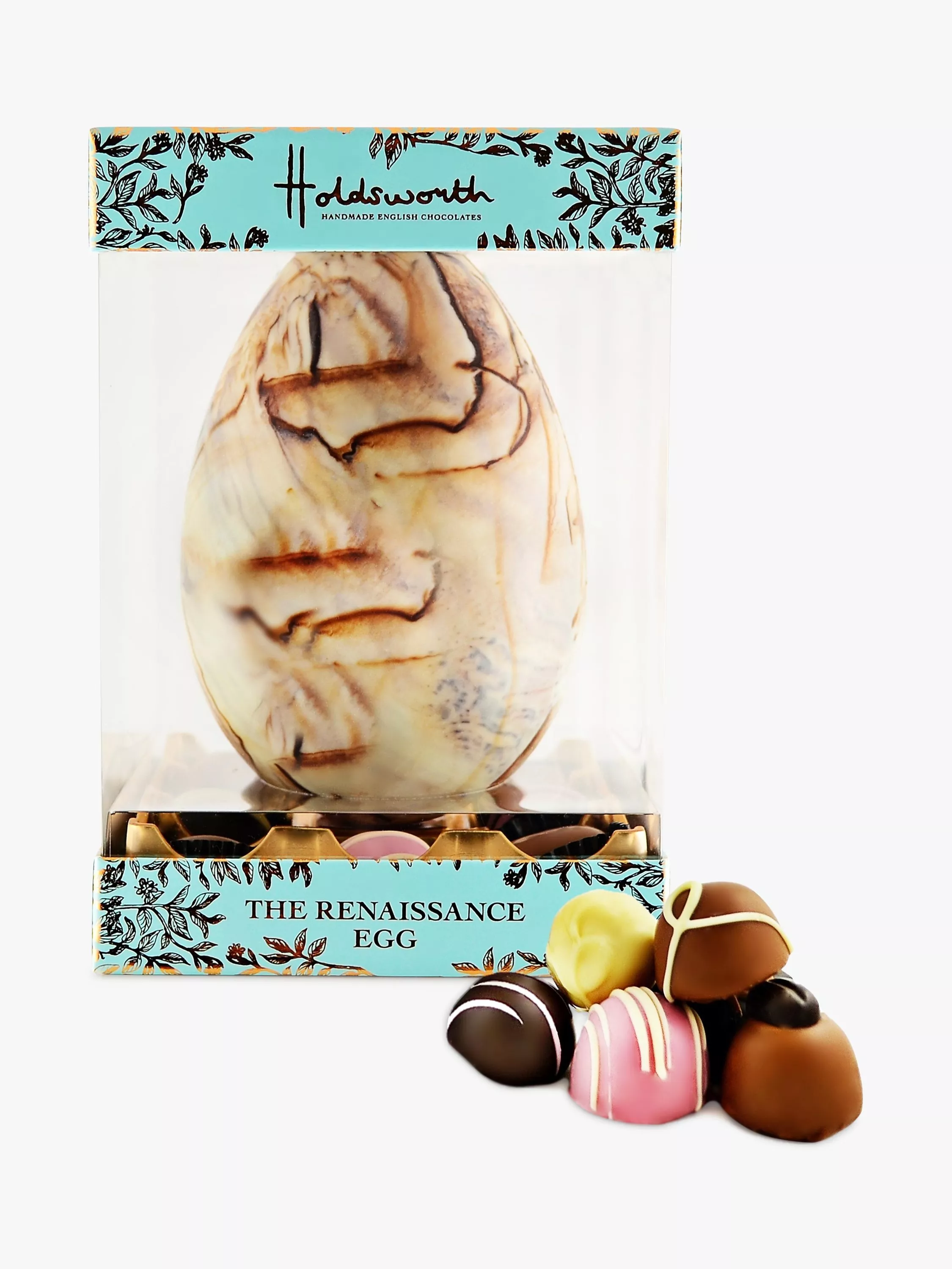 As attractive as it is delicious, this stunning milk and white chocolate Easter egg has a dark chocolate marble effect finish and includes a a selection of Renaissance Collection chocolates.