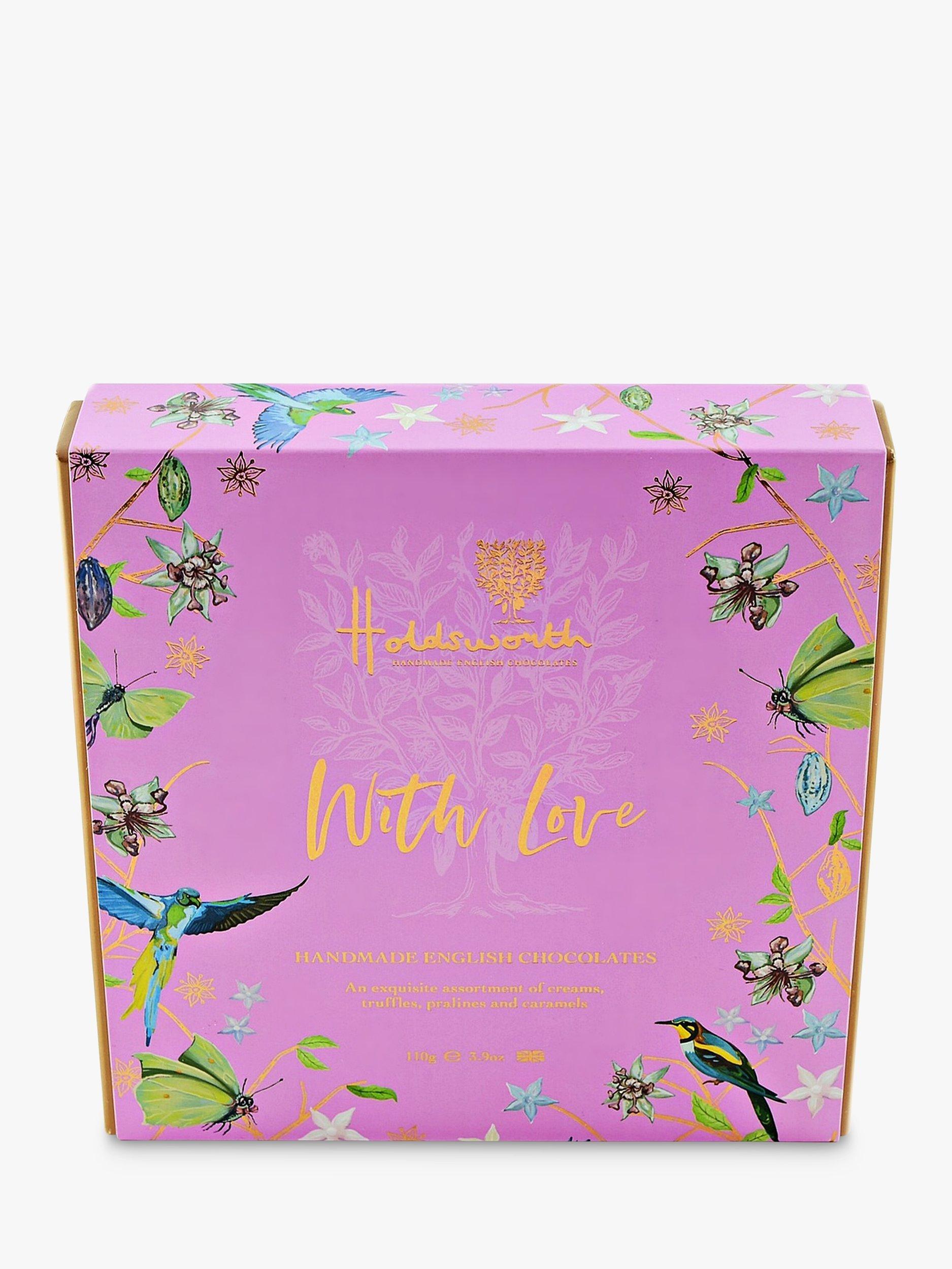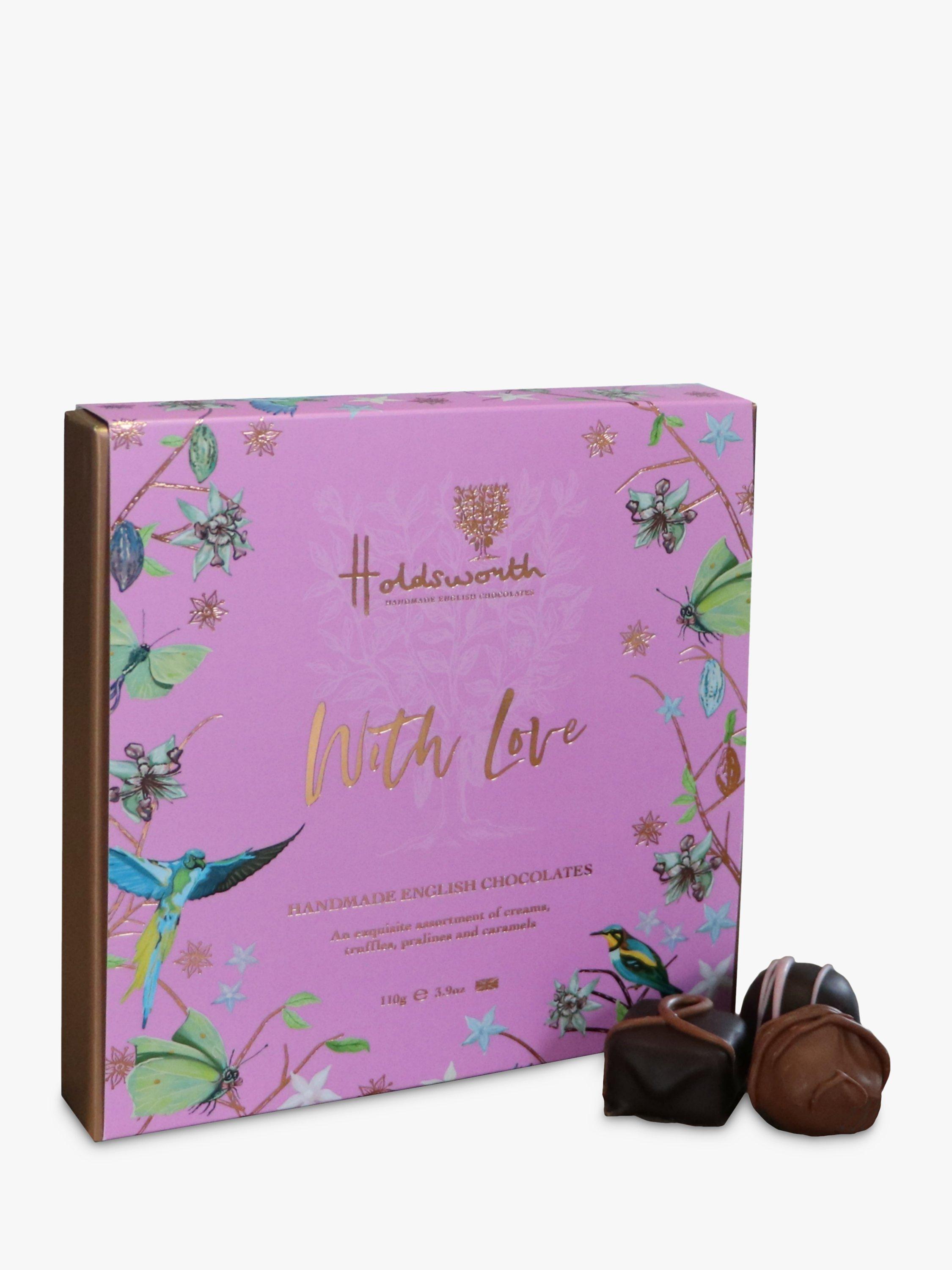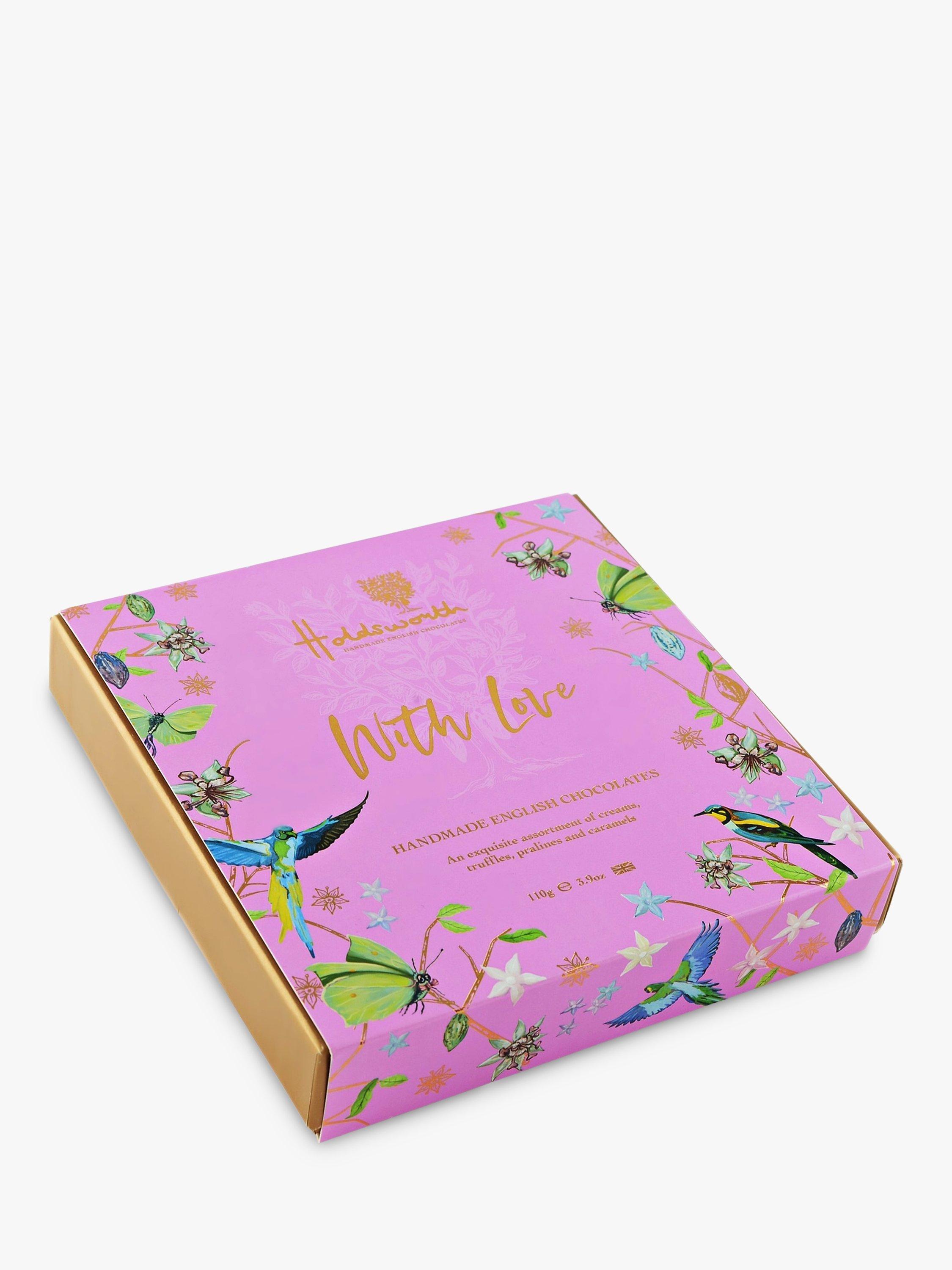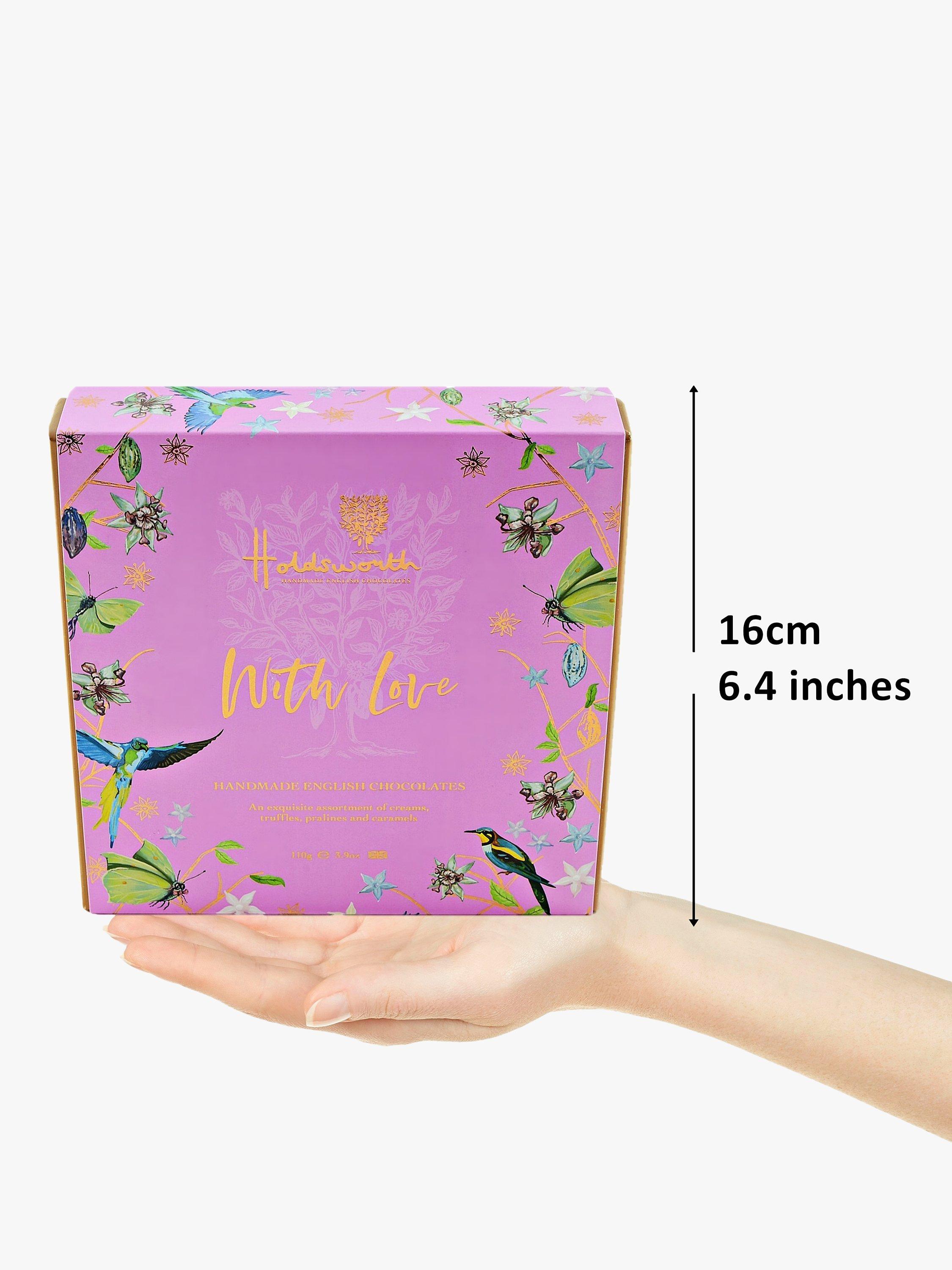 An exquisite assormtent of creams, truffles, pralines and caramels, lavished in the finest milk, dark & white chocolate and presented in a whimsical "With Love" gift box.