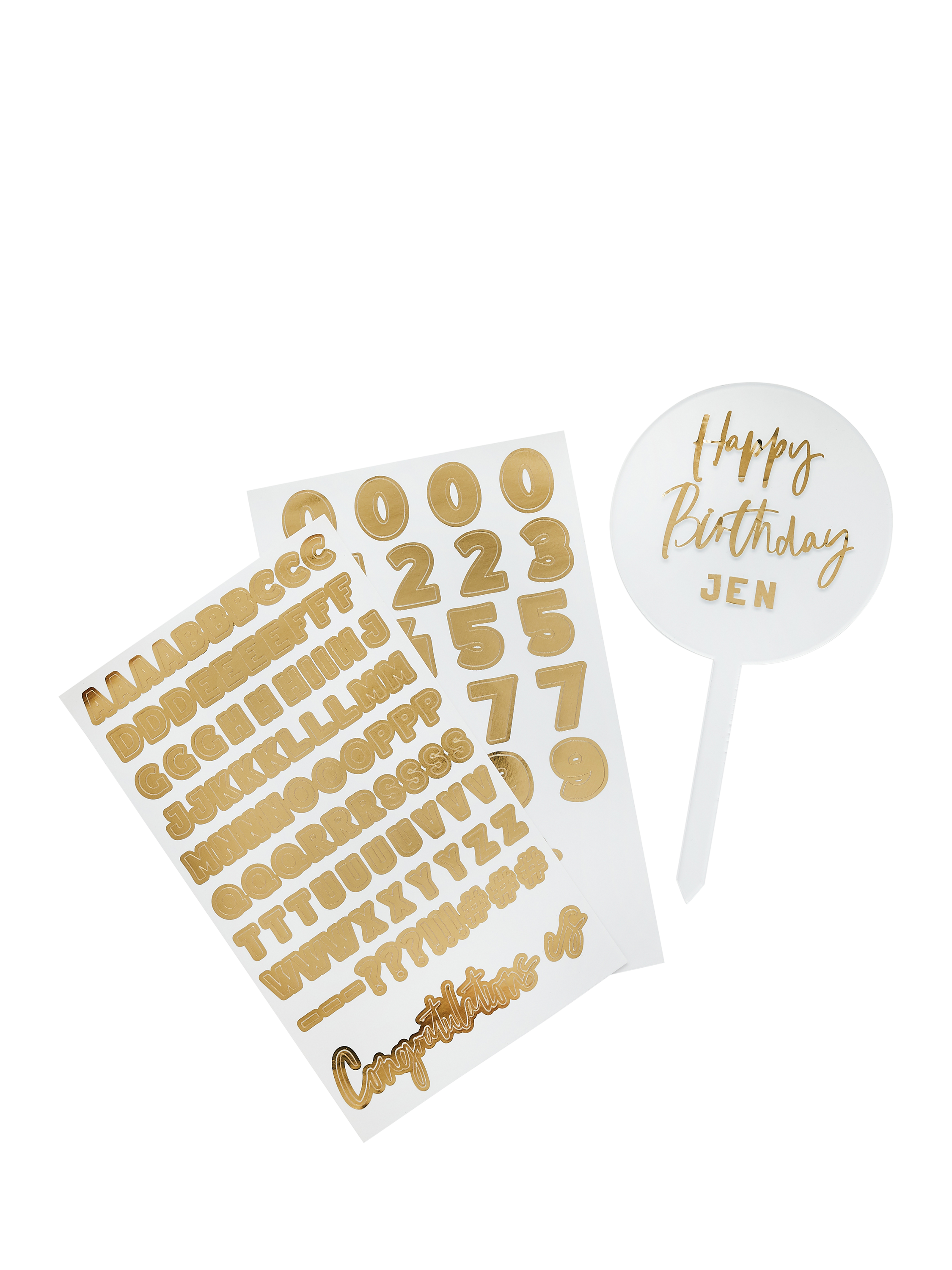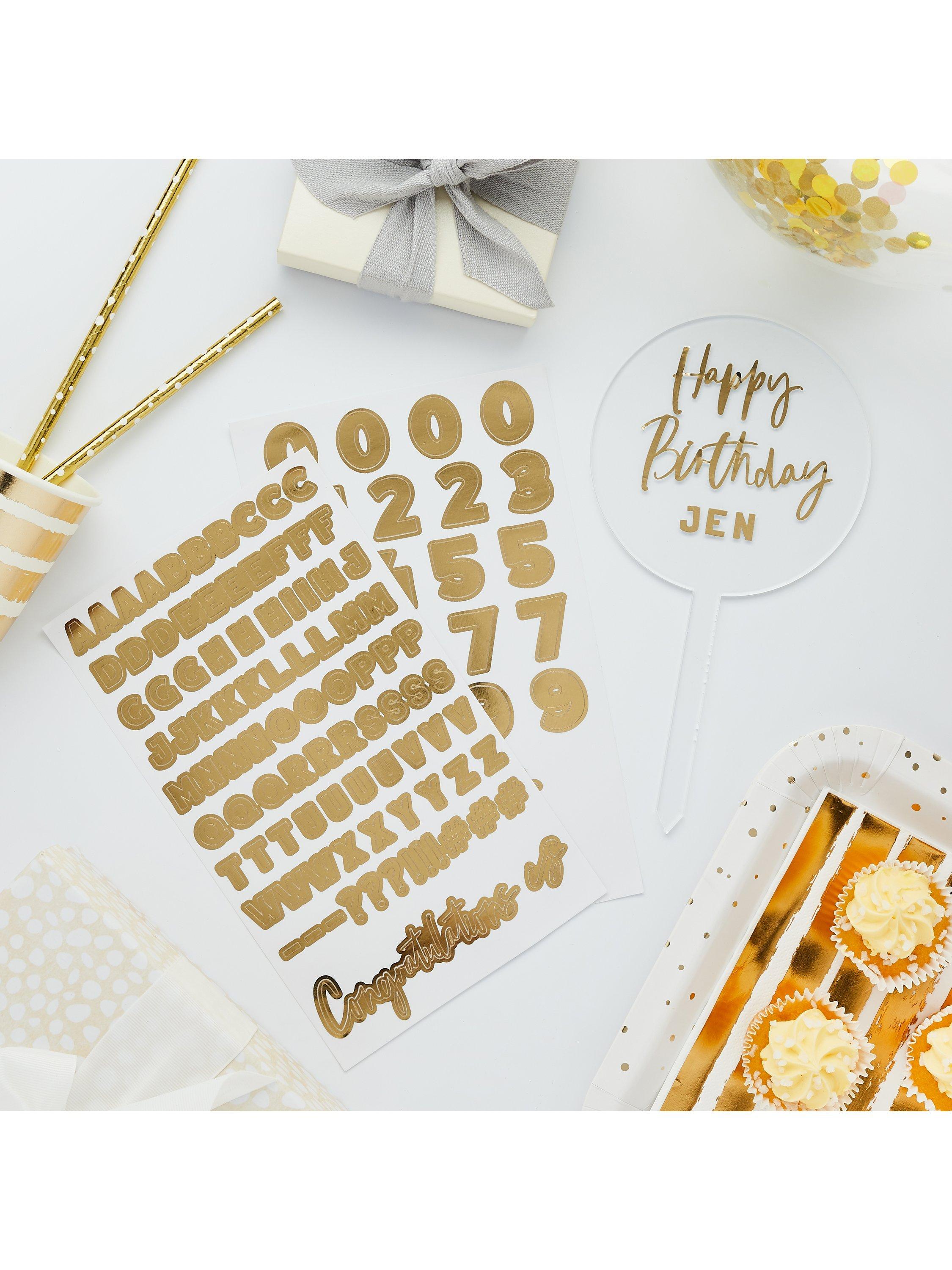 Add that special touch to your celebration cake. Personalise with the two gold sticker sheets and reuse by peeling the stickers off to use again and again!