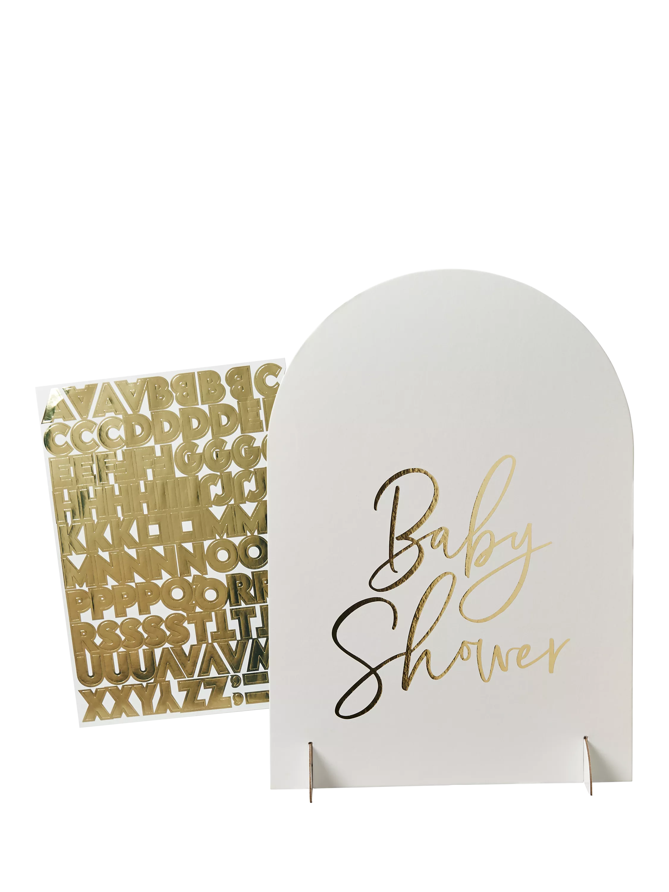 Make the mum to be feel special with this gorgeous baby shower sign to direct guests to the right table. Personalise with the gold sticker sheet.