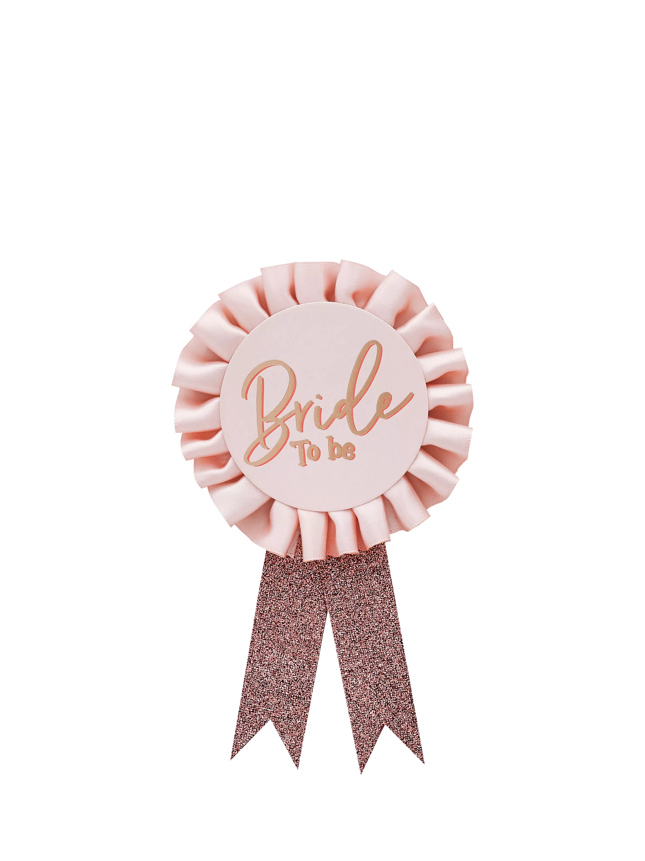 This satin rose gold ribbon rosette is perfect for the VIP guest at the hen party.