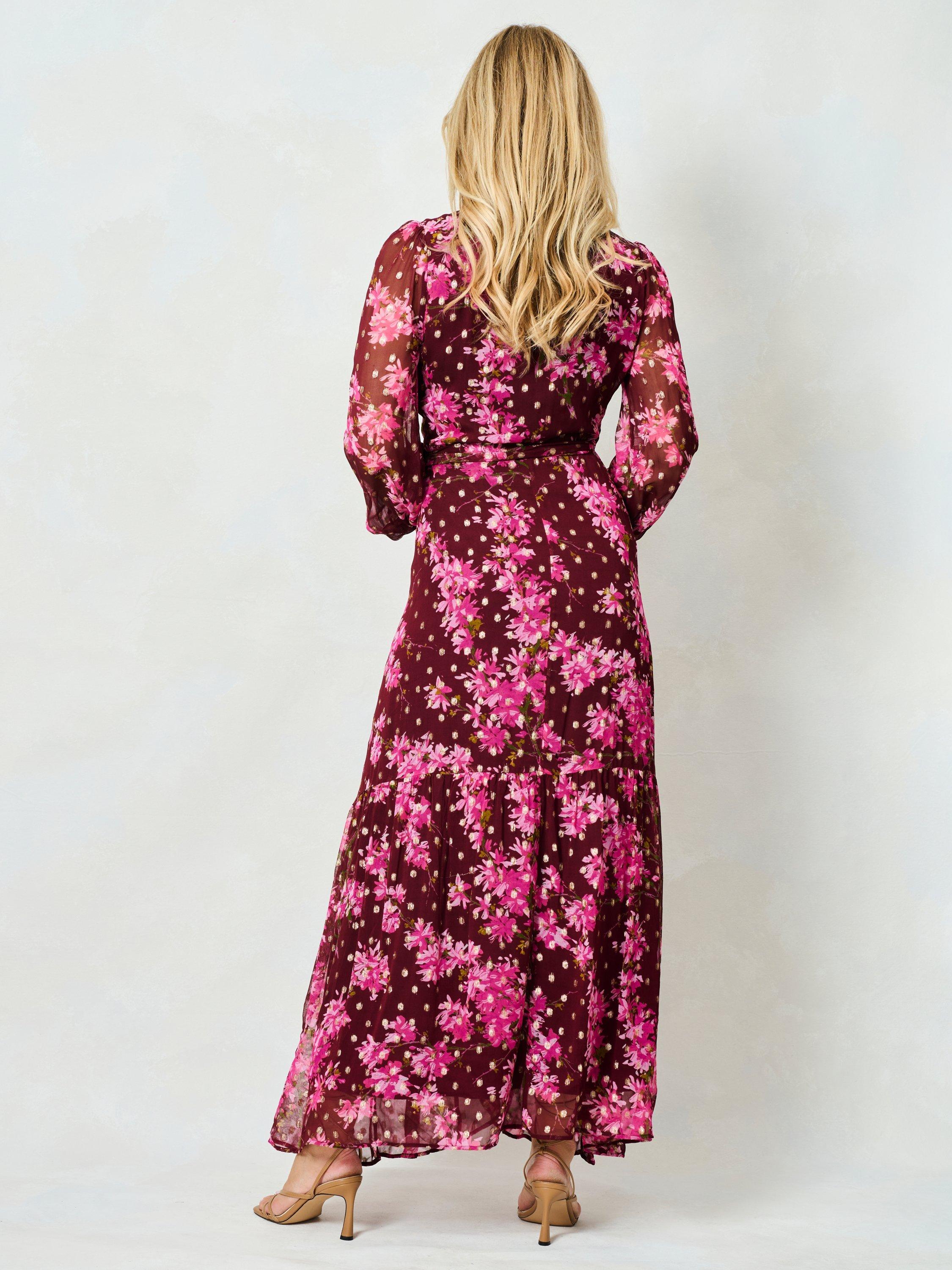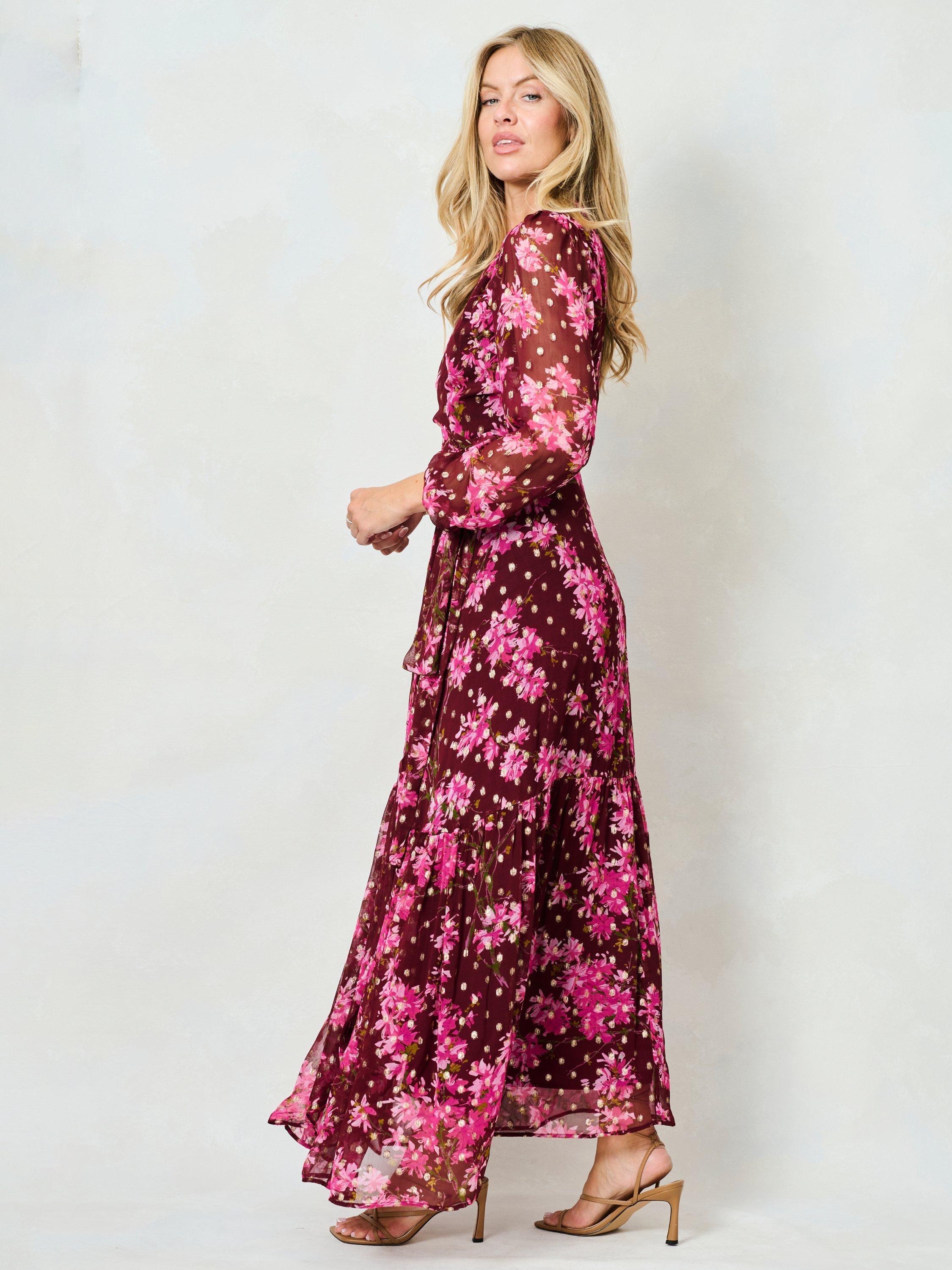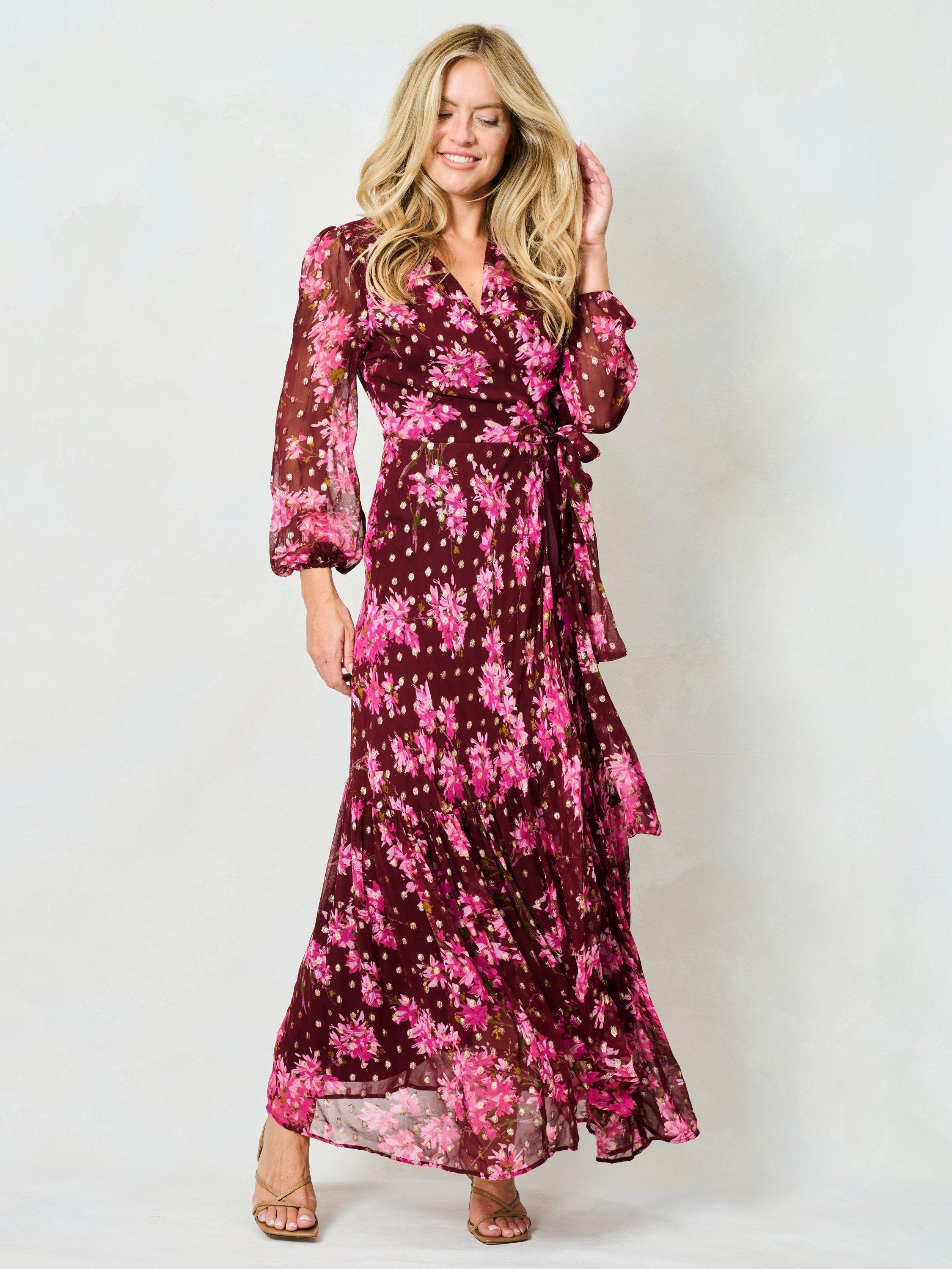 An effortless way to make it look like you've made an effort. This long sleeve maxi dress by Hope & Ivy has a wrap over neckline and a pretty floral finish.
