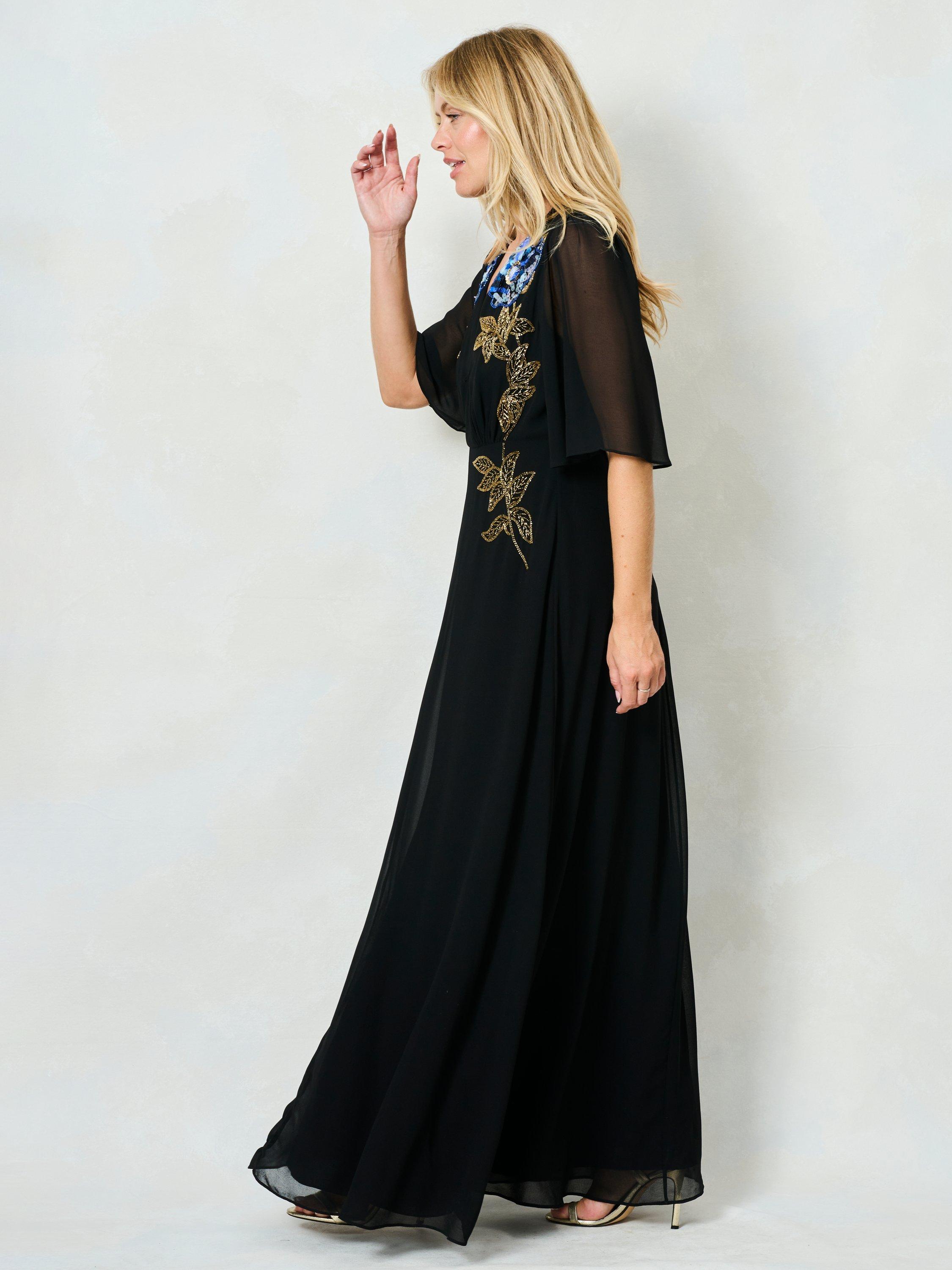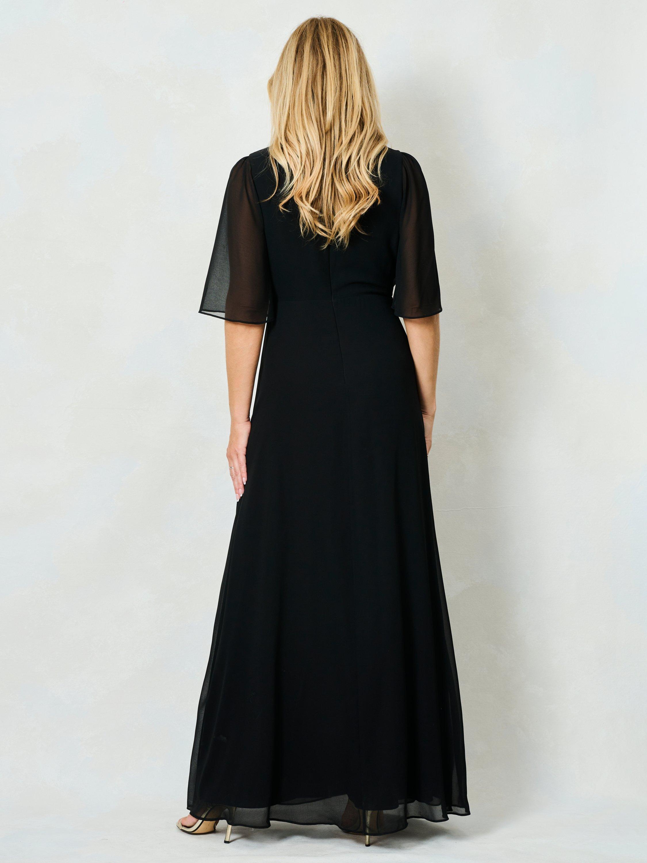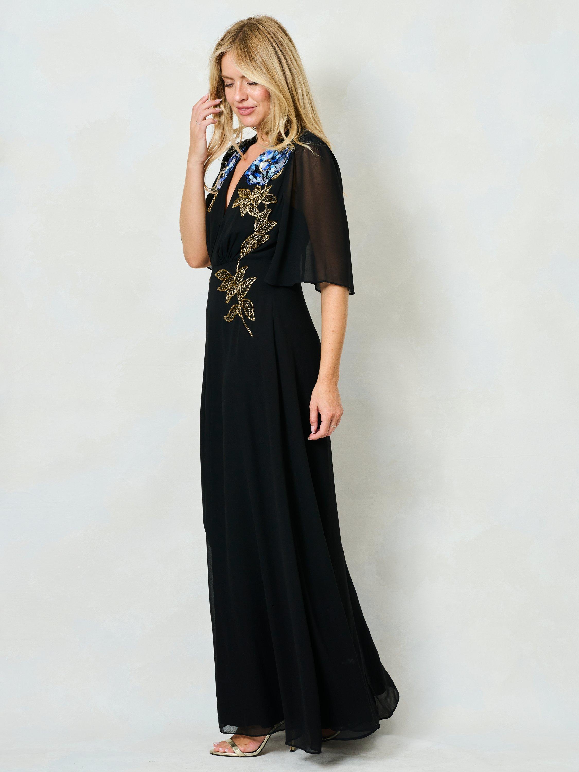 The Clover showcases Hope & Ivy embellishment and design at its very best, with beautiful, sparkling florals decorating the bust and bodice of this dreamy evening gown. Flutter sleeves and a plunging neckline create a beautiful silhouette, while the cascading skirt finishes at sweeping floor length, and the hidden hook and eye detail on the neckline allows for the plunge to be adjusted as desired. This is the perfect party piece for making an entrance at any event this season.
