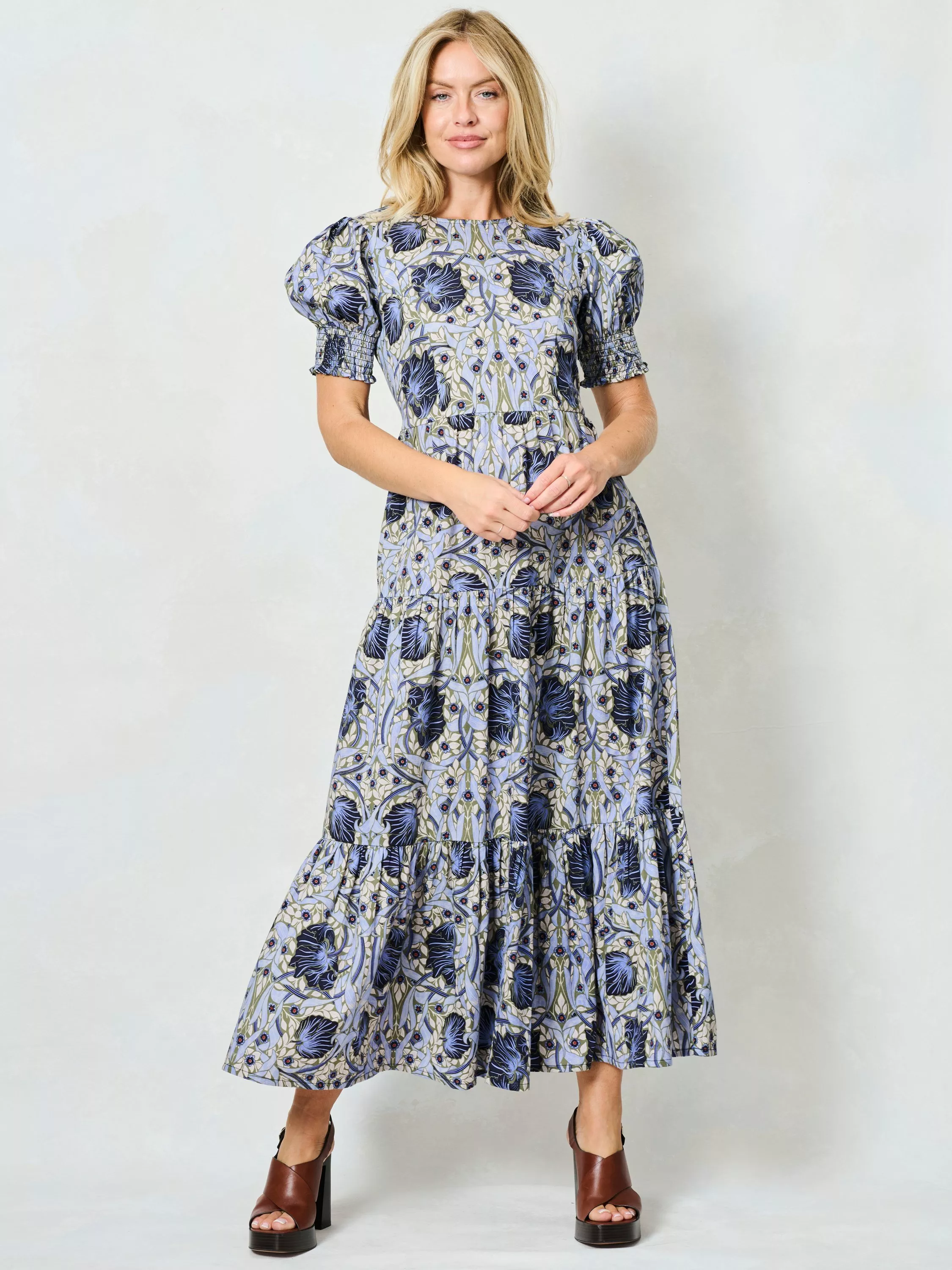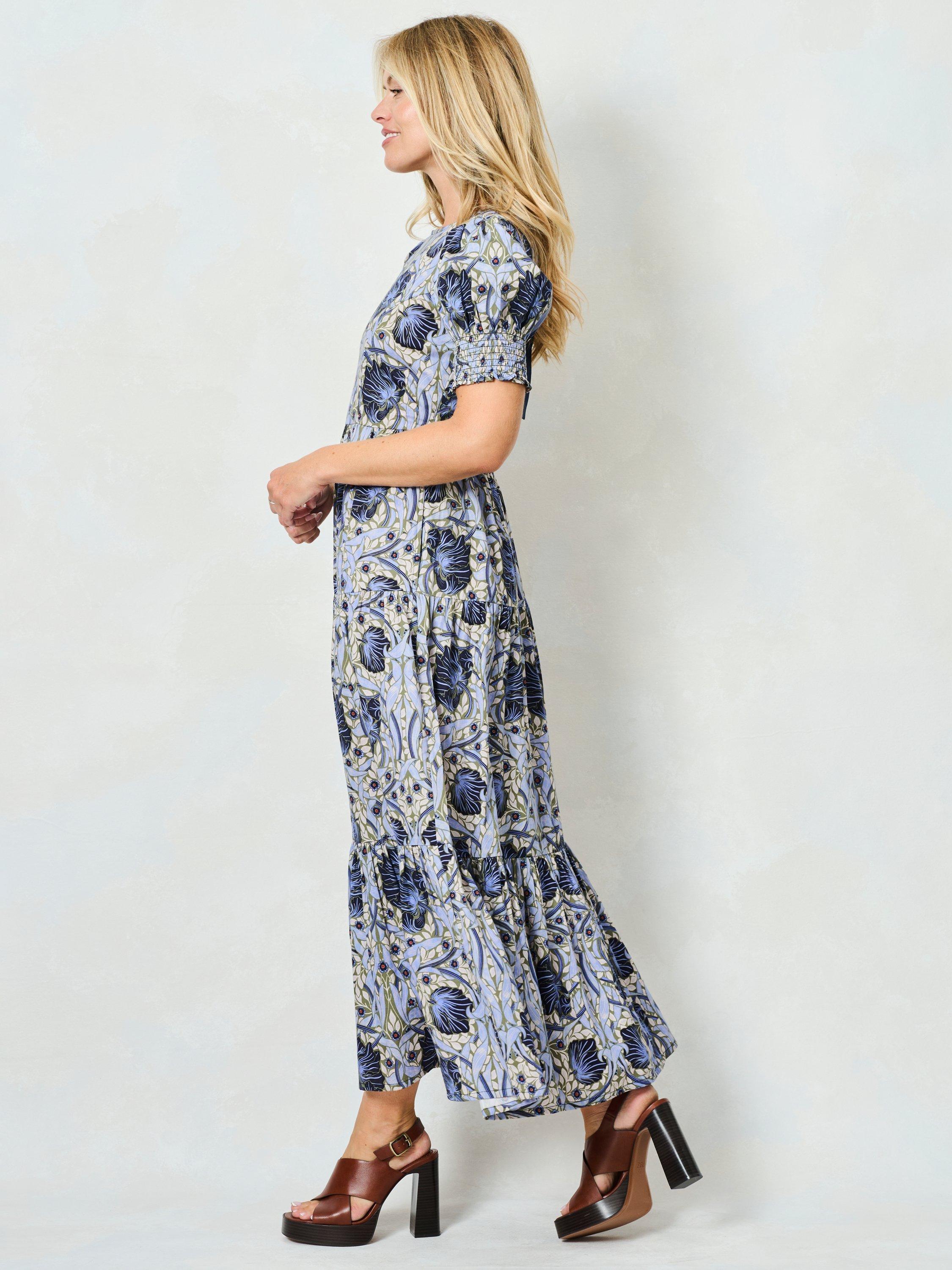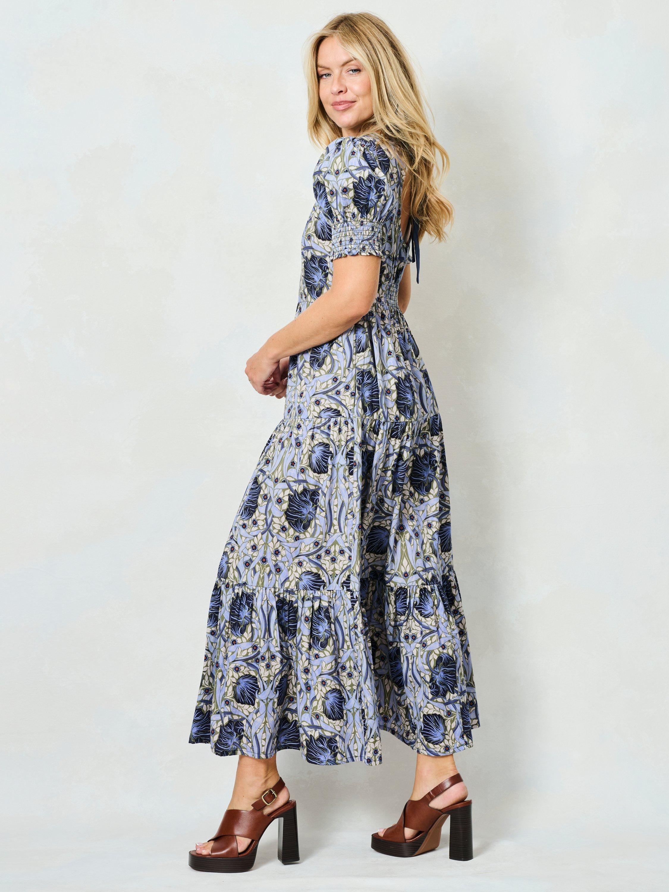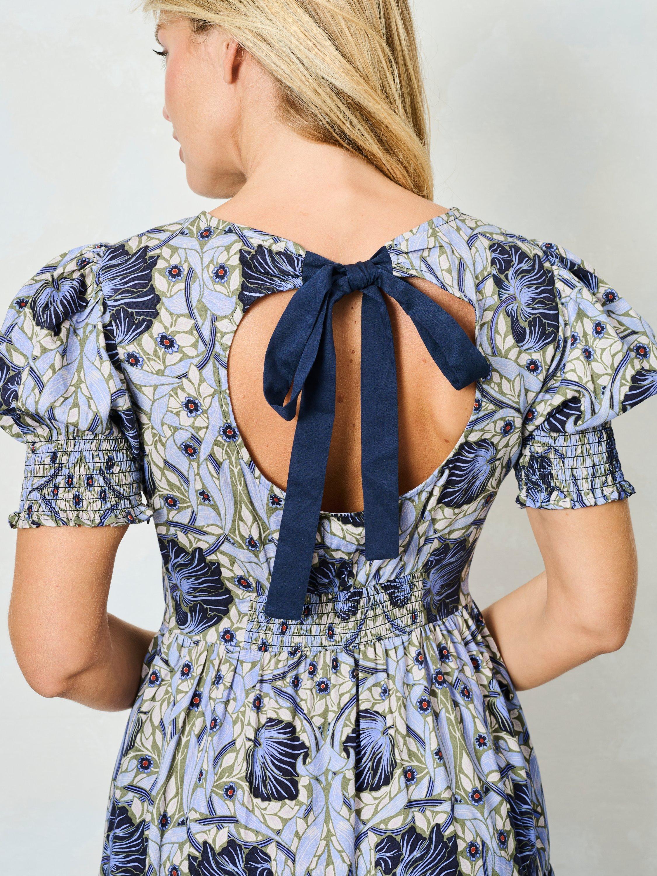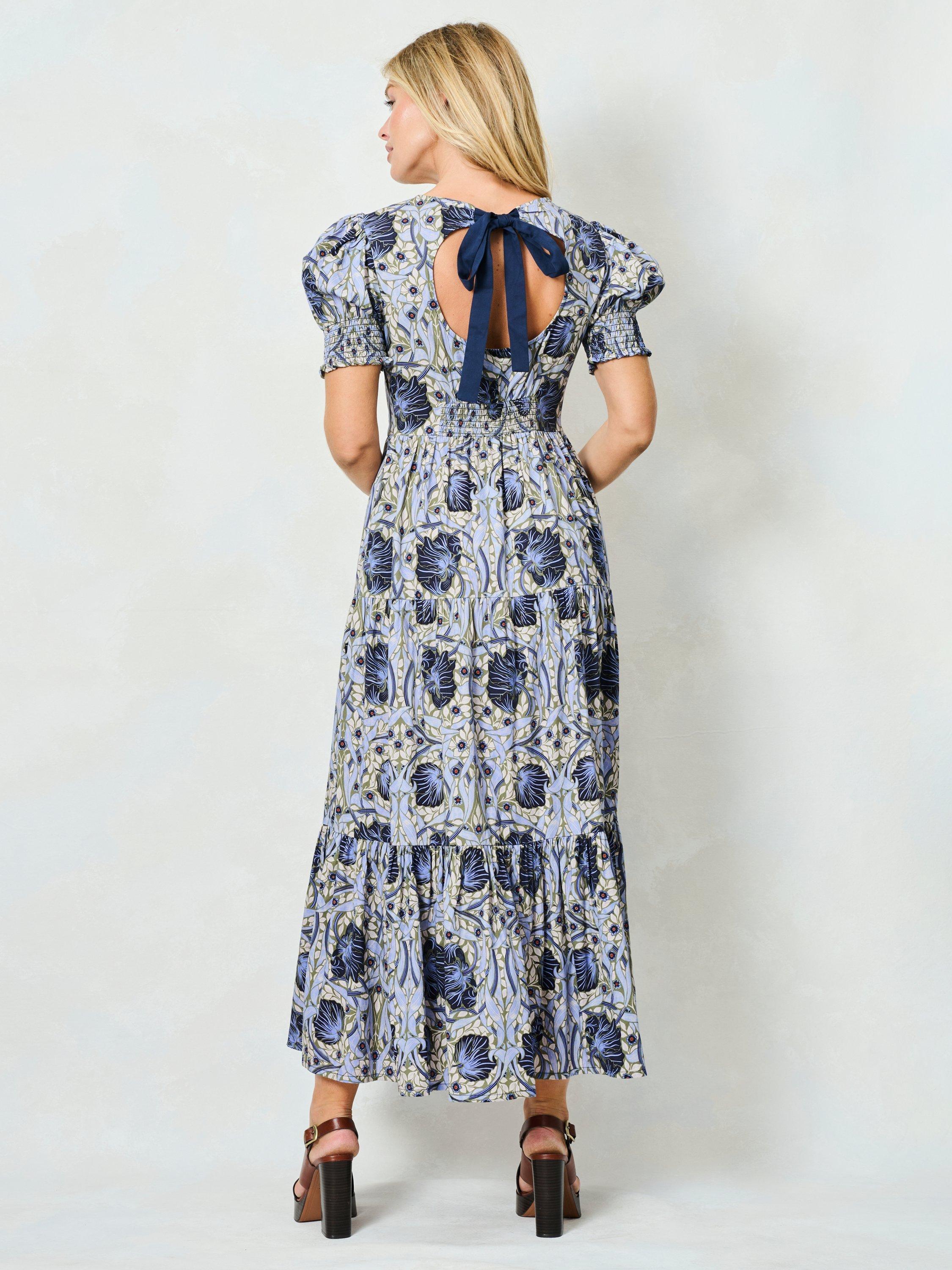 Hope & Ivyx The William Morris Society The Lilliana Floral Tie Back Dress, Pale Blue/Multi
