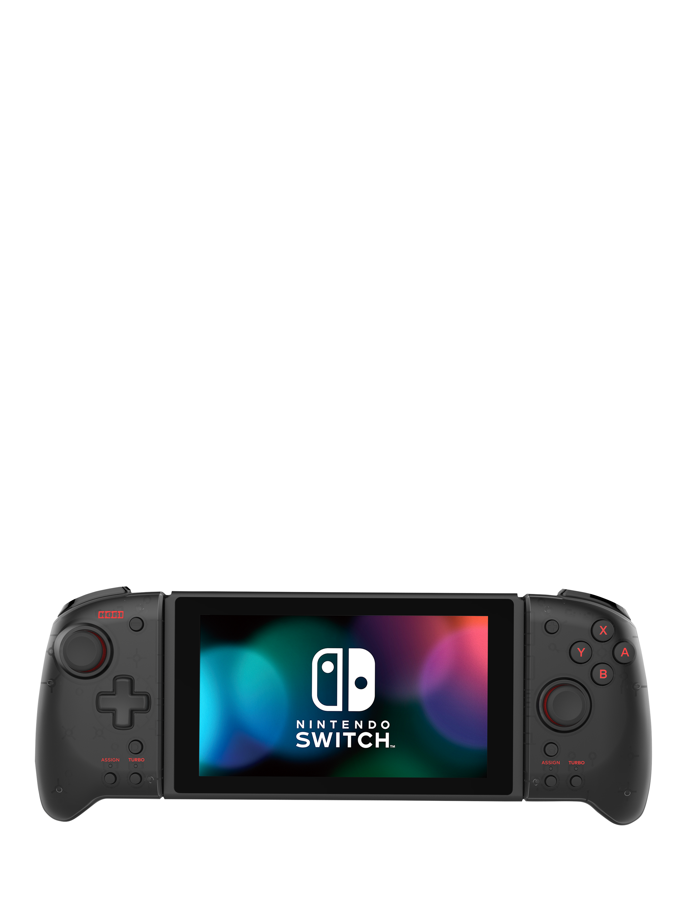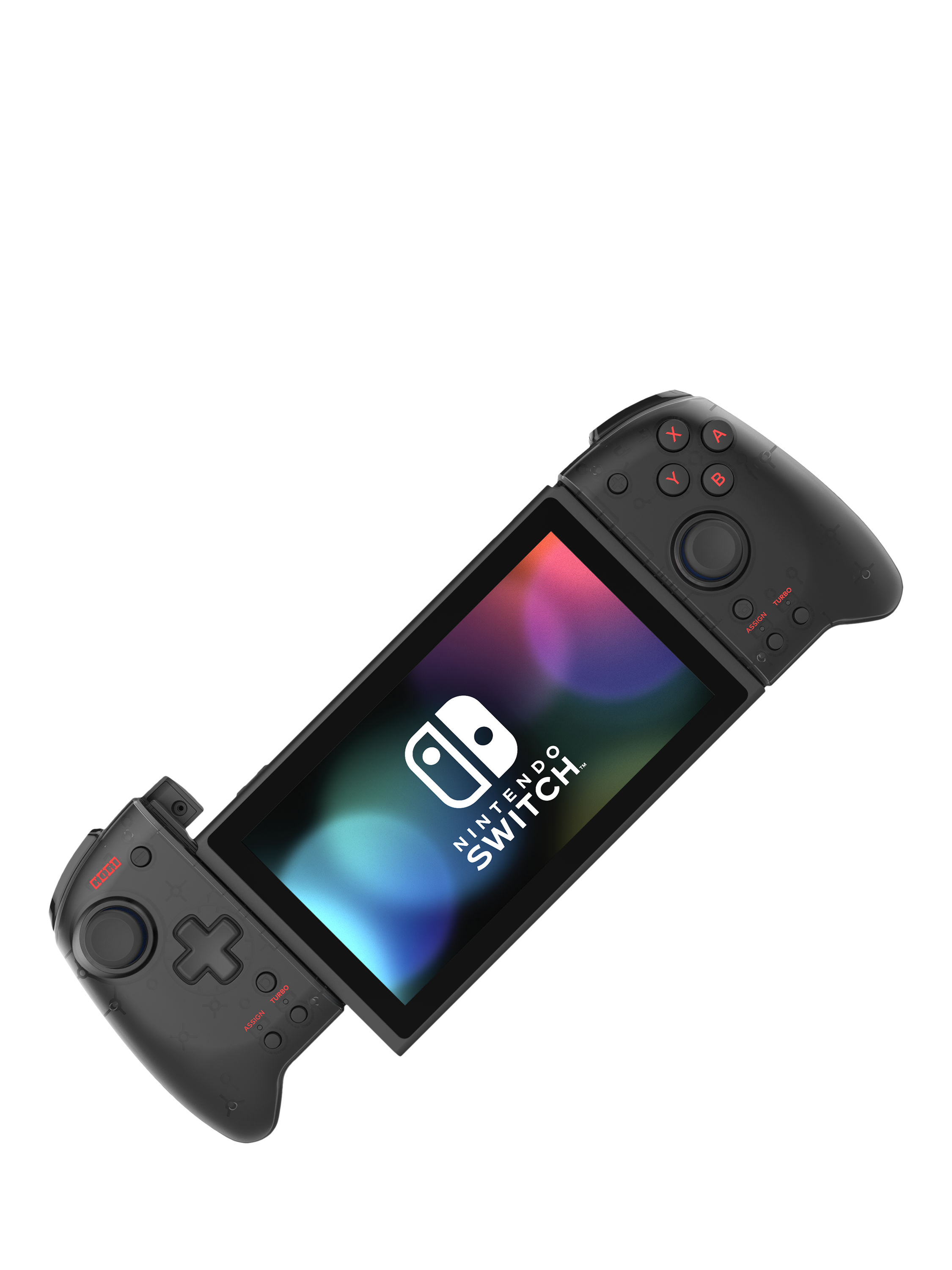 A revolutionary way to play your Nintendo Switch! Enjoy the full-size controller experience in handheld mode with the HORI Split Pad Pro. Featuring full-size analog sticks, precision D-pad, and large shoulder buttons designed for comfort and accuracy, even for marathon gaming sessions. Advanced features include assignable rear triggers, Turbo functionality, and more. Perfect for high-pace action titles and many other Nintendo Switch titles.