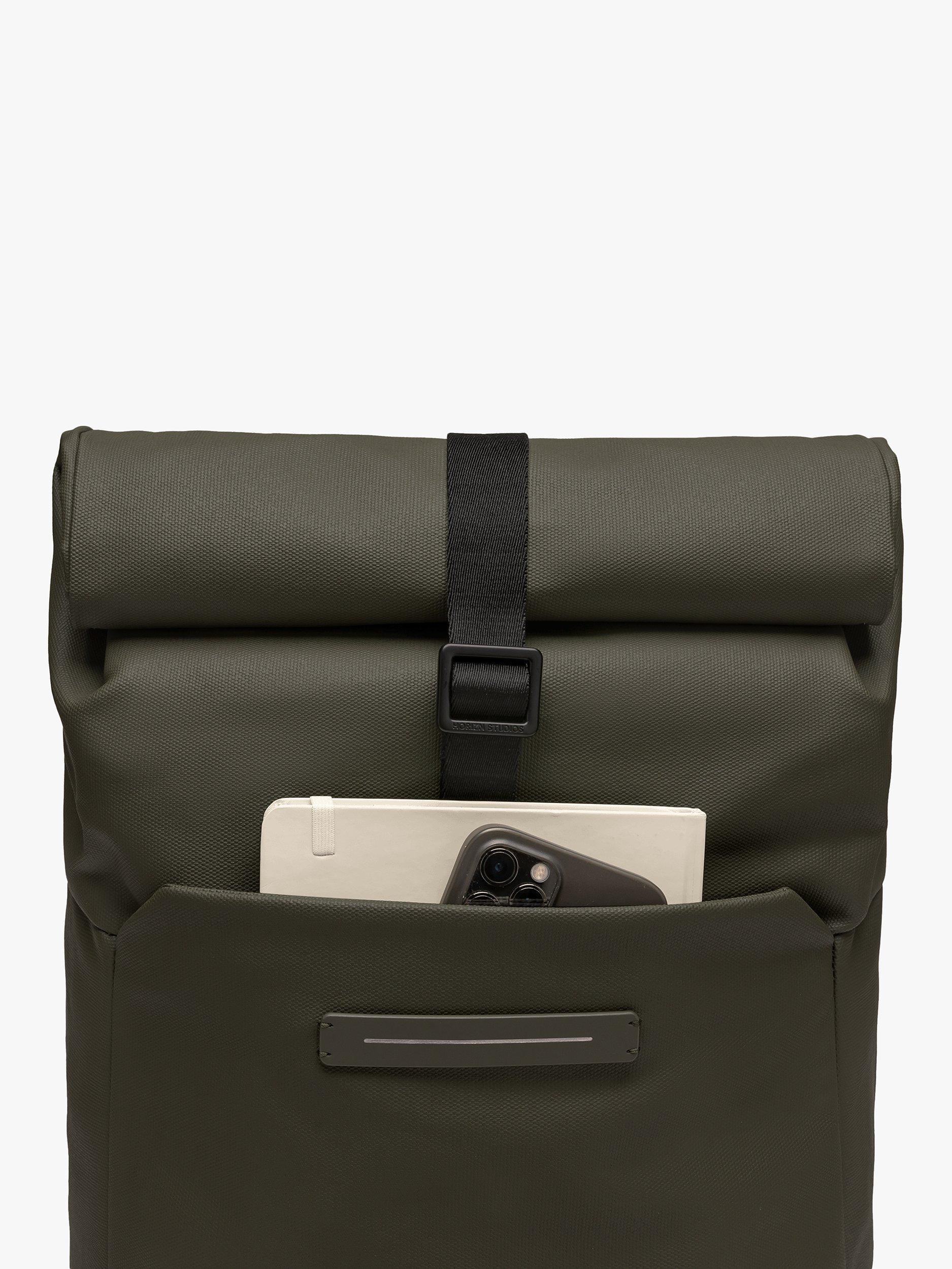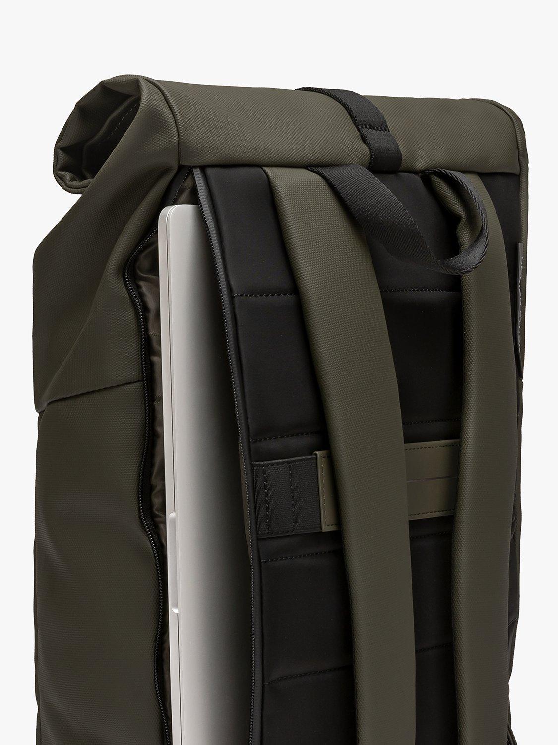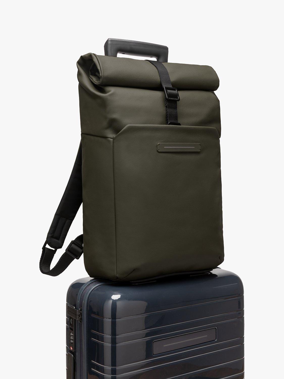 Its adjustable closure system ensures a secure seal while providing quick access to your essentials when you need them. Its water and heat-resistant coated cotton canvas keeps your belongings safe come rain or shine, and a small zip pocket inside the main compartment keeps your small valuables protected. It’s the evolution of Horizn Studios' signature SoFo Rolltop, featuring an easy-access front pocket and 16-inch laptop compartment. The main compartment is expandable up to 28 litres with an adjustable metal hook closure, while the two shoulder straps, grab handle and strap for suitcase handles make for versatile carrying.