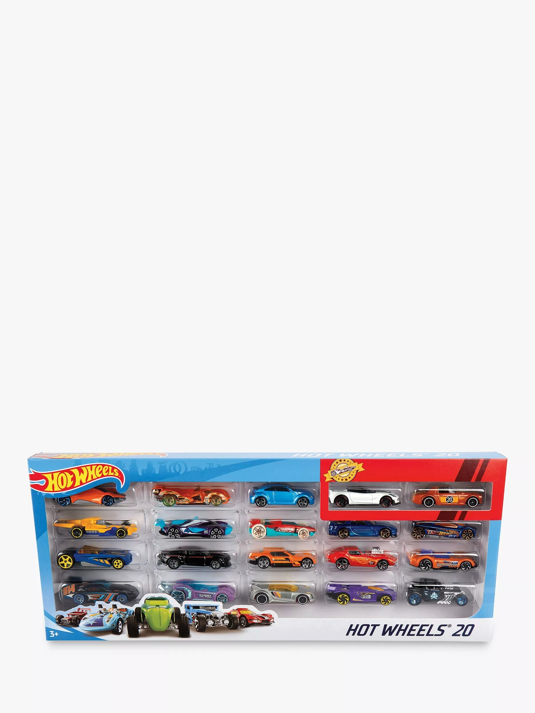 The Hot Wheels 20 Gift Pack delivers a trunkload of cool 1:16 scale vehicles in one open window package that displays the entire set!