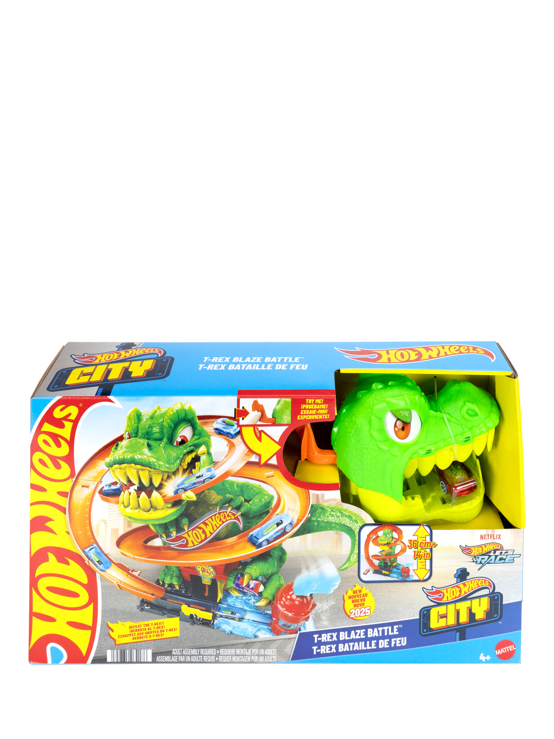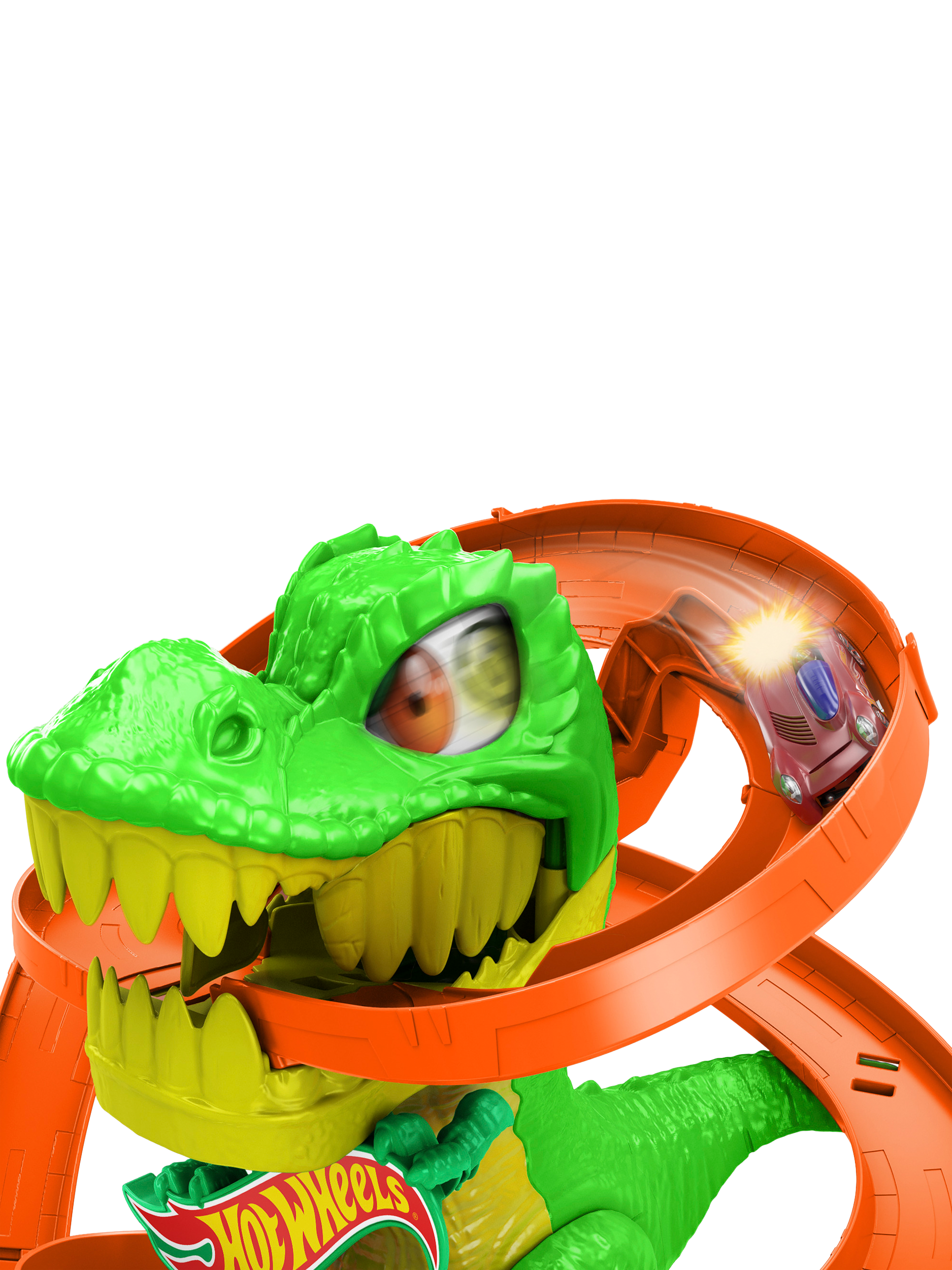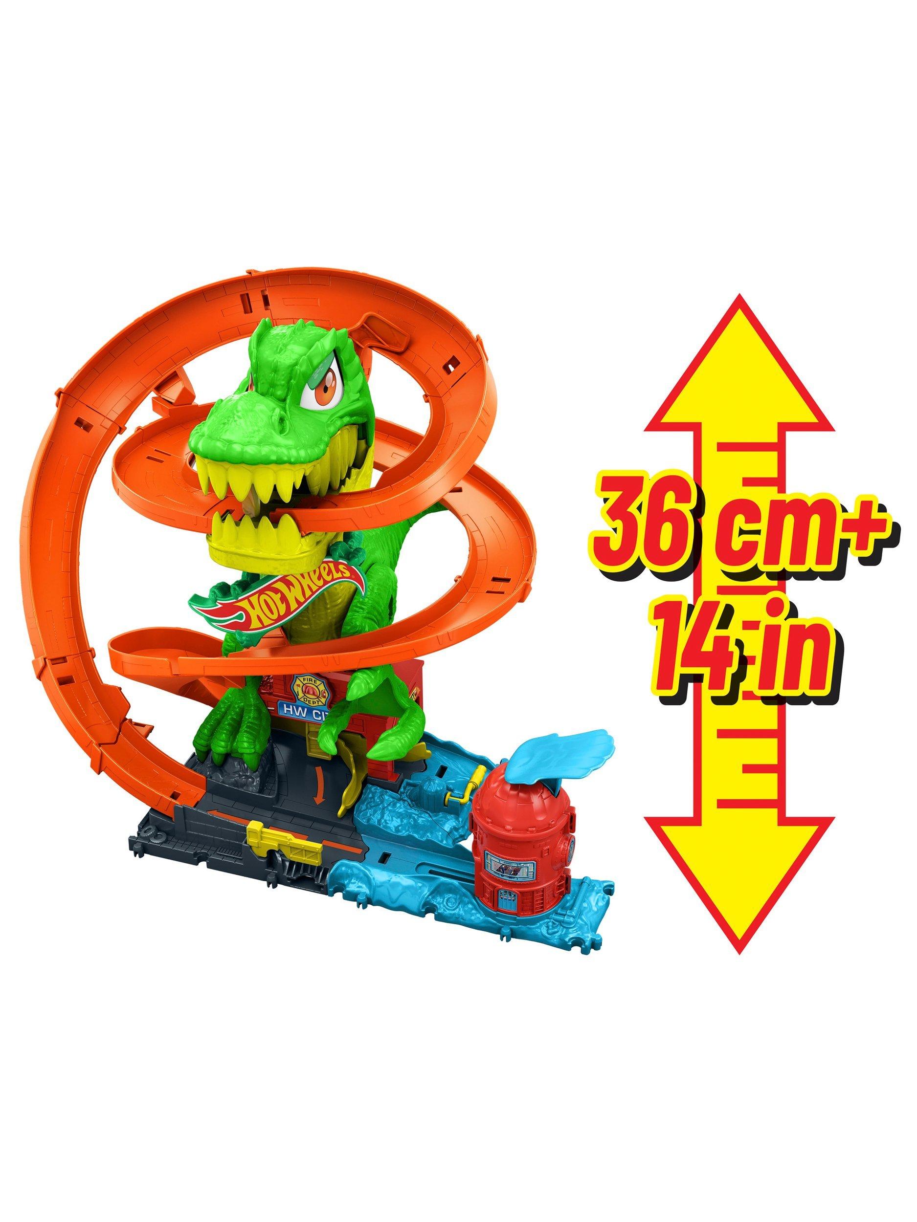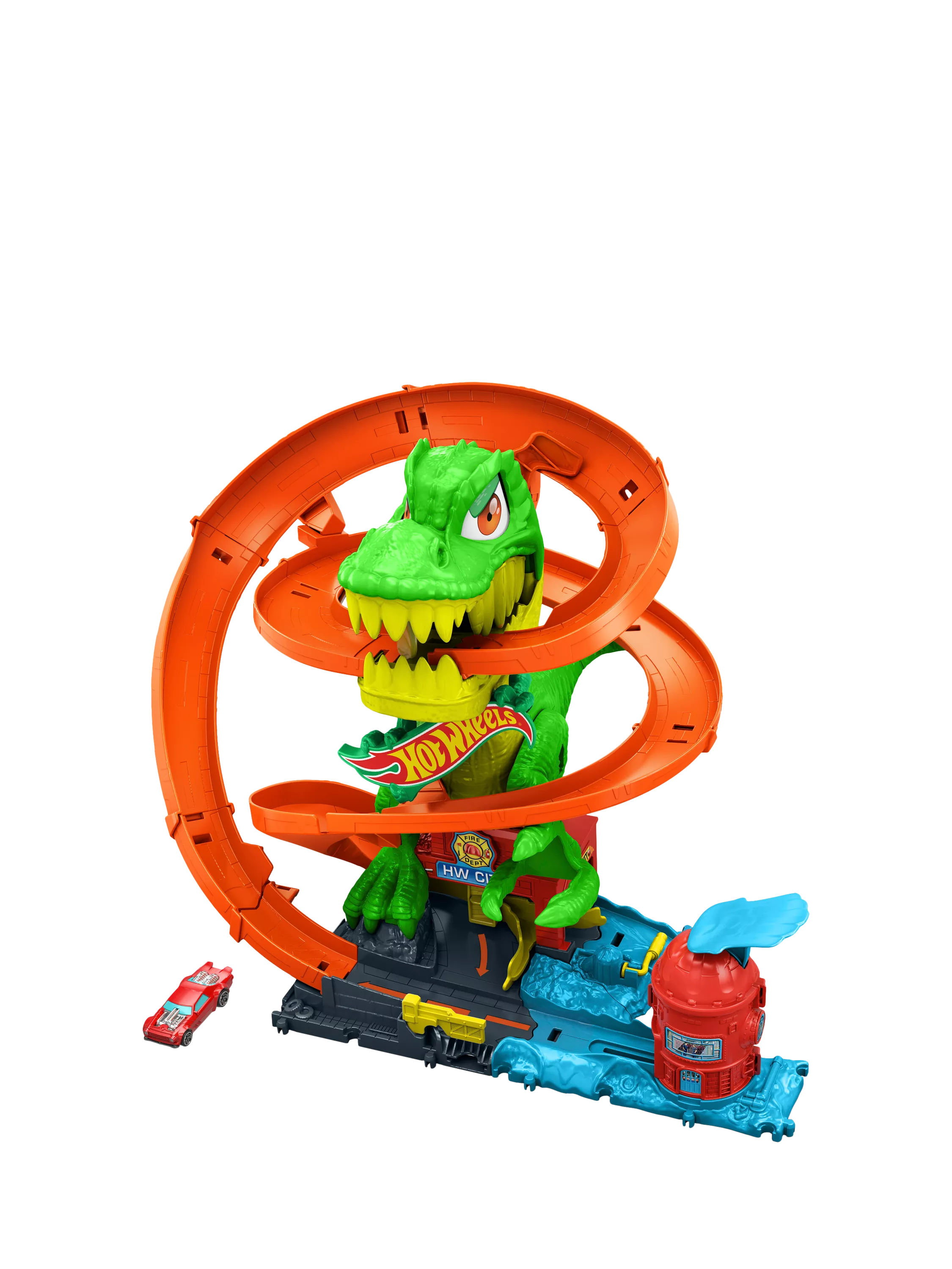 Use epic racing skills to protect Hot Wheels City from a dynamic T-Rex that wants to eat all the cars!