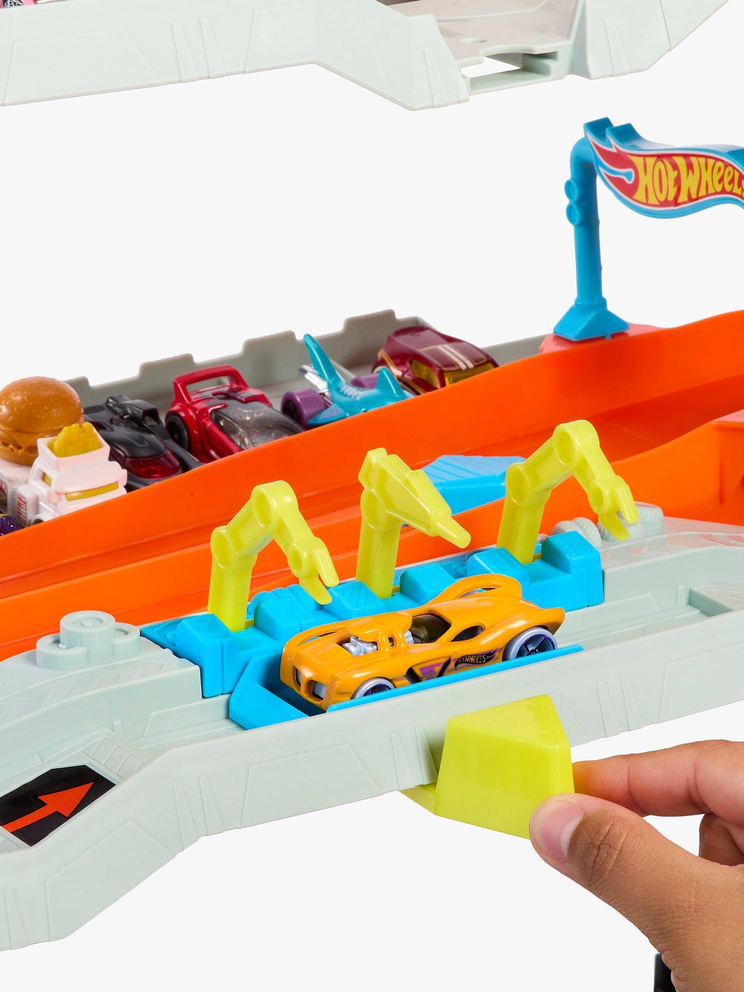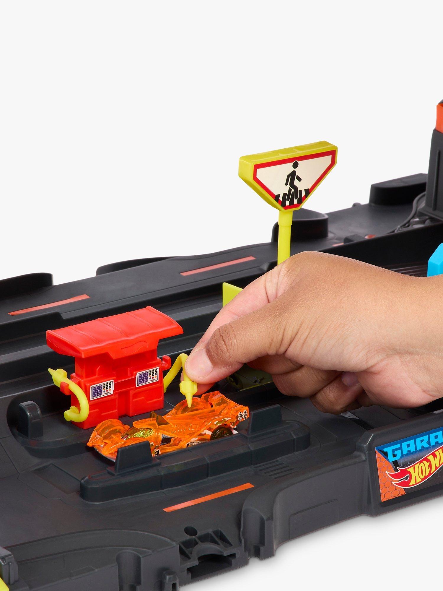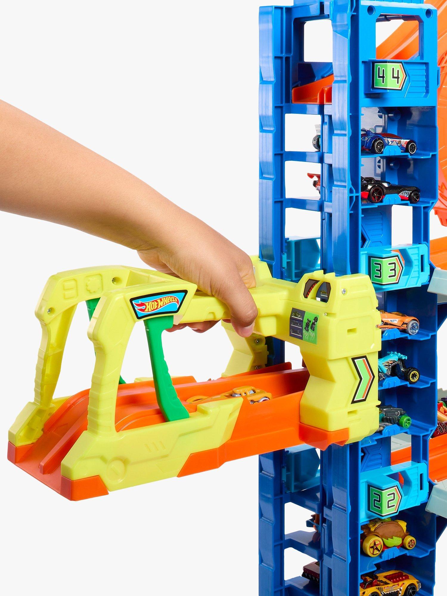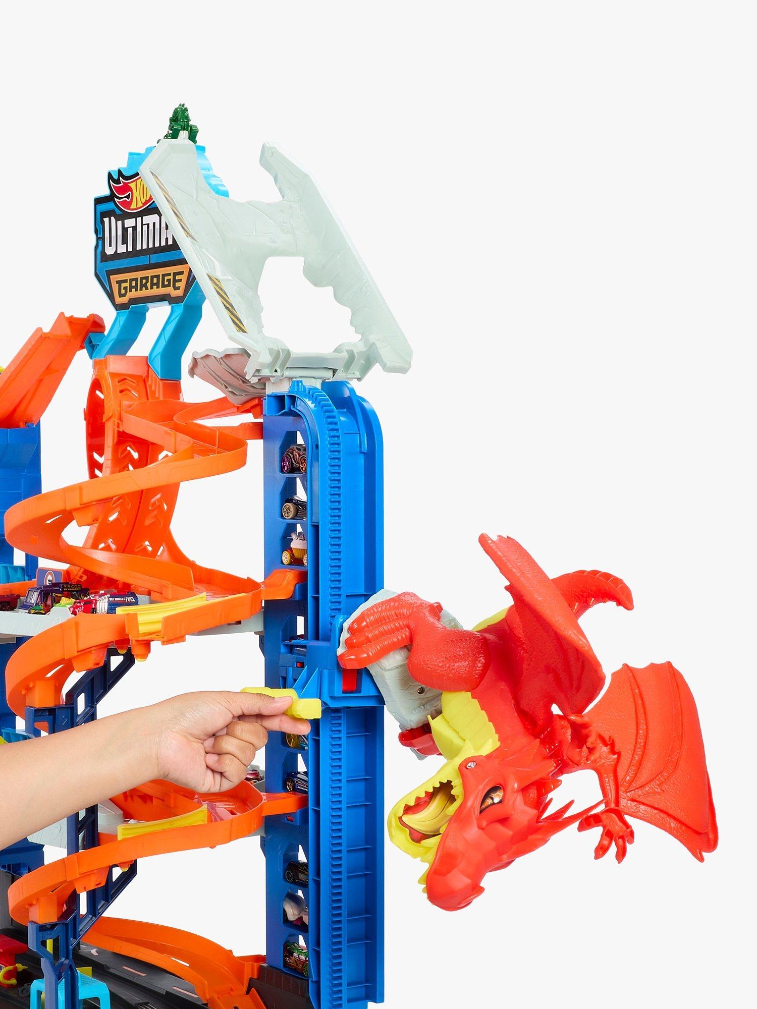 Explore all four levels of racing, stunting and storytelling in the Hot Wheels City Ultimate Garage. Each level inspires track-play adventures including side-by-side racing, loop stunts and an epic battle with a car-eating dragon.