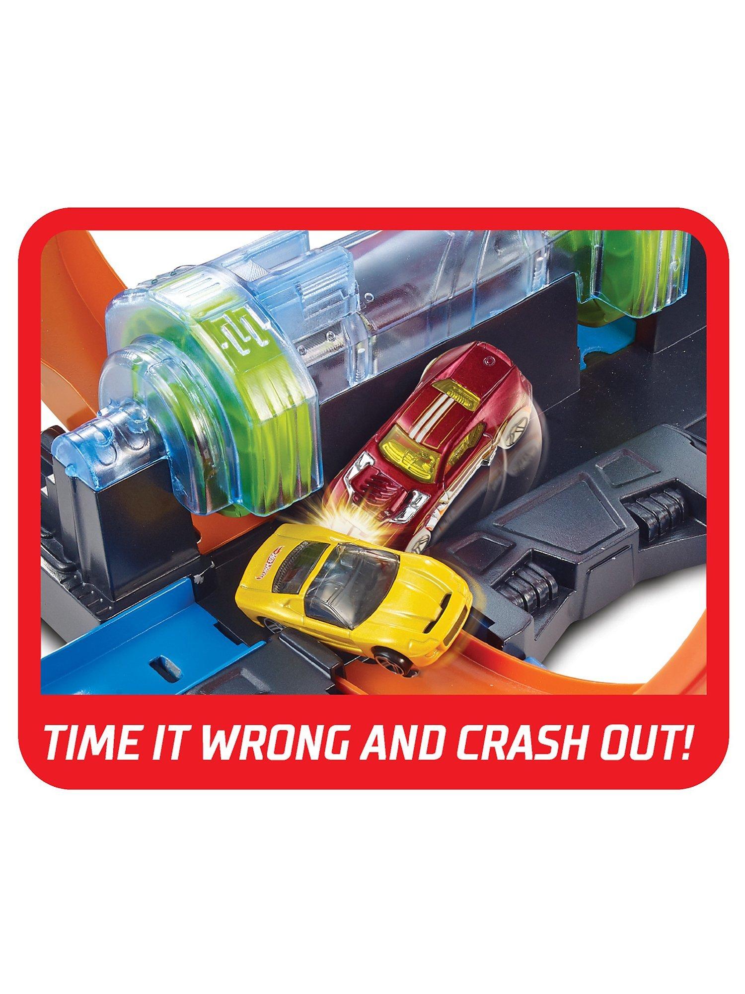 Launch into action as you send your cars crashing around the corkscrew track at dizzying speeds! Smash through the triple loop as you try to launch your car without crashing it. Test your skills by timing it to perfection and avoiding the 3 crash zones!