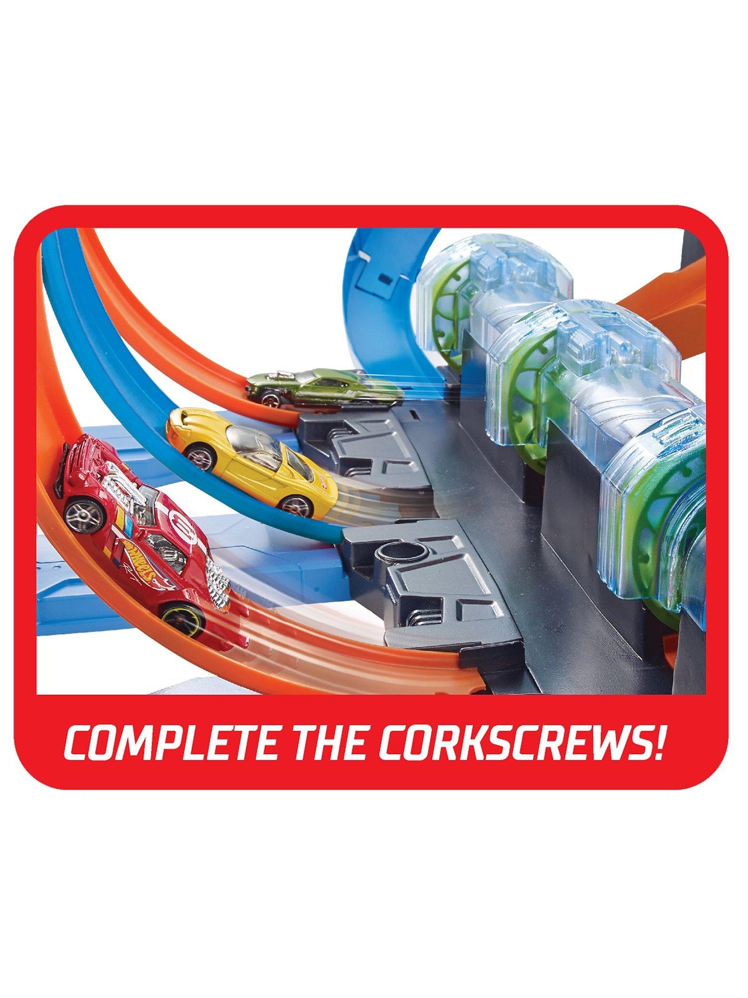 Get ready for crazy car tricks and stunts with the Hot Wheels Corkscrew Crash!
