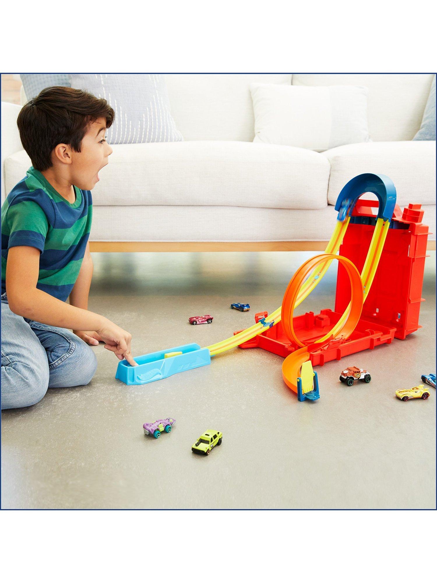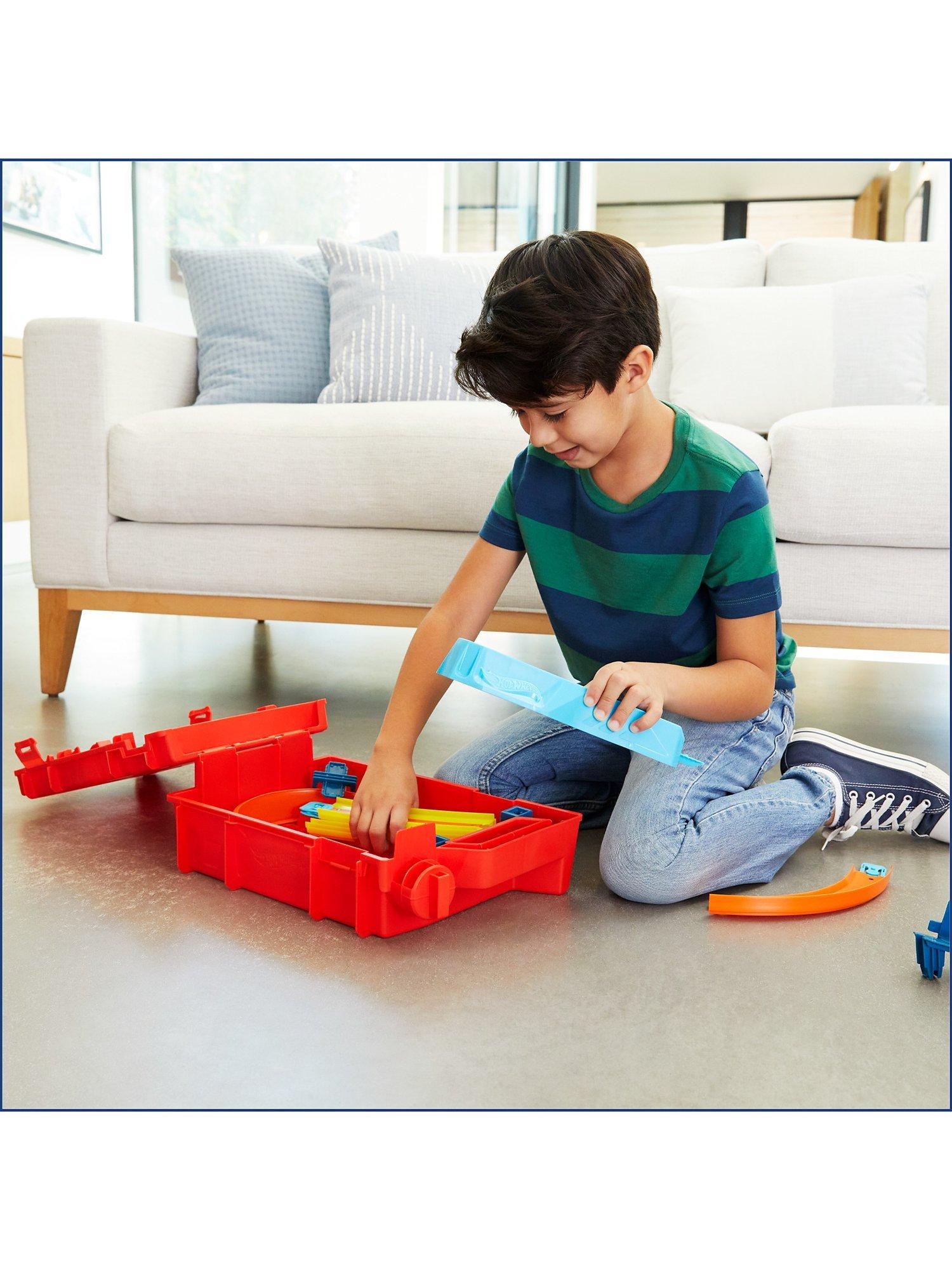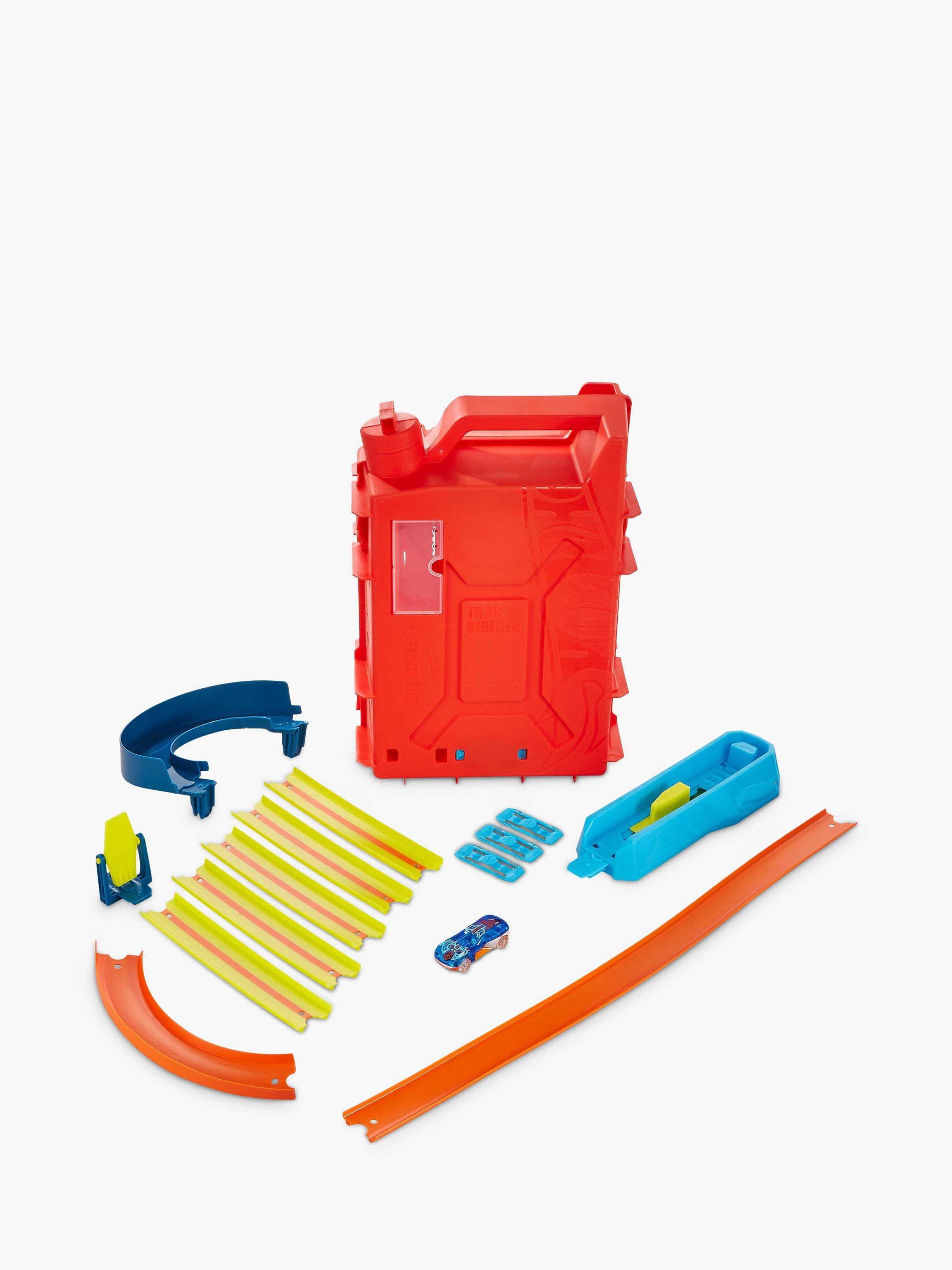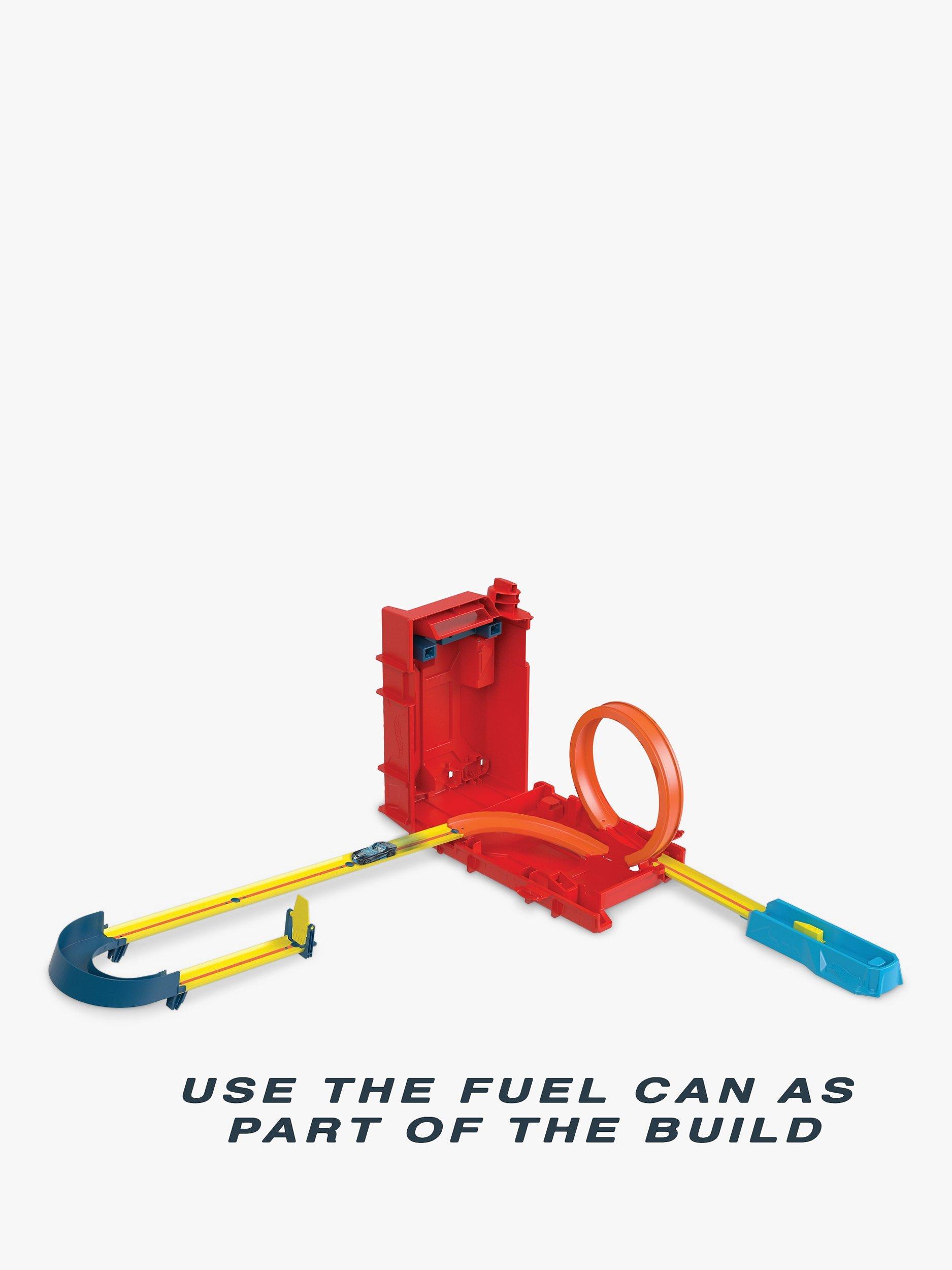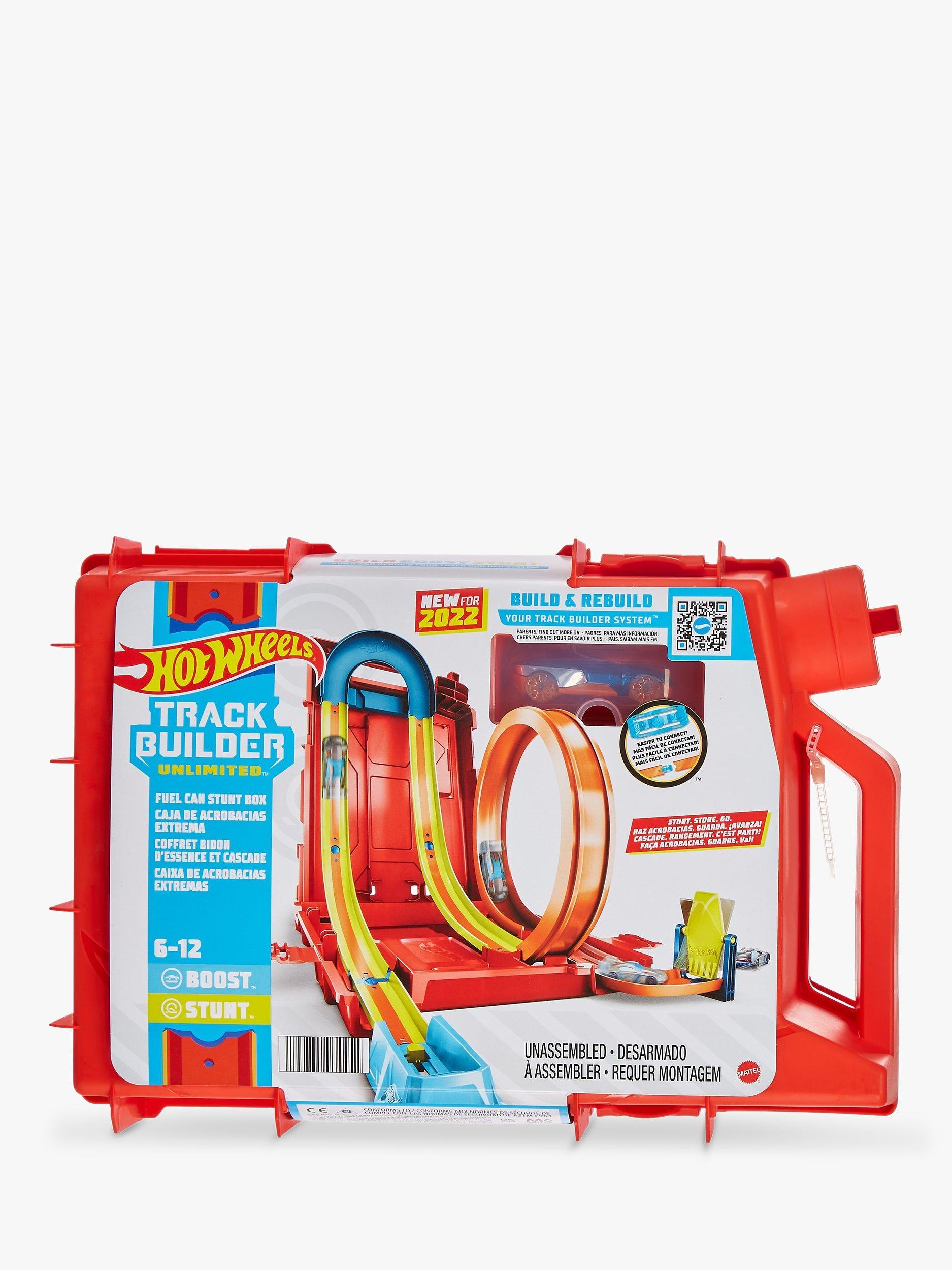 The Hot Wheels Track Builder Unlimited Fuel Can Stunt Box is packed with all the ingredients to make an awesome course for racing and stunting!