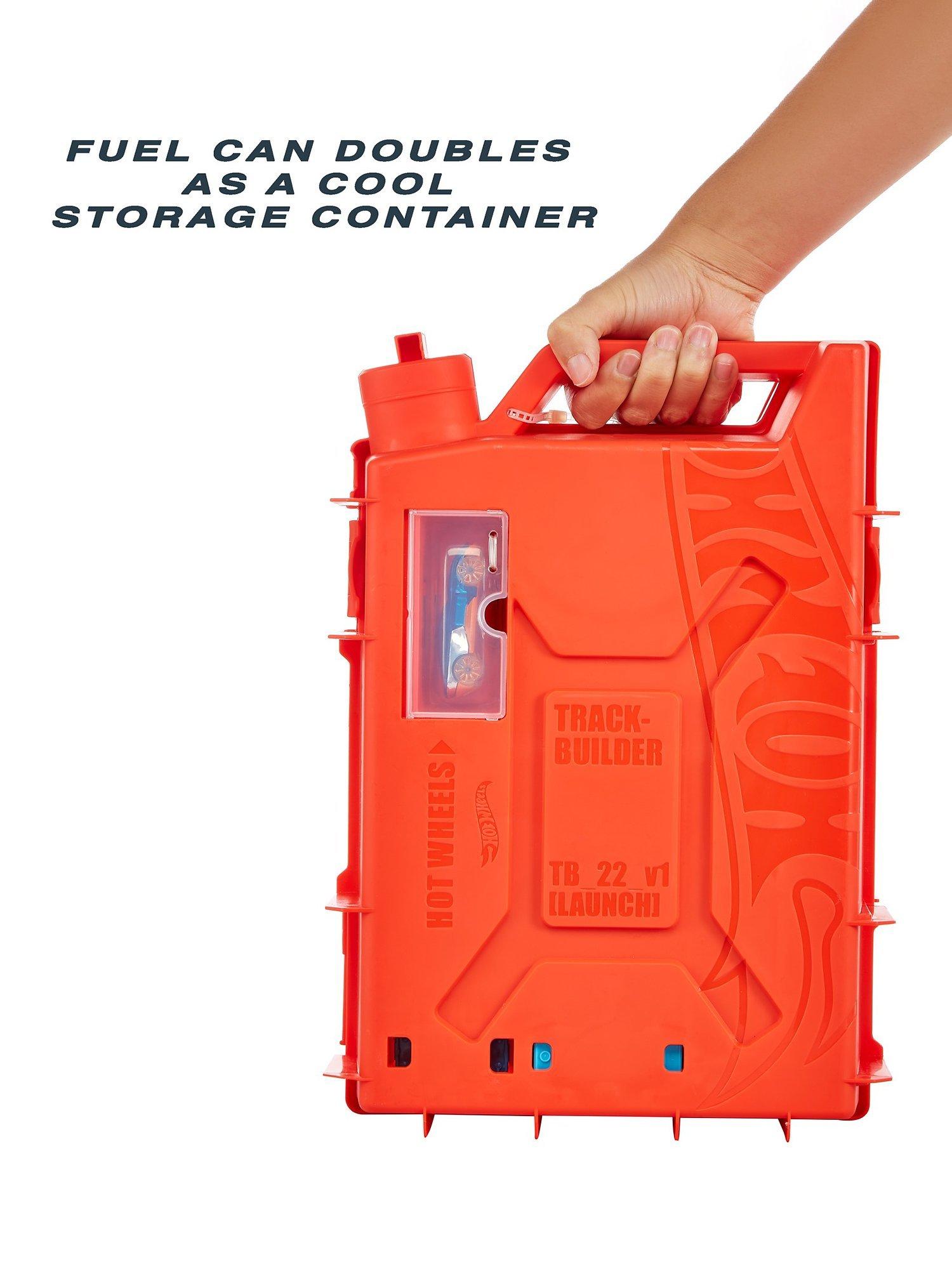 The container that's shaped like a gas can is packed with track pieces and accessories to build a course of a kid's own design. The case itself transforms into part of the playset for more stunting and racing options! Each piece is compatible with other Hot Wheels track sets so that kids can continue to build out the track system of their dreams.