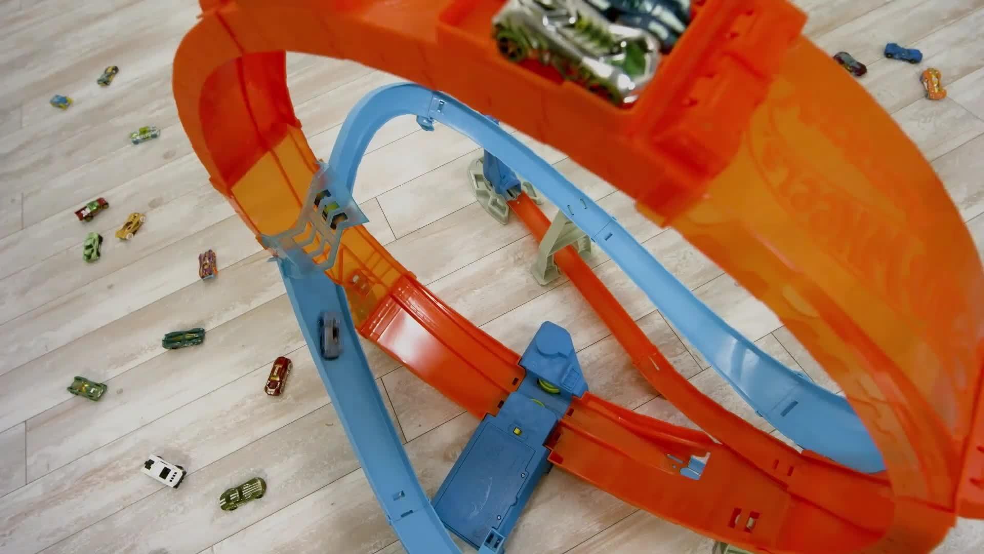The Hot Wheels® Massive Loop Mayhem™ track set will definitely make kids loopy from the thrilling excitement!