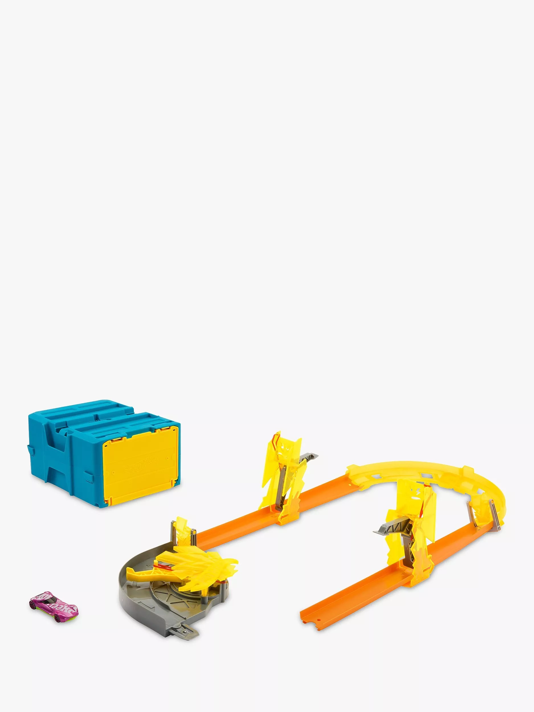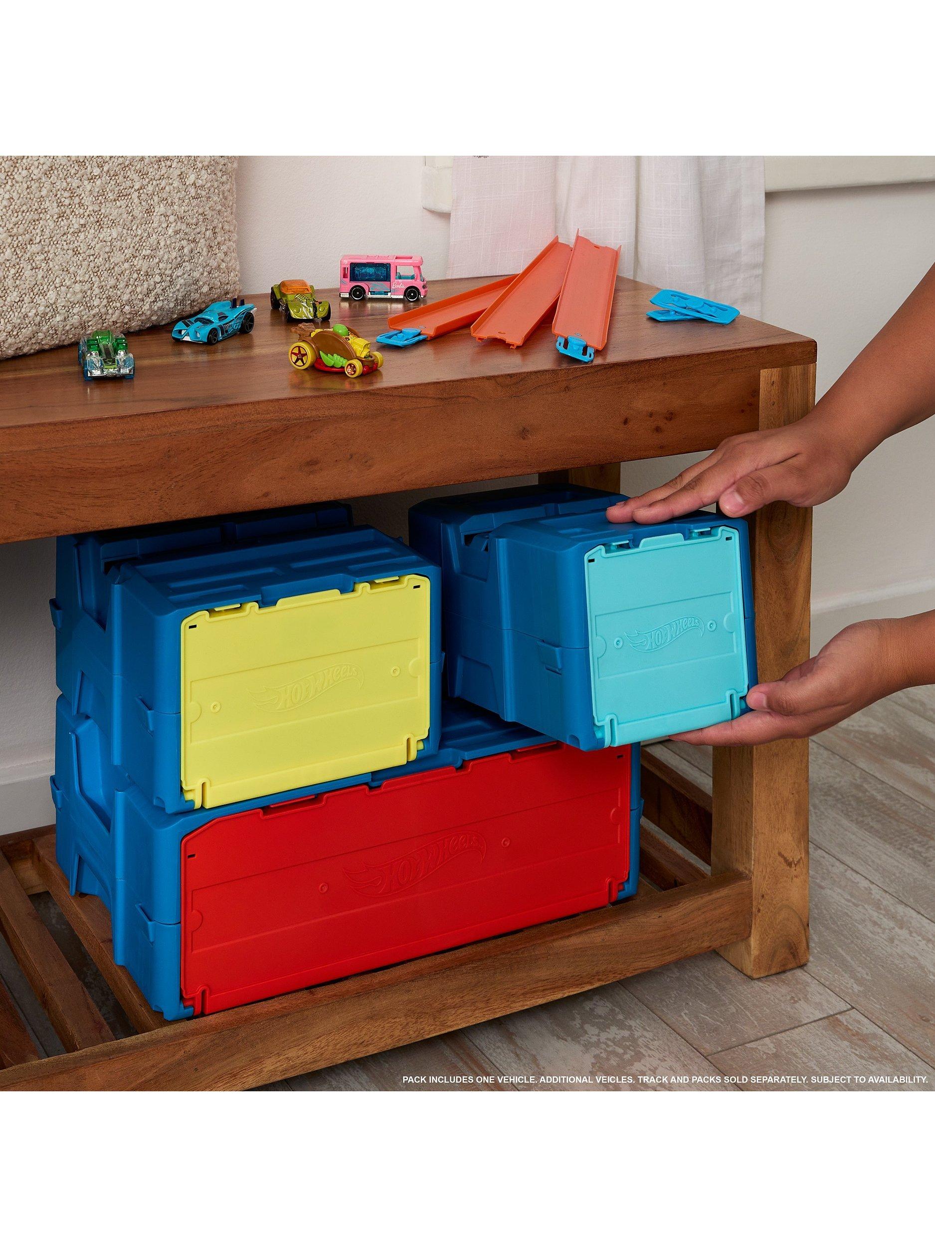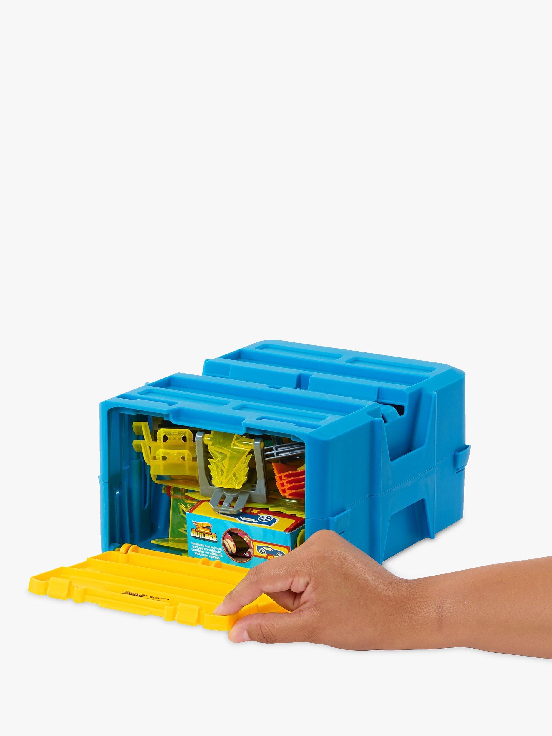 It all comes in a modular container that can be incorporated into any build and stores the track and car between builds. Each track piece is compatible with other Hot Wheels track sets.