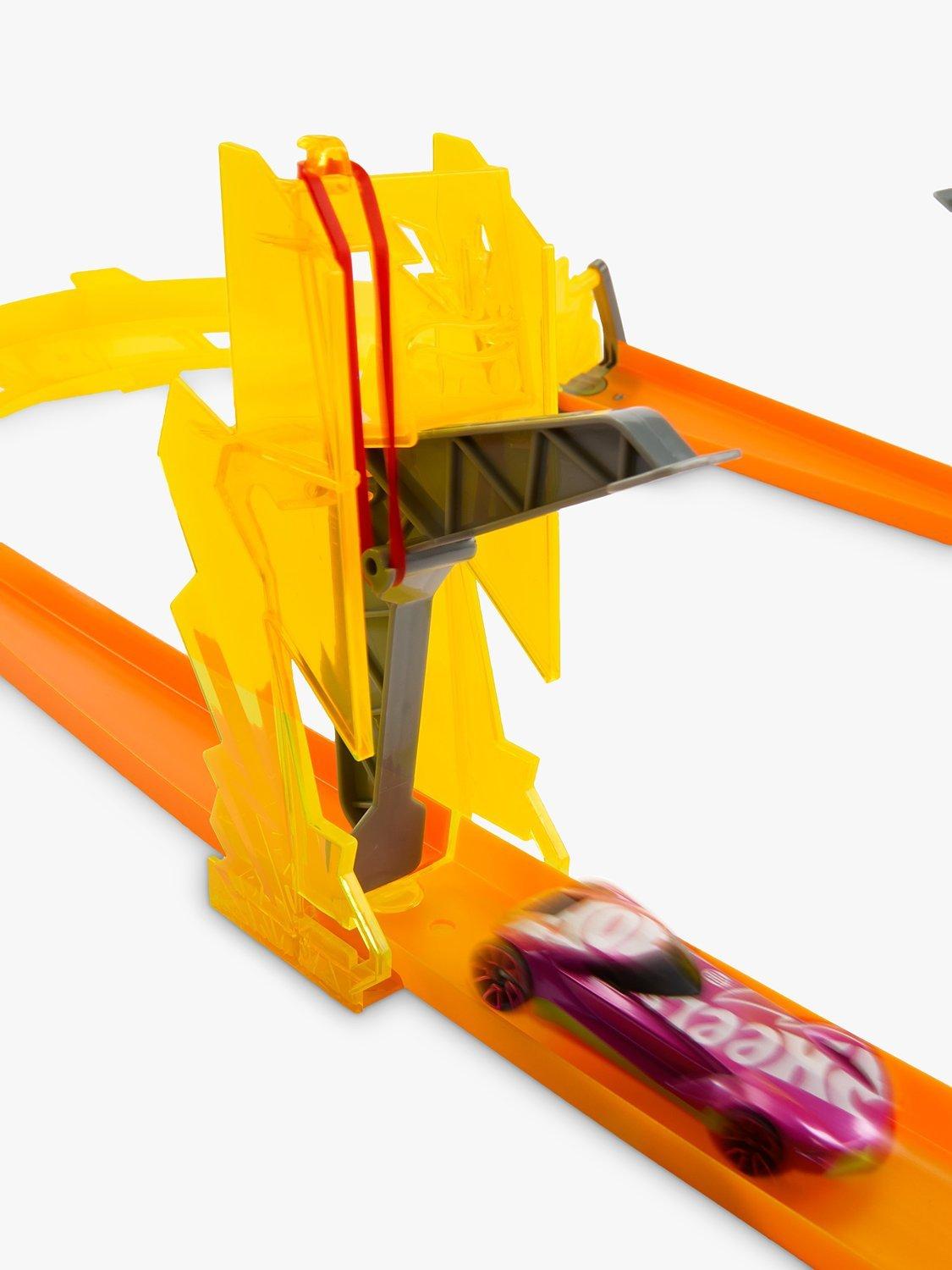 The pack includes lightning-bolt kickers, curve kickers and flippers as well as straight and curved track pieces plus a Hot Wheels car.