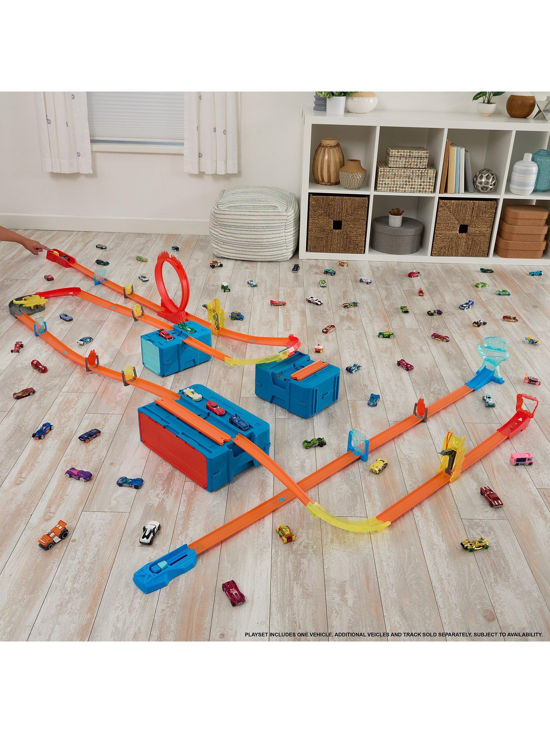 The Hot Wheels Lightning Boost Pack delivers the essentials for a high-speed track build in a convenient storage box.