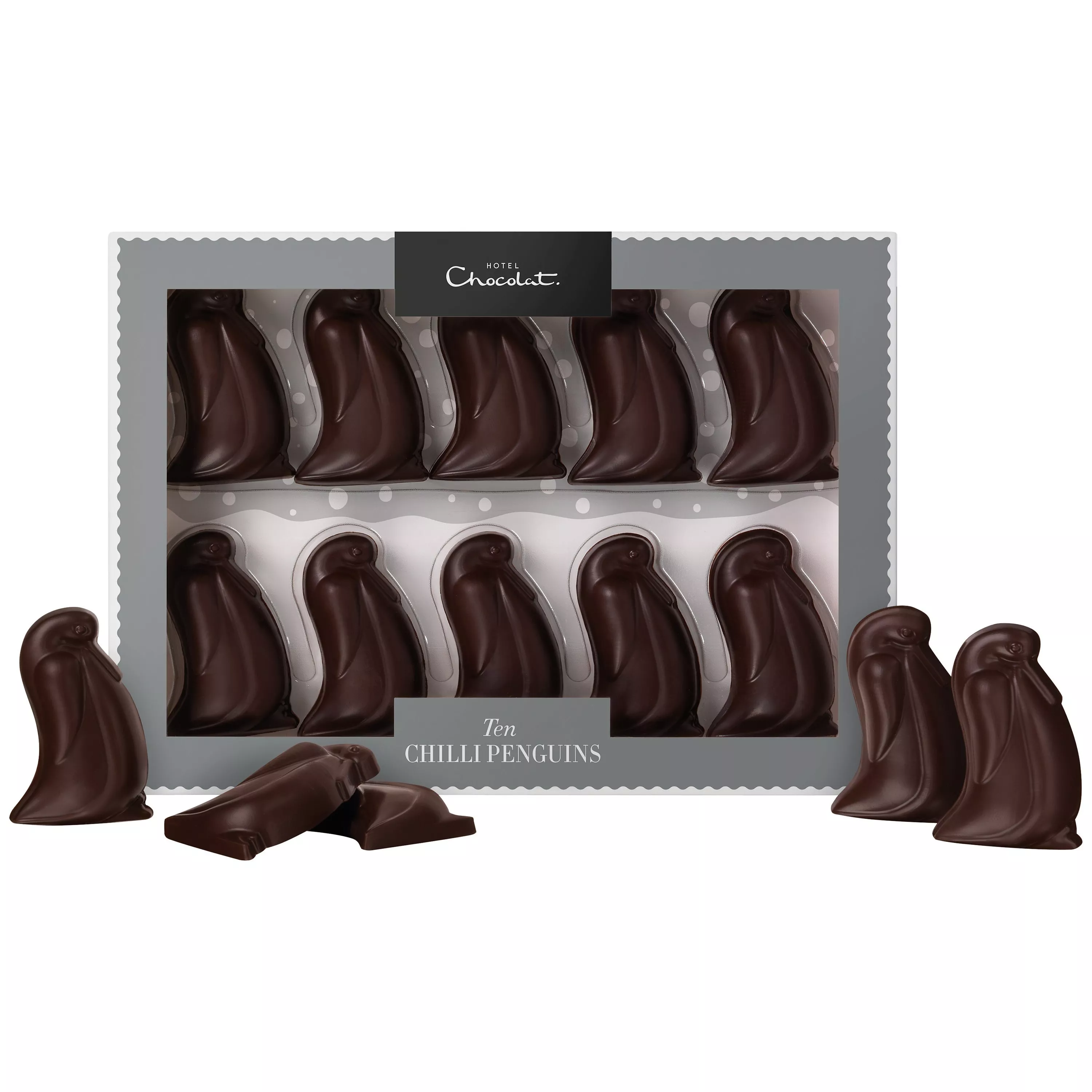 For when the nights begin to get a little colder, these 70% dark chocolate penguins have their own winter warmth! Chilli powder infused with this chocolate gives the penguins a delicious kick to warm your cockles at Christmastime.