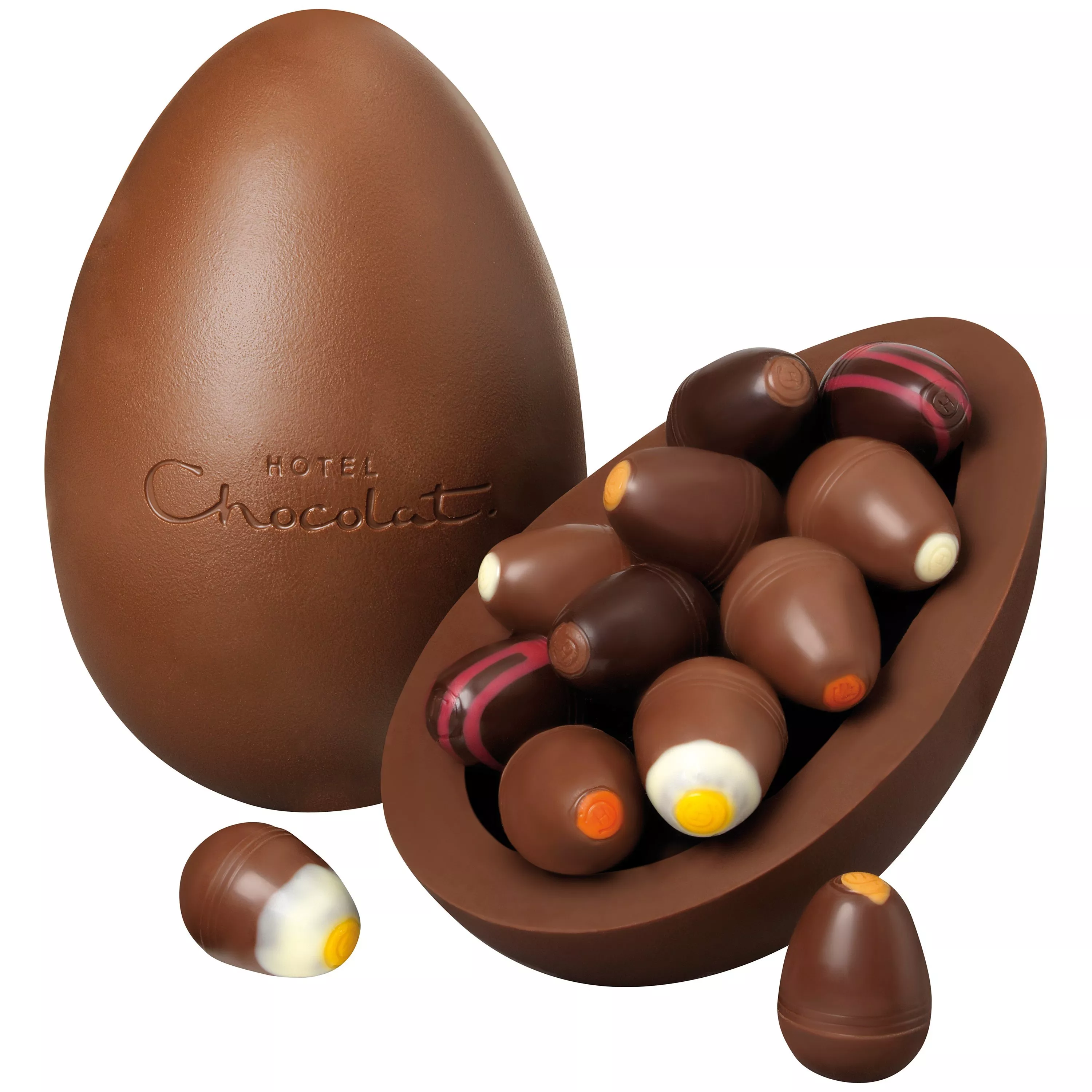 When Hotel Chocolat first started making Easter eggs 15 years ago, experts told them to make the eggs as thin as possible. They did the opposite, making ridiculously thick eggshells to hide their chocolates in.