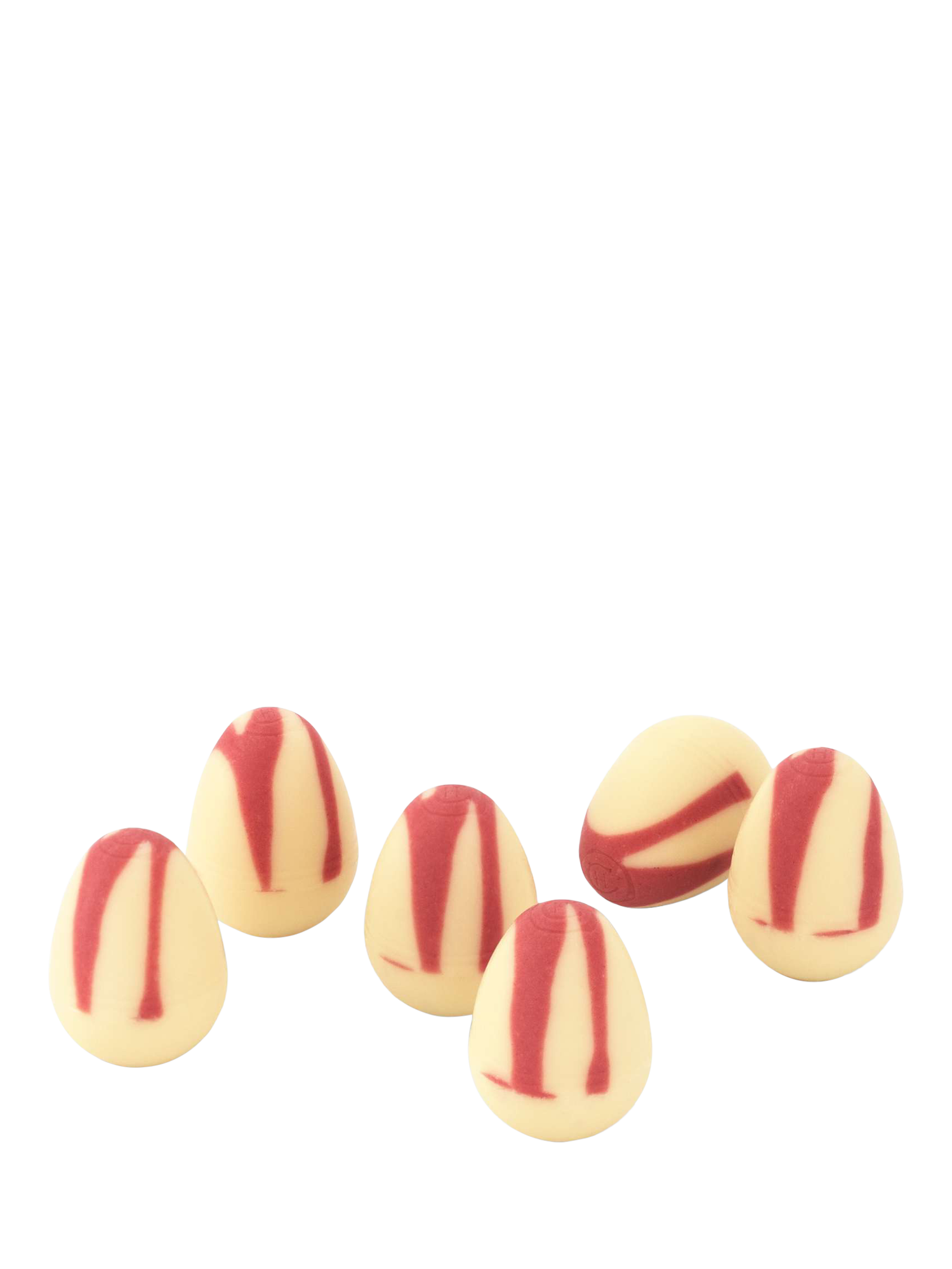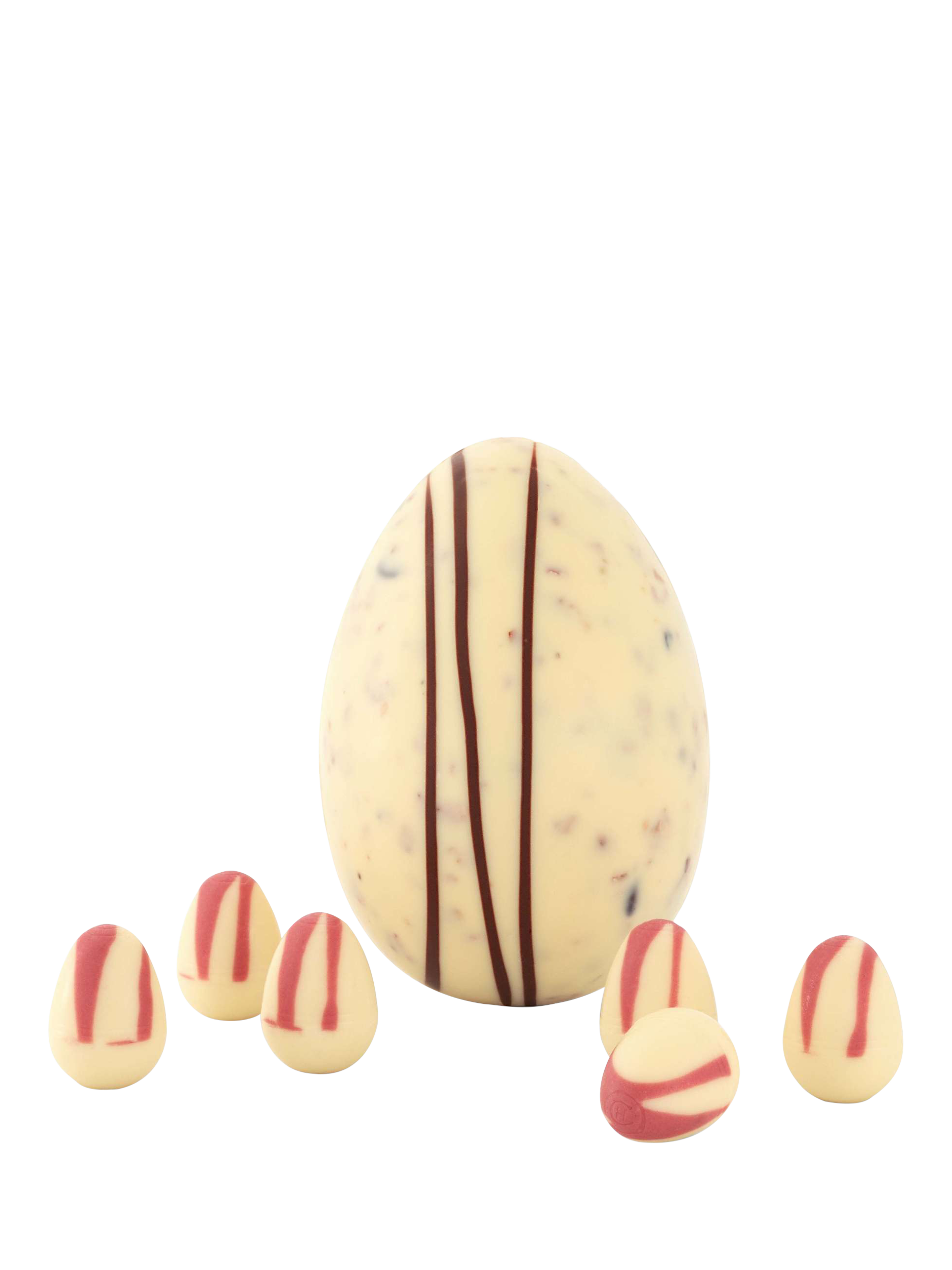 A crunchy, creamy 36% white chocolate egg. Packed with granola and coupled with six Strawberries & Cream tiddly eggs. Each tiddly egg is full of fresh pressed strawberries and real whipping cream, encased in even more white chocolate.