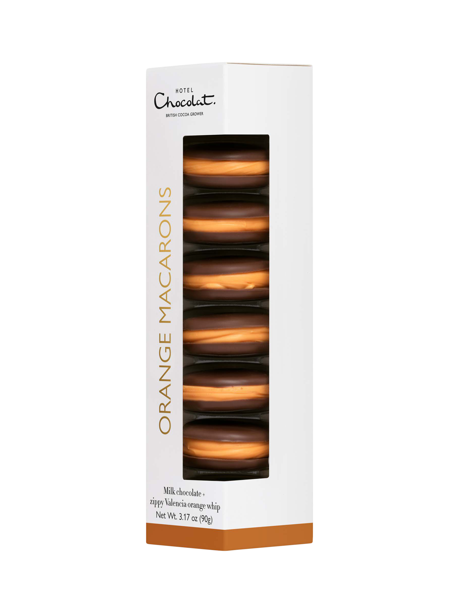 Savour the classic pairing of orange and chocolate expressed as Hotel Chocolat’s interpretation of the elegant French patisserie - the macaron.
