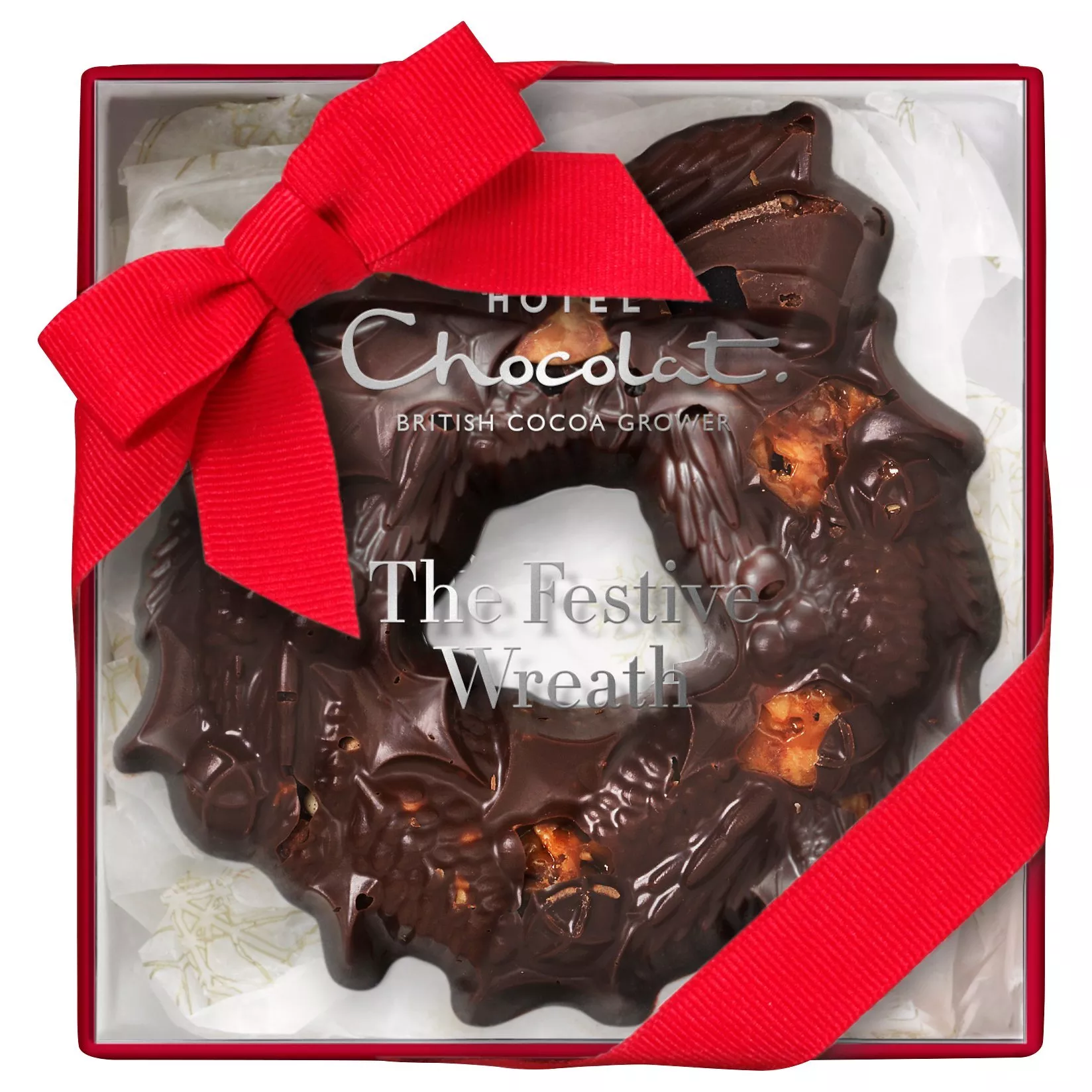 An ode to a Christmas tradition, in mellow, yet deep 50% milk chocolate. Instead of twigs and berries, Hotel Chocolat has loaded their wreath with nibbly cookies and caramelised almond Florentine squares. This one is small enough for a stocking filler, or it makes a chunky, munchy gift for a friend.