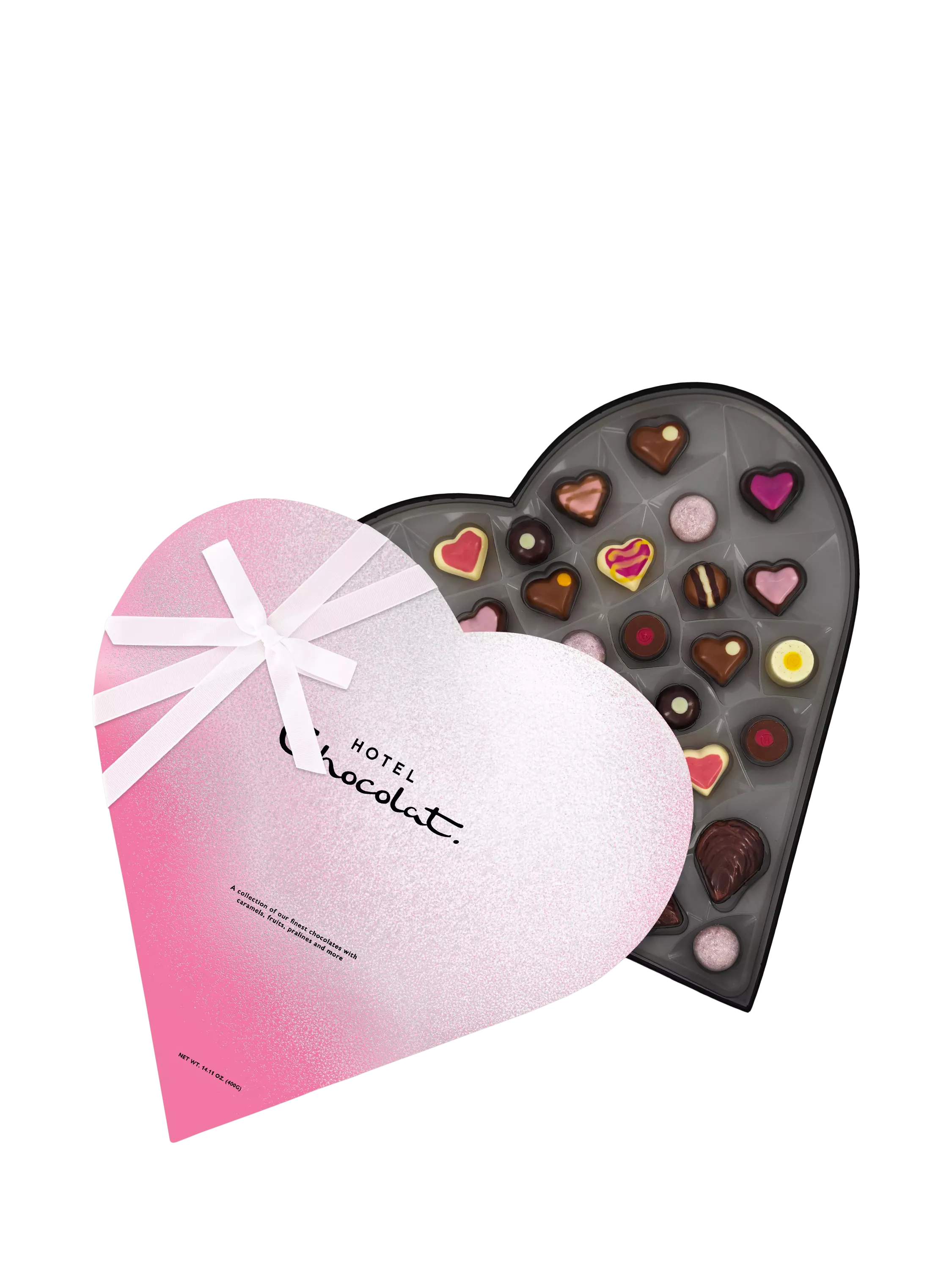 35 heart-shaped pralines, tipsy truffles and caramels from Hotel Chocolat. Presented in a heart-shaped box designed to deliver a swoon.