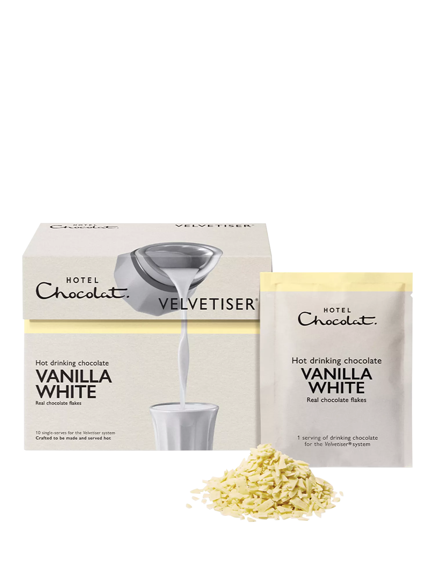 Ten perfectly portioned sachets of white drinking chocolate with Madagascan vanilla, by Hotel Chocolat. Made for use in the Velvetiser® system.