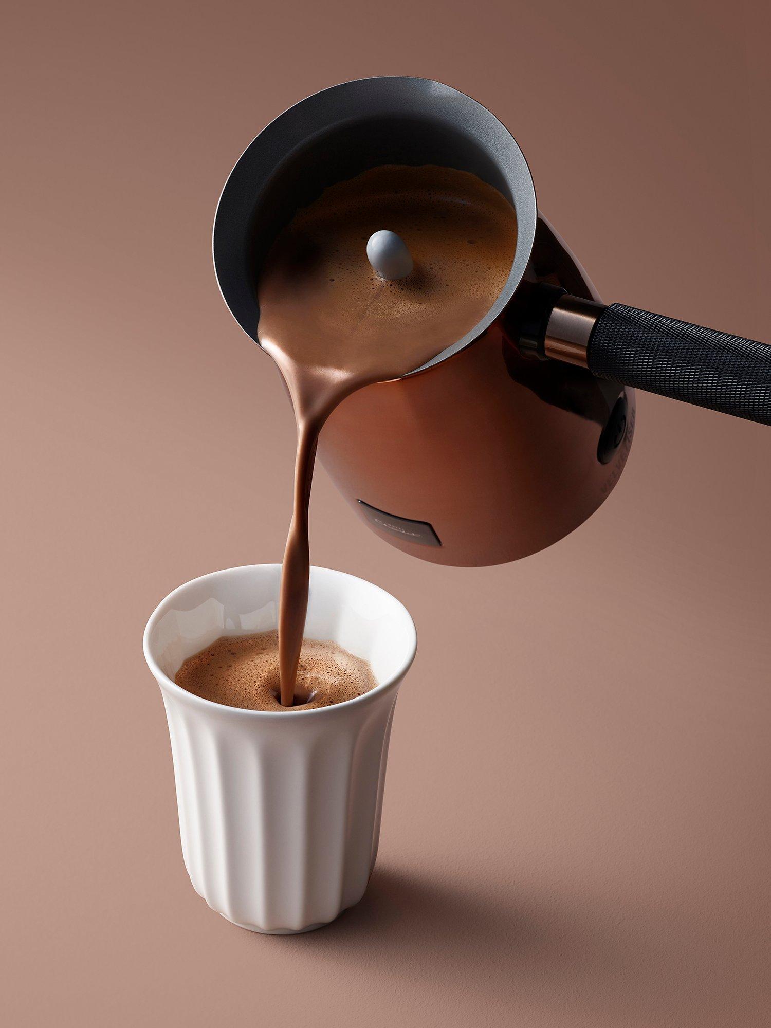 The Velvetiser™ is Hotel Chocolat’s iconic, barista-grade drinking chocolate system, using nothing but real chocolate flakes – and your choice of dairy or plant milk – it melds them together into velvet-smooth drinking chocolate.