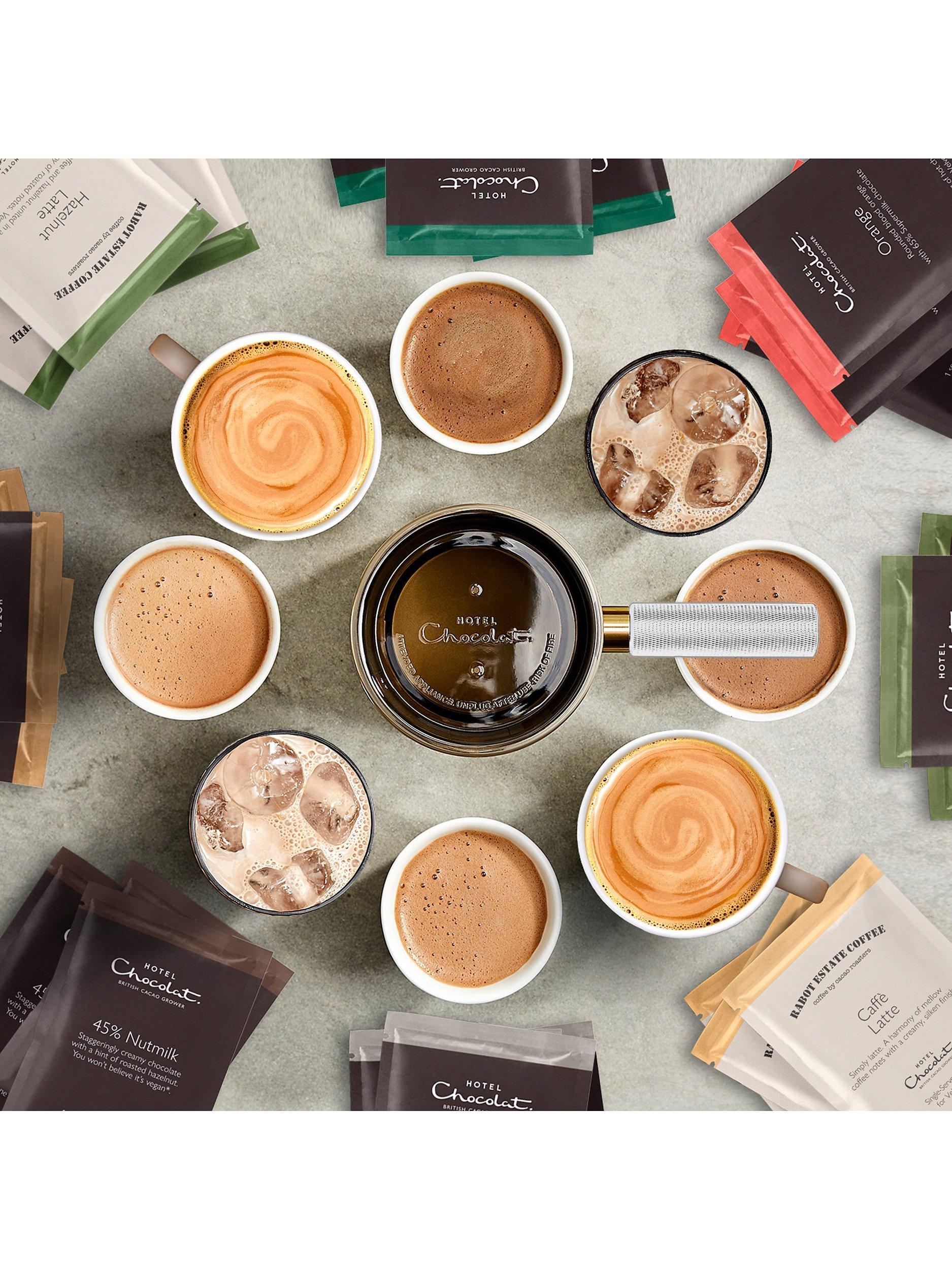 The Velvetiser™ is Hotel Chocolat’s iconic, barista-grade drinking chocolate system, using nothing but real chocolate flakes – and your choice of dairy or plant milk – it melds them together into velvet-smooth drinking chocolate.