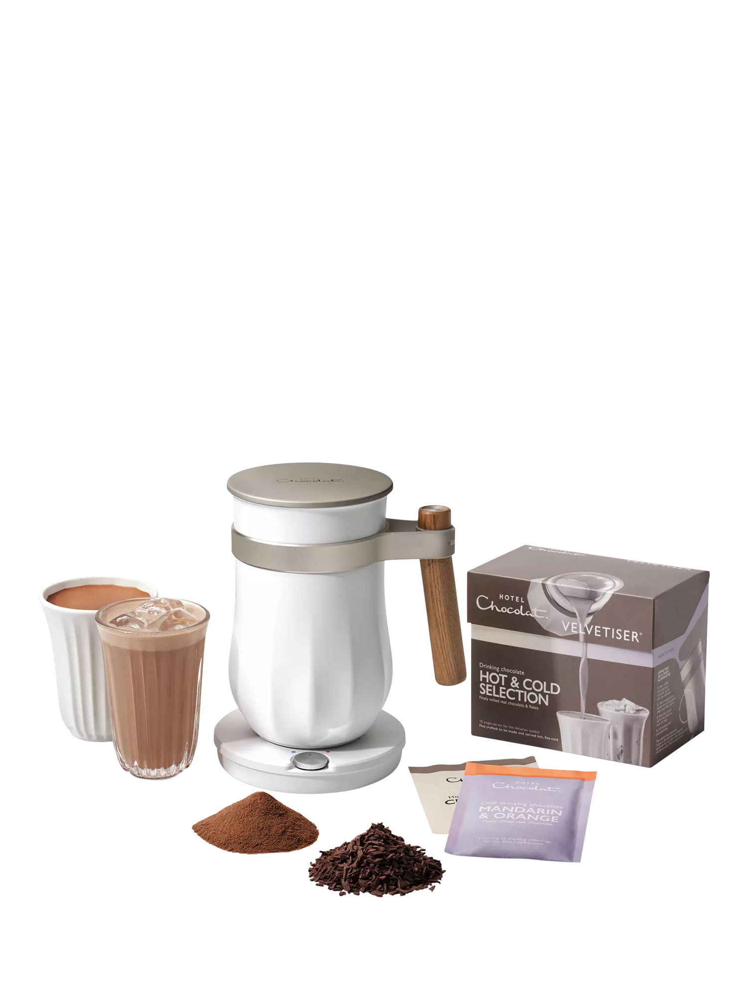 Introducing the ALL-NEW Velvetiser®. The only drinking chocolate machine of its kind, it creates hot and cold barista-grade drinking chocolate at the touch of a button. Experience velvet-smooth results, unrivalled chocolate crema and satisfying cacao depth in every sip.