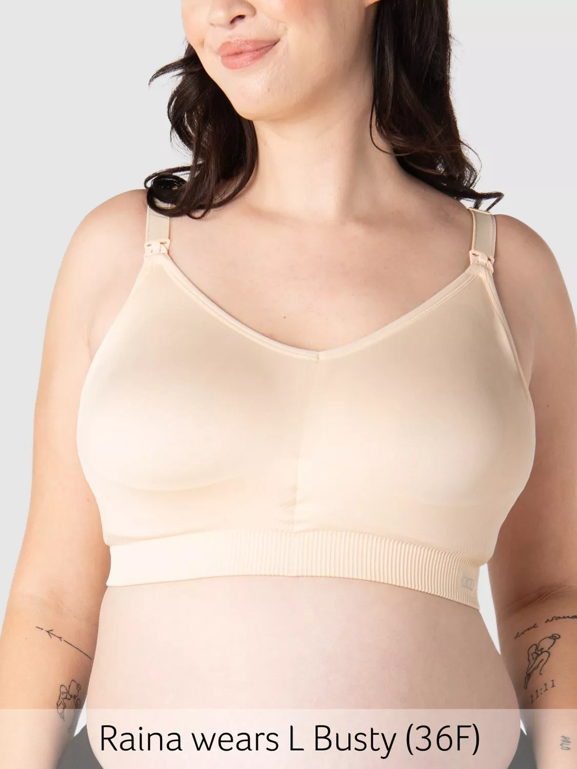 Who says a J cup can’t be wirefree? My Everyday Busty proves comfort and support can coexist—no wires, no compromise. Crafted from recycled nylon, this seamless nursing bra is designed for fuller busts with moulded unpadded cups, targeted support zones, and a double-layer back for smoothing. Unmatched comfort and confidence, from F to J cups.